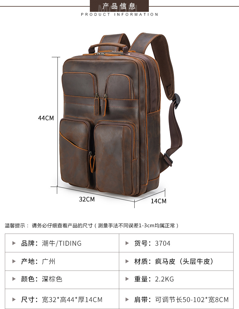 Ba lô được làm từ chất liệu da bò mềm có vân tự nhiên, mang phong cách hoài cổ phù hợp cho các chuyến đi chơi ngoài trời. Thiết kế nhiều ngăn rộng rãi giúp sắp xếp đồ gọn gàng, ngăn chính đựng vừa máy tính 15 inch cùng sách vở và vật dụng cá nhân. Dây đeo êm ái, có thể điều chỉnh độ dài phù hợp. Khi dùng, bạn chỉ cần xếp đồ vào các ngăn được phân chia hợp lý, khoá kéo nhẹ nhàng là bảo quản đồ đạc an toàn. | Tên sản phẩm: Túi Đeo Vai Nam Phục Cổ Cổ Điển - Túi Xách Ví Nam | Mã sản phẩm: B1997 - Giá: 3.940.000đ | Mã nhà sản xuất: GUDNG-G06Hình ảnh sản phẩm