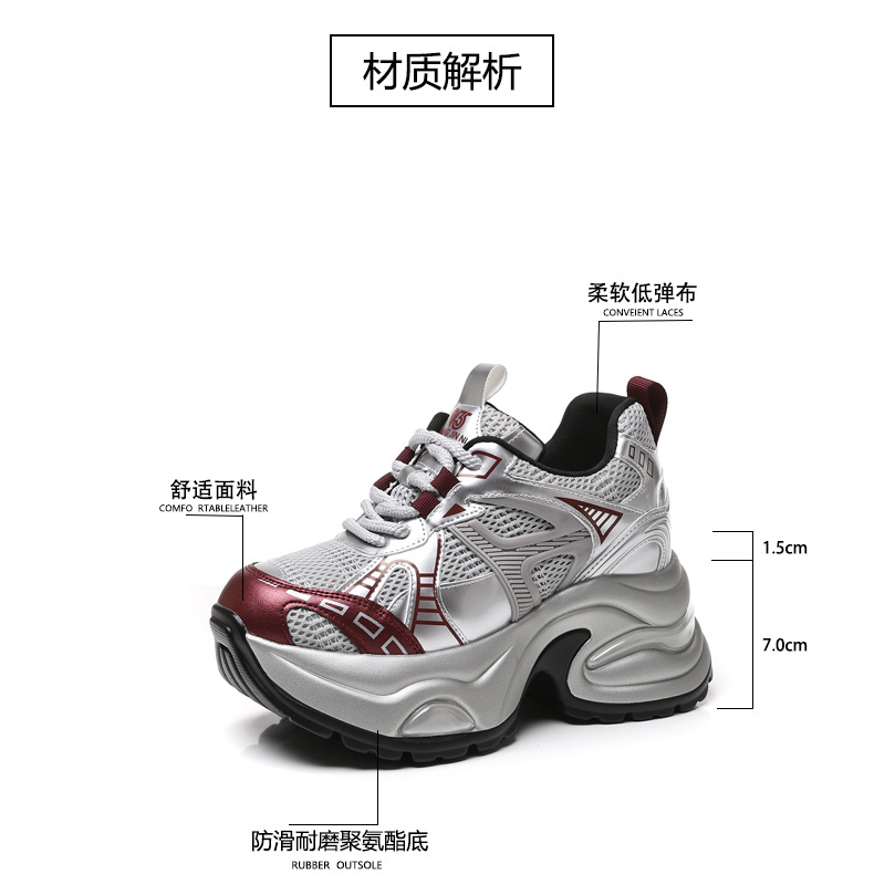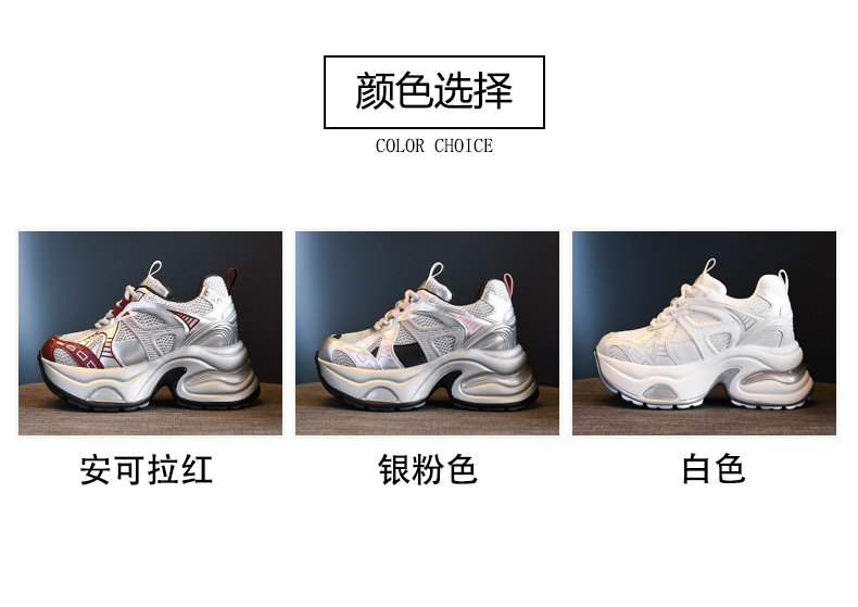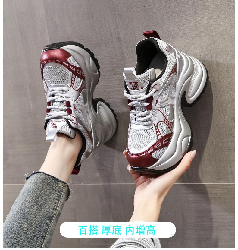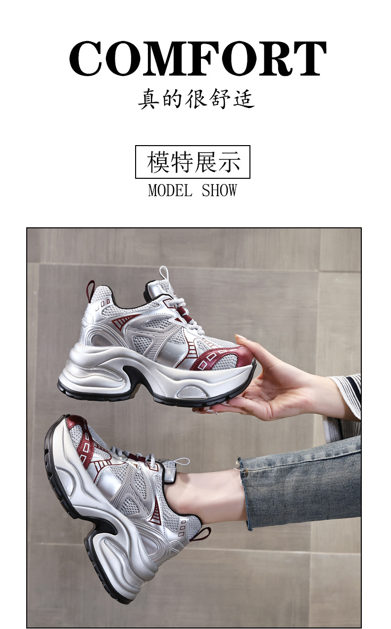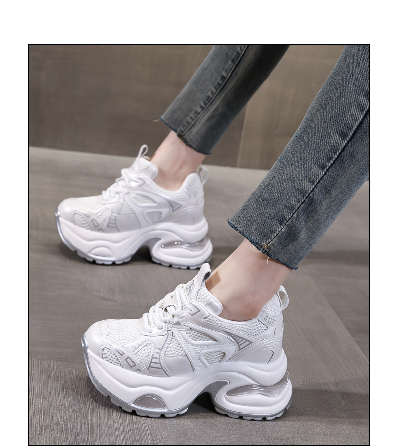 Đôi giày thể thao nữ với phần đế dày tạo dáng cổ điển, giúp tăng chiều cao một cách tự nhiên. Mặt trên làm từ chất liệu lưới thoáng khí, mang lại cảm giác dễ chịu khi mang cả ngày. Kiểu dáng năng động, phù hợp cho nhiều hoạt động thường ngày như đi dạo, gặp gỡ bạn bè hay vui chơi. Cách sử dụng đơn giản, chỉ cần xỏ chân vào và điều chỉnh dây giày cho vừa vặn. Thiết kế nhẹ nhàng và linh hoạt, dễ dàng phối hợp với nhiều loại trang phục khác nhau. | Tên sản phẩm: Giày Thể Thao Nữ Tăng Chiều Cao Thoáng Khí Đế Cao Hàng Mùa Xuân Thu Đông - Giày Dép Nữ | Mã sản phẩm: B1998 - Giá: 1.180.000đ | Mã nhà sản xuất: WEDS-G04Hình ảnh sản phẩm