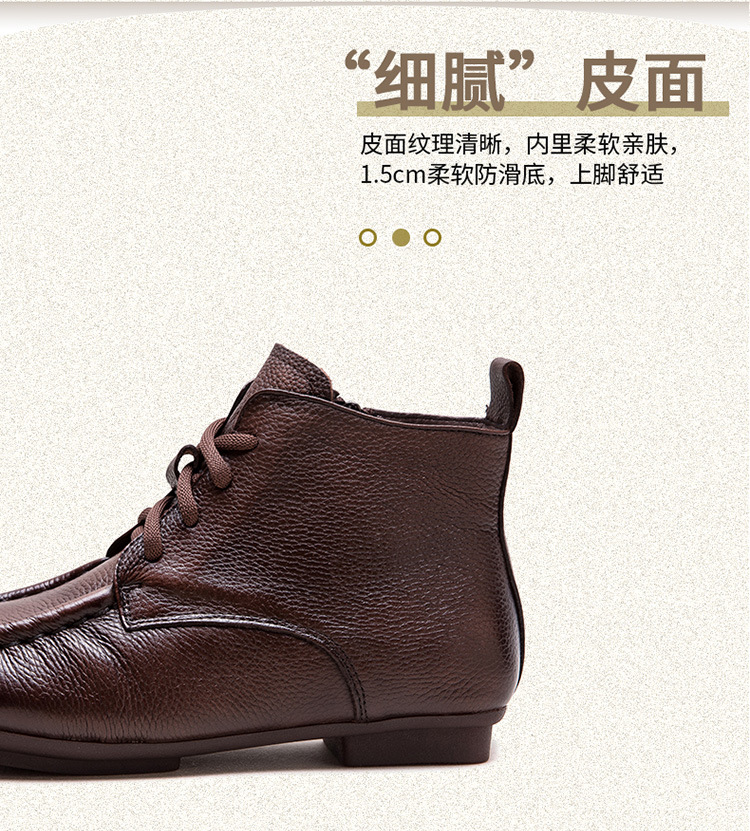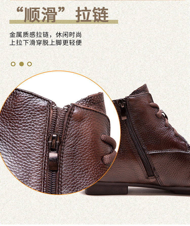 Giày bốt cổ thấp dành cho các bà mẹ trung niên, thiết kế theo phong cách đơn giản, cổ điển nhẹ nhàng. Sản phẩm được làm từ chất liệu da bò mềm mại, mang lại cảm giác dễ chịu khi mang cả ngày. Kiểu dáng thanh lịch, dễ dàng phối hợp với nhiều loại trang phục khác nhau như quần âu hay váy liền. Bạn có thể sử dụng giày cho các dịp đi làm, dạo phố hoặc gặp gỡ bạn bè. Đế giày êm ái, ôm sát chân, giúp mỗi bước đi đều thoải mái và tự tin. | Tên sản phẩm: Giày Boot Cổ Thấp Nữ Chất Liệu Da Bò Hàng Mùa Xuân Thu Đông Trung Niên Phục Cổ Cổ Điển - Giày Dép Nữ | Mã sản phẩm: B2014 - Giá: 1.520.000đ | Mã nhà sản xuất: SHDU-G04Hình ảnh sản phẩm