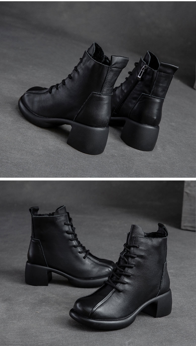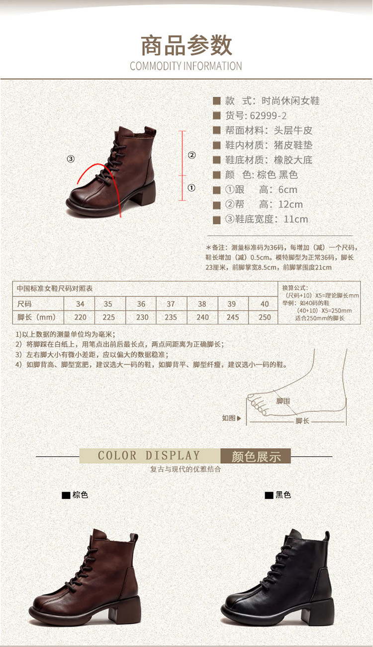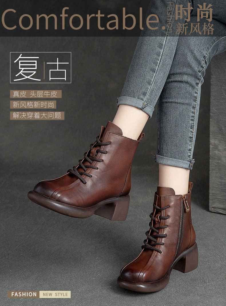 Đôi bốt cổ thấp này có phần gót nhỏ xinh, kèm khóa kéo bên hông giúp mang vào dễ dàng. Làm từ chất da bò mềm mại, kiểu dáng cổ điển lấy cảm hứng từ mẫu bốt công sự. Thiết kế ôm chân vừa vặn, phù hợp để kết hợp với nhiều trang phục khác nhau trong tiết trời thu đông. Bạn có thể dùng để đi làm, đi chơi hay dạo phố đều thoải mái và tiện lợi. | Tên sản phẩm: Giày Boot Cổ Thấp Nữ Chất Liệu Da Bò Hàng Mùa Xuân Thu Đông Phục Cổ Cổ Điển - Giày Dép Nữ | Mã sản phẩm: B2045 - Giá: 1.620.000đ | Mã nhà sản xuất: SHDU-G05Hình ảnh sản phẩm