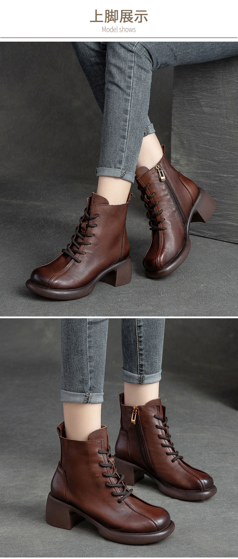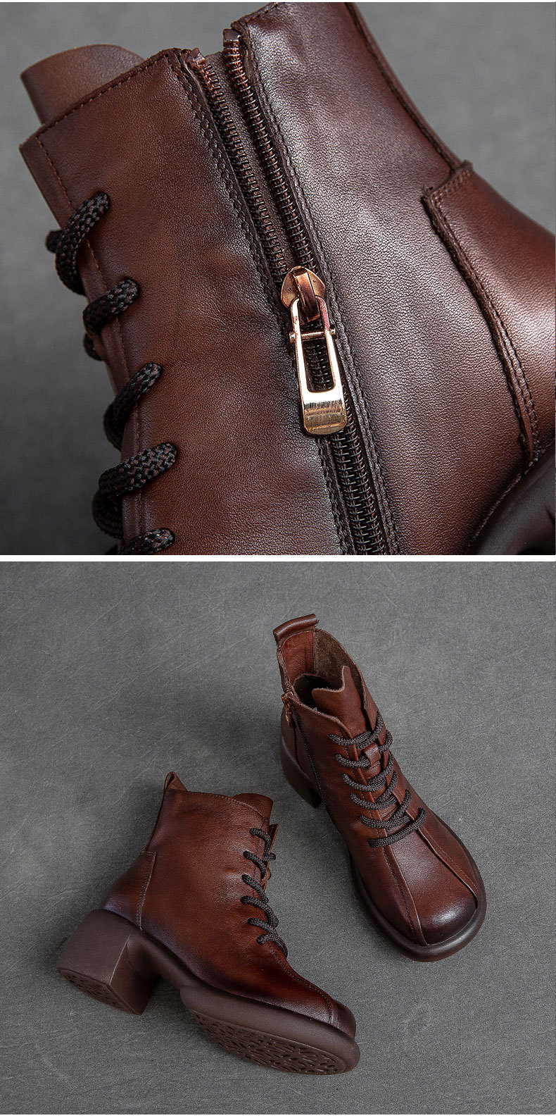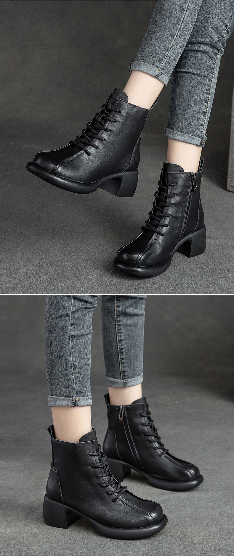 Đôi bốt cổ thấp này có phần gót nhỏ xinh, kèm khóa kéo bên hông giúp mang vào dễ dàng. Làm từ chất da bò mềm mại, kiểu dáng cổ điển lấy cảm hứng từ mẫu bốt công sự. Thiết kế ôm chân vừa vặn, phù hợp để kết hợp với nhiều trang phục khác nhau trong tiết trời thu đông. Bạn có thể dùng để đi làm, đi chơi hay dạo phố đều thoải mái và tiện lợi. | Tên sản phẩm: Giày Boot Cổ Thấp Nữ Chất Liệu Da Bò Hàng Mùa Xuân Thu Đông Phục Cổ Cổ Điển - Giày Dép Nữ | Mã sản phẩm: B2045 - Giá: 1.620.000đ | Mã nhà sản xuất: SHDU-G05Hình ảnh sản phẩm