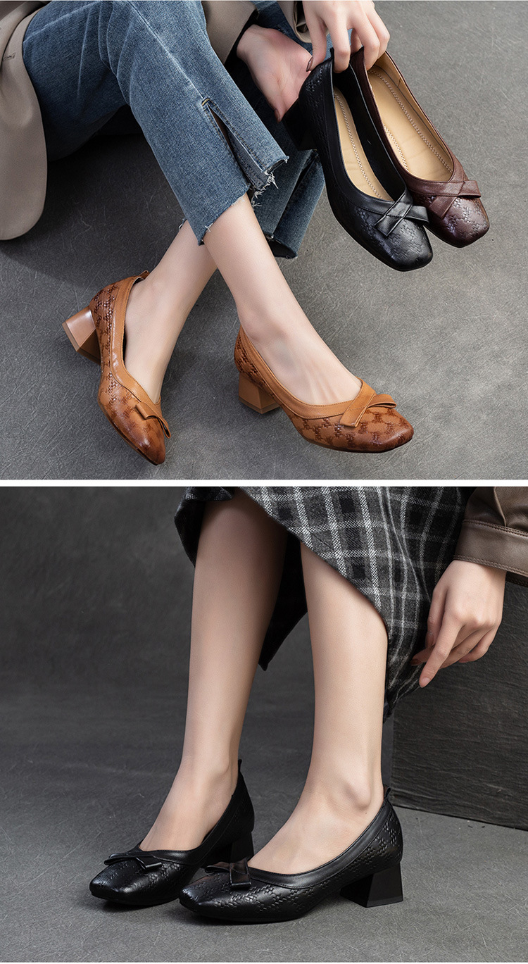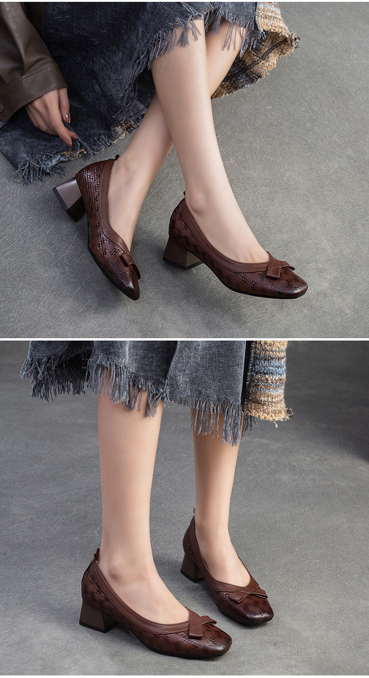Đôi giày da này mang phong cách Anh cổ điển với phần gót thấp vững chãi. Kiểu dáng cổ thấp ôm gọn bàn chân, tạo vẻ thanh lịch và dễ dàng phối cùng nhiều trang phục khác nhau như quần âu, váy liền. Sản phẩm phù hợp cho những buổi đi chơi, làm việc hàng ngày. Bạn chỉ cần xỏ vào và bước đi tự nhiên để tận hưởng sự thoải mái. | Tên sản phẩm: Giày Da Nữ Gót Vuông Hàng Mùa Xuân Thu Đông - Giày Dép Nữ | Mã sản phẩm: B2050 - Giá: 1.220.000đ | Mã nhà sản xuất: SHDU-G04Hình ảnh sản phẩm