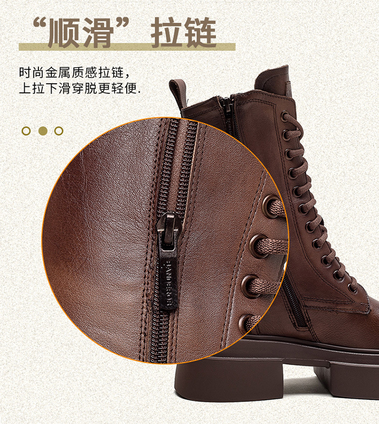 Giày bốt cổ trung thiết kế năng động dành cho các bạn nữ. Sản phẩm có điểm nhấn là khóa kéo bên hông giúp mang vào và tháo ra dễ dàng. Được làm từ chất liệu da thật bền đẹp, kiểu dáng cứng cáp phù hợp cho mùa thu đông. Đôi bốt này dễ dàng kết hợp với nhiều trang phục khác nhau như quần jeans hay váy, tạo nên vẻ ngoài cá tính. Bạn có thể sử dụng hằng ngày để đi làm, đi học hay dạo phố. | Tên sản phẩm: Giày Boot Martin Nữ Chất Liệu Da Bò Hàng Mùa Xuân Thu Đông - Giày Dép Nữ | Mã sản phẩm: B2063 - Giá: 1.900.000đ | Mã nhà sản xuất: SHDU-G05Hình ảnh sản phẩm