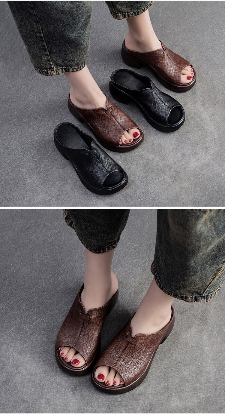 Dép qu hở mũi dành cho nữ, kiểu dáng hoài cổ với phần đế dày tạo điểm nhấn. Sản phẩm được làm từ chất liệu da bò mềm mại, mang lại cảm giác dễ chịu khi mang. Thiết kế mũi dép hở độc đáo, phù hợp cho những lúc thư giãn ở nhà hoặc dạo phố cùng bạn bè. Bạn có thể phối với nhiều loại trang phục khác nhau để có vẻ ngoài tự nhiên và thoải mái. | Tên sản phẩm: Giày Dép Lê Nữ Chất Liệu Da Bò Miệng Cá Hàng Mùa Hè Phục Cổ Cổ Điển - Giày Dép Nữ | Mã sản phẩm: B2066 - Giá: 1.280.000đ | Mã nhà sản xuất: SHDU-G04Hình ảnh sản phẩm