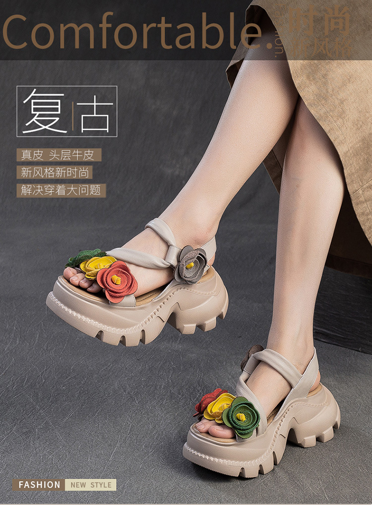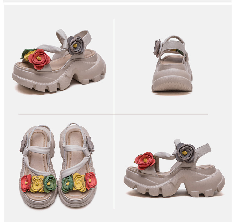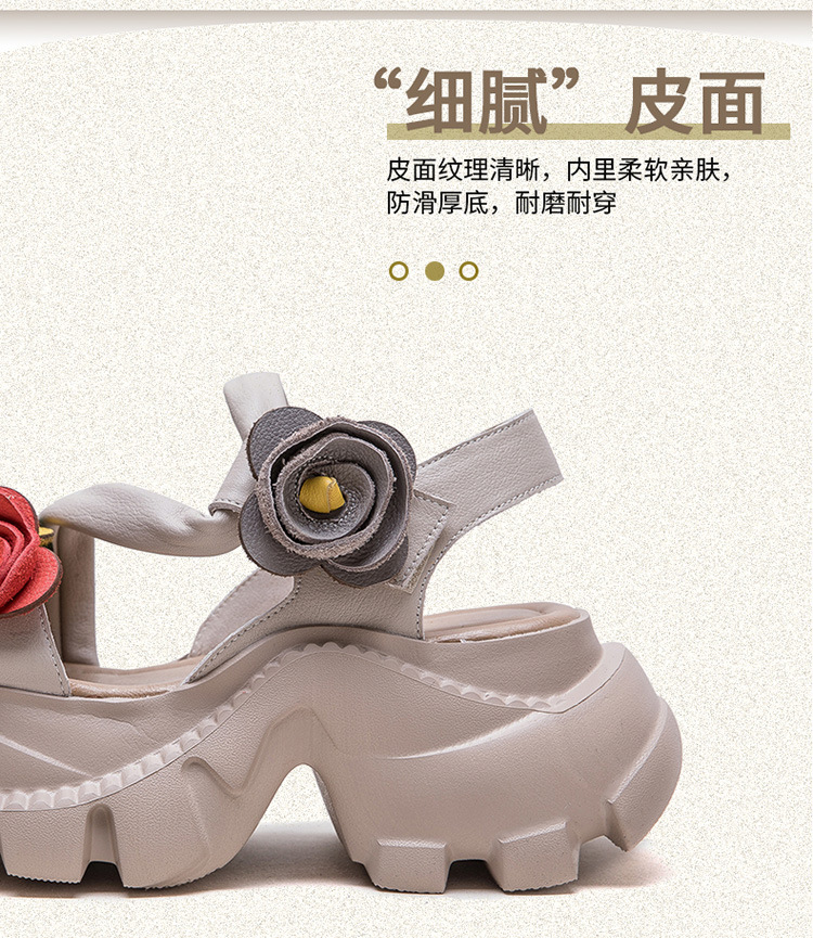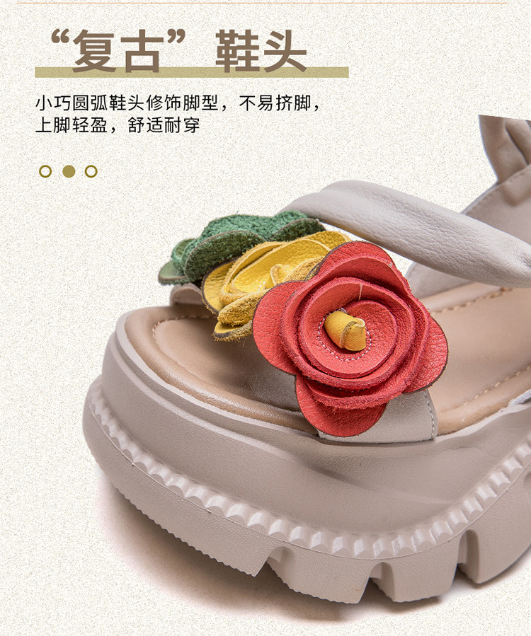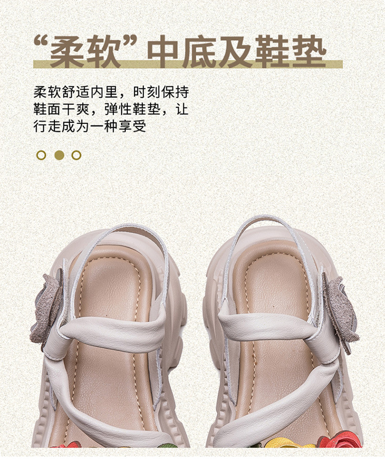 Giày sandal nữ thiết kế phong cách cổ điển nhẹ nhàng, điểm nhấn là họa tiết hoa trên thân giày. Sản phẩm được làm từ chất liệu da mềm mại, thoáng khí, mang lại cảm giác dễ chịu khi mang. Phần đế hơi dày tạo dáng thanh thoát và tôn chiều cao. Kiểu dáng hở mũi cá tính, phù hợp diện cùng váy hoặc quần shorts. Dùng trong sinh hoạt hằng ngày hoặc dạo phố đều tiện lợi. | Tên sản phẩm: Giày Dép Sandal Nữ Chất Liệu Da Bò Họa Tiết Hoa Thoáng Khí Miệng Cá Hàng Mùa Hè Phục Cổ Cổ Điển - Giày Dép Nữ | Mã sản phẩm: B2067 - Giá: 1.520.000đ | Mã nhà sản xuất: SHDU-G04Hình ảnh sản phẩm