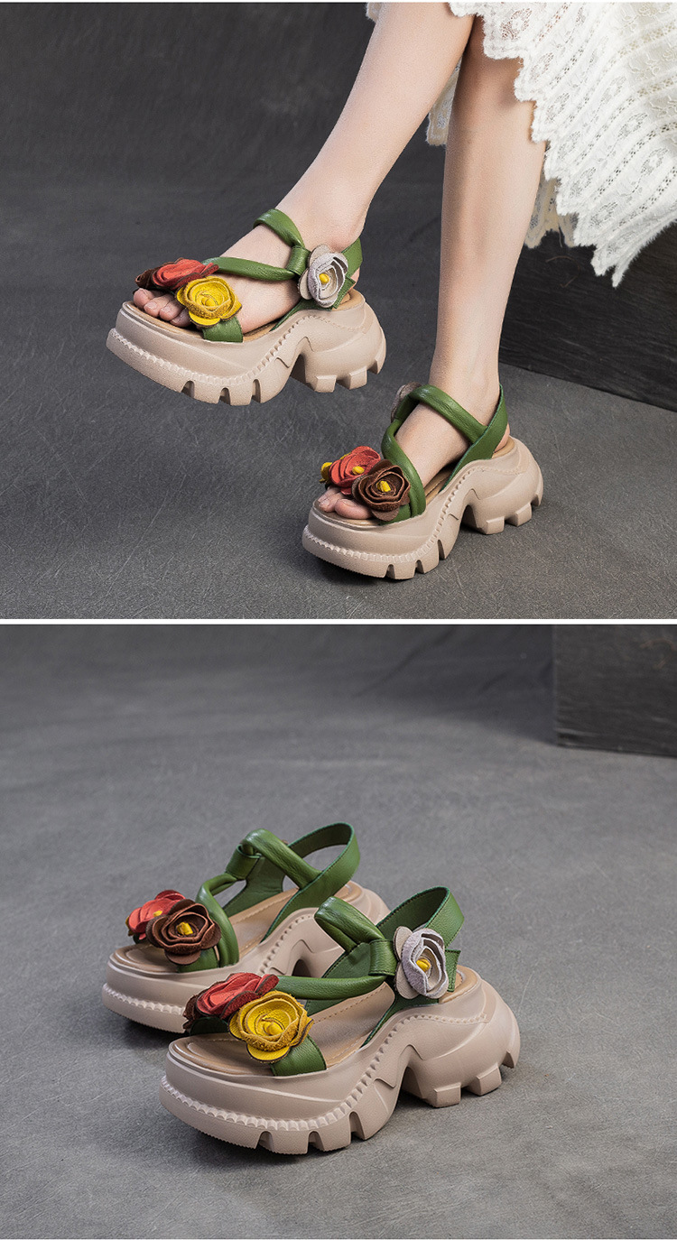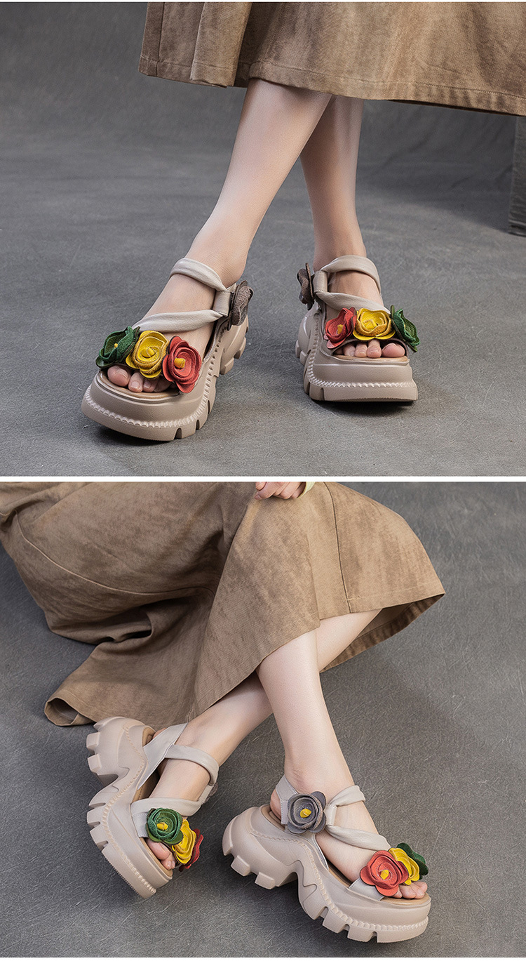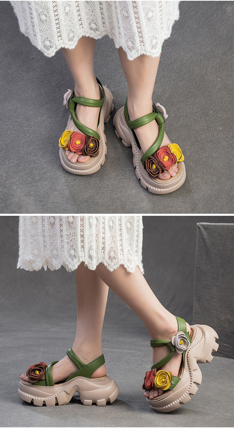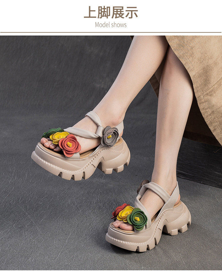 Giày sandal nữ thiết kế phong cách cổ điển nhẹ nhàng, điểm nhấn là họa tiết hoa trên thân giày. Sản phẩm được làm từ chất liệu da mềm mại, thoáng khí, mang lại cảm giác dễ chịu khi mang. Phần đế hơi dày tạo dáng thanh thoát và tôn chiều cao. Kiểu dáng hở mũi cá tính, phù hợp diện cùng váy hoặc quần shorts. Dùng trong sinh hoạt hằng ngày hoặc dạo phố đều tiện lợi. | Tên sản phẩm: Giày Dép Sandal Nữ Chất Liệu Da Bò Họa Tiết Hoa Thoáng Khí Miệng Cá Hàng Mùa Hè Phục Cổ Cổ Điển - Giày Dép Nữ | Mã sản phẩm: B2067 - Giá: 1.520.000đ | Mã nhà sản xuất: SHDU-G04Hình ảnh sản phẩm