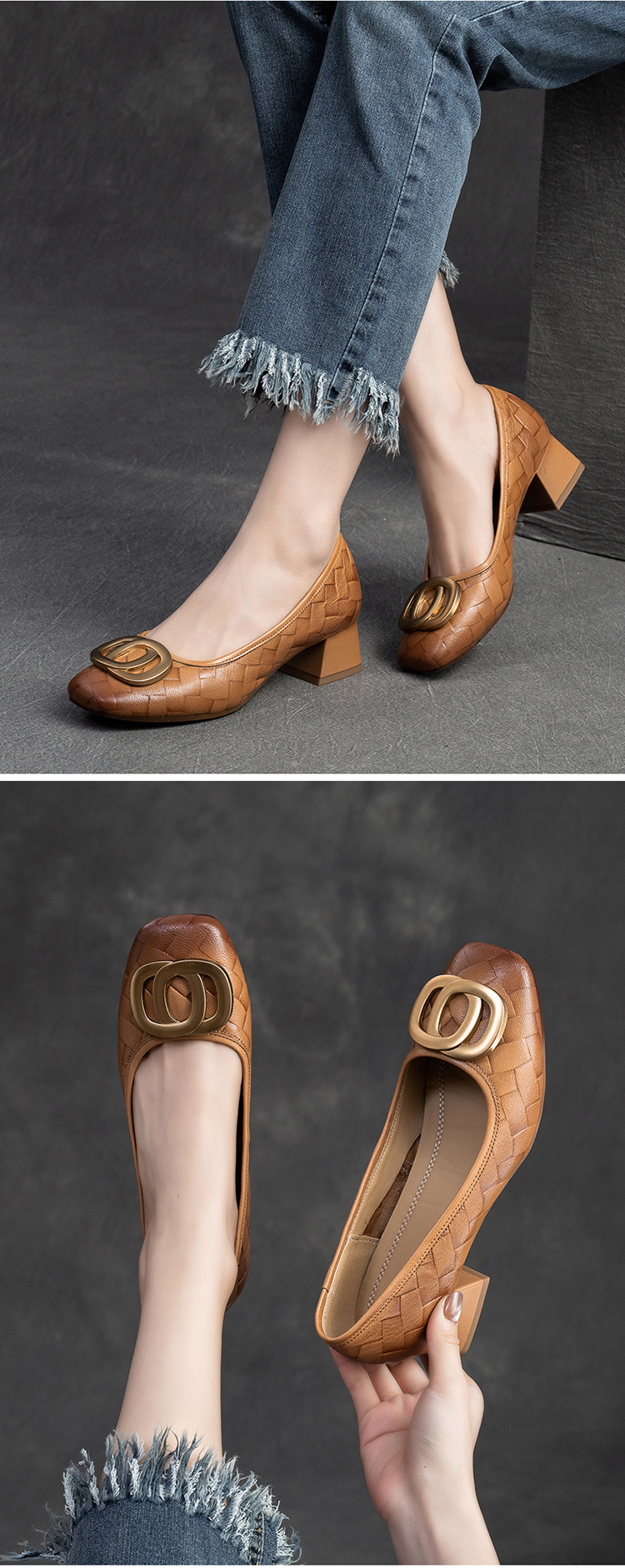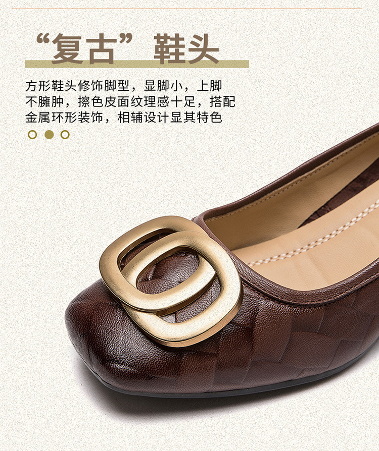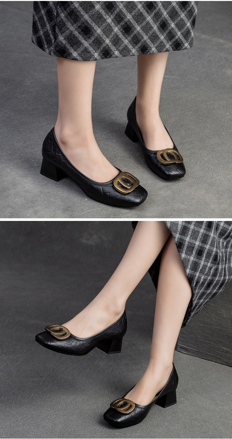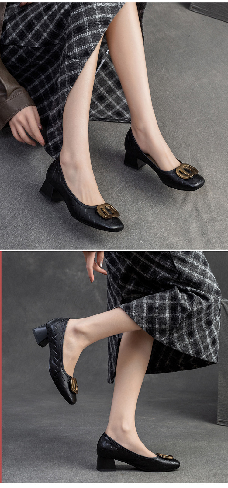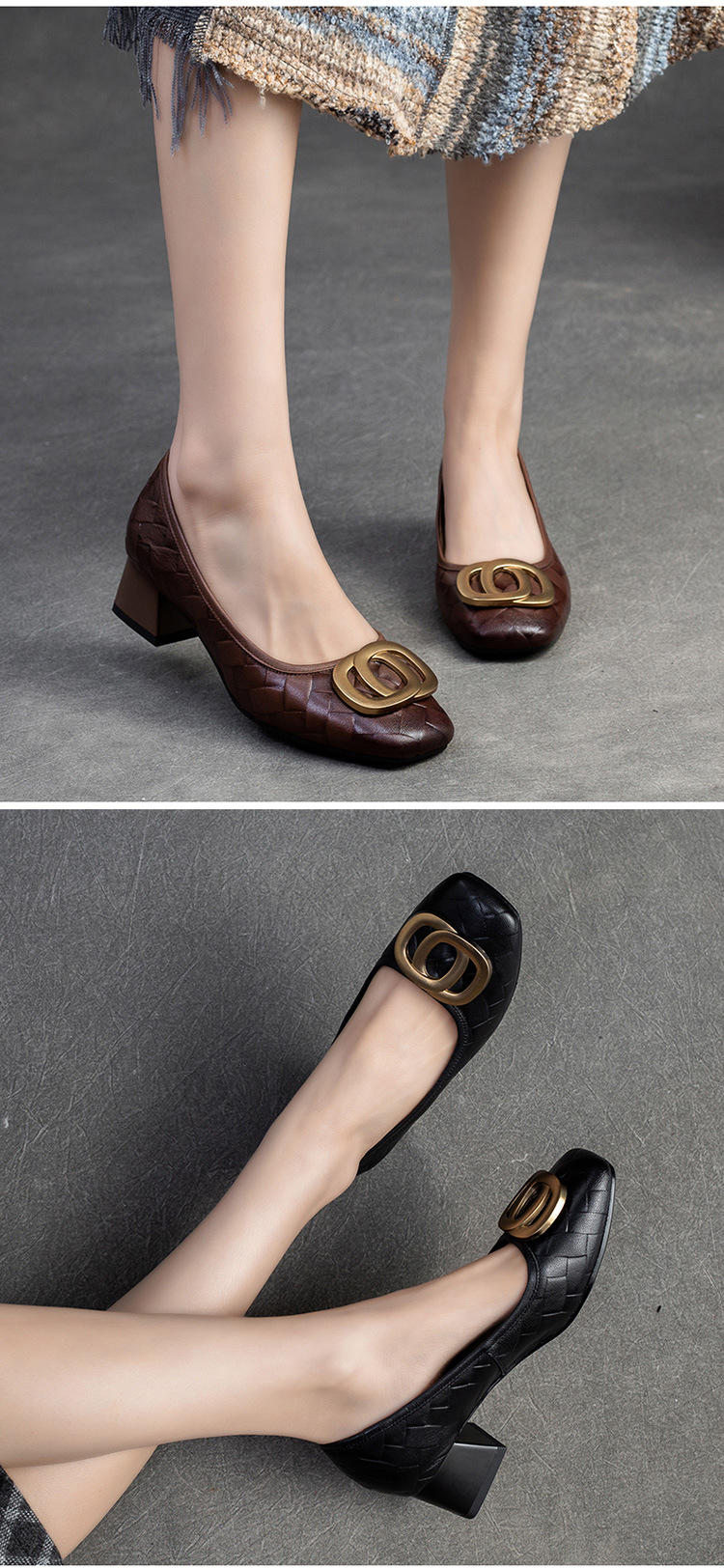 Giày búp bê thiết kế kiểu dáng Pháp với đầu vuông tinh tế. Sản phẩm có phần gót thấp vừa phải, tạo dáng đứng và đi thoải mái cả ngày. Điểm nhấn là khóa kim loại sáng bóng phía trước, dễ dàng phối cùng nhiều trang phục như quần âu, váy liền. Cách sử dụng đơn giản, chỉ cần xỏ chân vào và cài khóa là hoàn tất. Đây là mẫu giày phù hợp cho những buổi gặp mặt hoặc đi làm. | Tên sản phẩm: Giày Cao Gót Nữ Gót Vuông Hàng Mùa Xuân Thu Đông - Giày Dép Nữ | Mã sản phẩm: B2071 - Giá: 1.280.000đ | Mã nhà sản xuất: SHDU-G04Hình ảnh sản phẩm