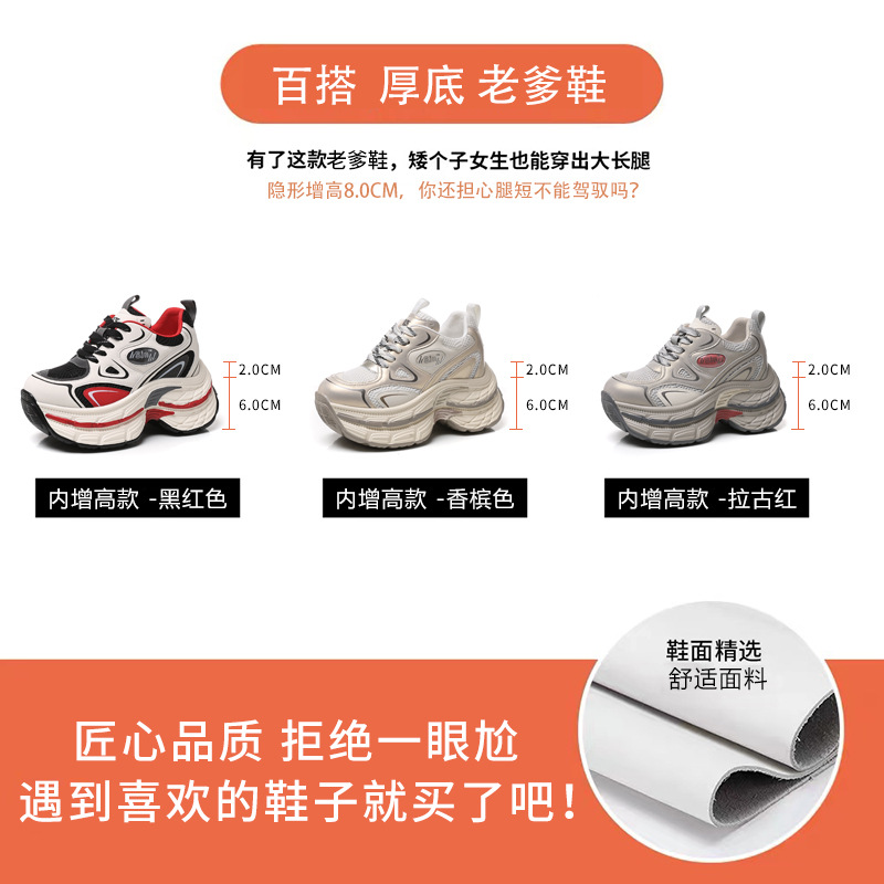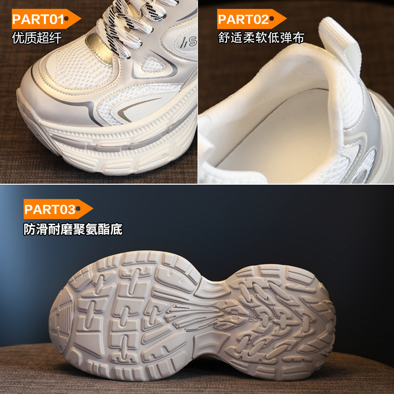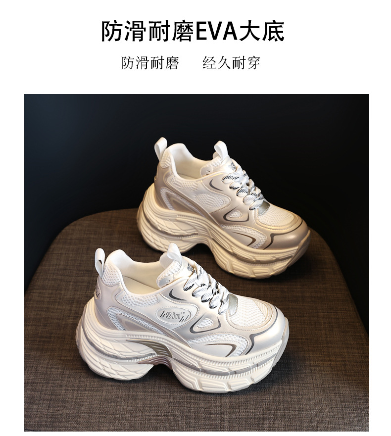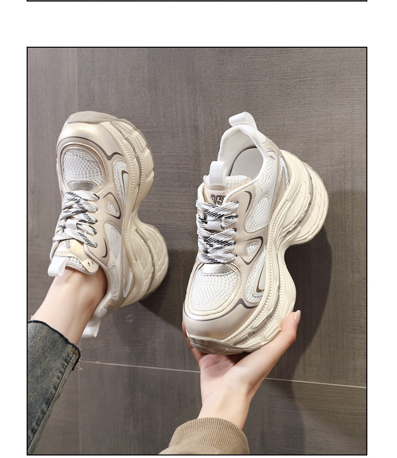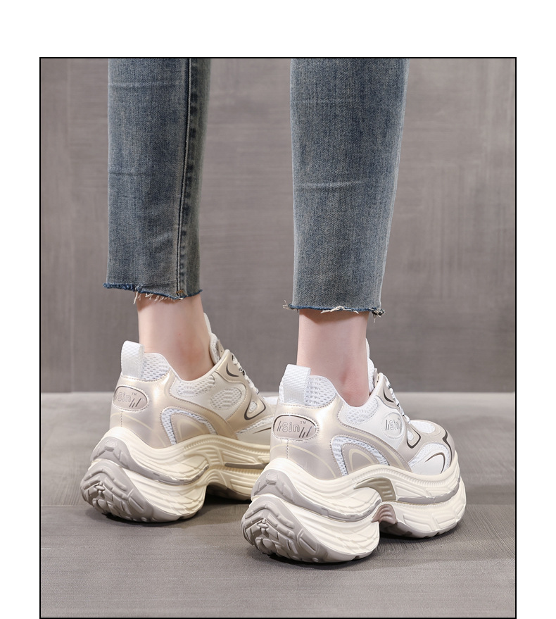 Giày thể thao nữ thiết kế dáng sneaker cổ điển với đế rất dày, giúp tăng chiều cao một cách tự nhiên. Sản phẩm có các lỗ thông hơi nhỏ tăng cường khả năng thoáng khí, mang lại cảm giác dễ chịu khi mang trong thời gian dài. Kiểu dáng phù hợp để kết hợp với nhiều loại trang phục khác nhau cho các dịp đi chơi, dạo phố hoặc vận động nhẹ nhàng. Chỉ cần xỏ chân vào và đi, bạn đã có một phong cách trẻ trung và năng động. | Tên sản phẩm: Giày Thể Thao Nữ Tăng Chiều Cao Thoáng Khí Đế Cao Hàng Mùa Xuân Thu Đông - Giày Dép Nữ | Mã sản phẩm: B2088 - Giá: 1.140.000đ | Mã nhà sản xuất: WEDS-G04Hình ảnh sản phẩm