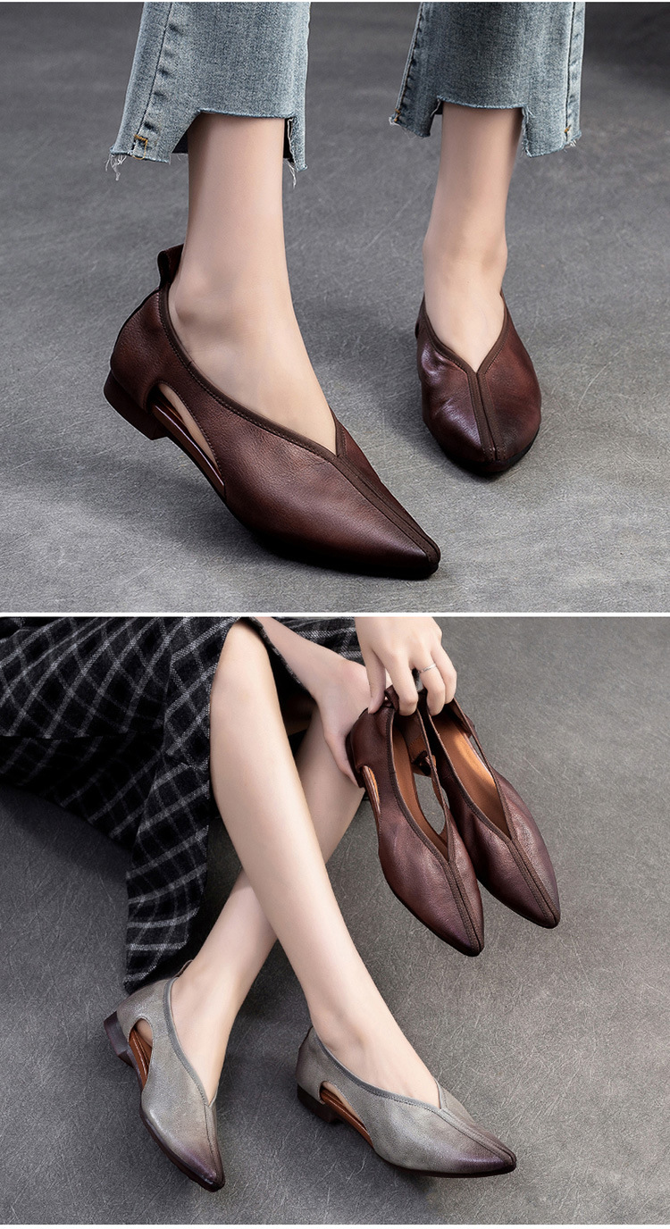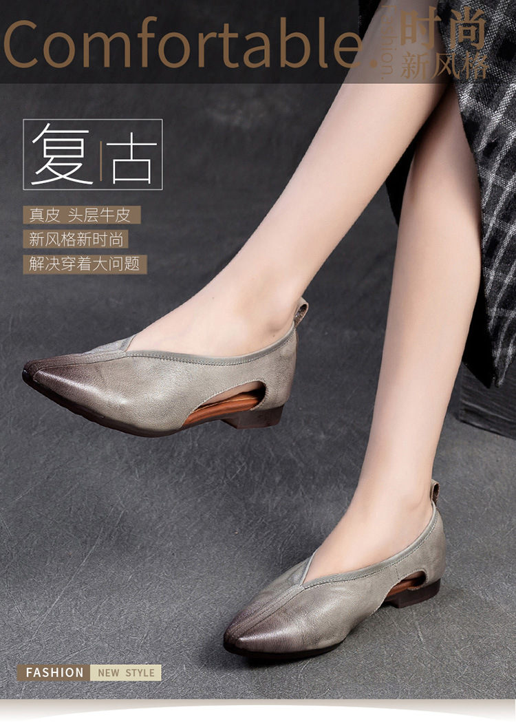 Giày da bò mũi nhọn, thiết kế có phần khoét hở giúp đôi chân luôn thông thoáng. Kiểu dáng ôm vừa bàn chân, phù hợp để đi làm hoặc dạo phố. Sản phẩm được làm từ chất liệu da thật, mang lại cảm giác mềm mại và bền lâu. Bạn có thể phối cùng quần âu hoặc váy để tạo điểm nhấn nổi bật. | Tên sản phẩm: Giày Dép Sandal Nữ Chất Liệu Da Bò Mũi Nhọn Thoáng Khí Hàng Mùa Xuân Thu Đông Phục Cổ Cổ Điển - Giày Dép Nữ | Mã sản phẩm: B2109 - Giá: 1.420.000đ | Mã nhà sản xuất: SHDU-G04Hình ảnh sản phẩm