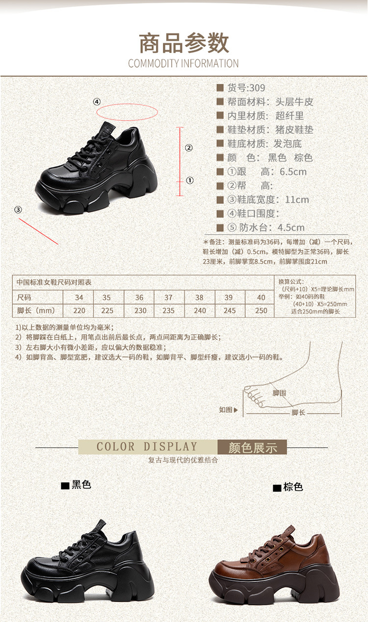 Giày đế dành cho nữ, phong cách thiết kế mang nét cổ điển pha chút hiện đại. Sản phẩm có phần đế dày được làm tỉ mỉ, giúp tăng chiều cao một cách nhẹ nhàng và tạo cảm giác dễ chịu khi mang. Kiểu dáng phù hợp cho những lúc thư giãn hoặc kết hợp với nhiều trang phục thường ngày. Bạn có thể sử dụng cùng với quần jeans, váy hay quần âu để tạo điểm nhấn nổi bật. | Tên sản phẩm: Giày Thể Thao Tăng Chiều Cao Nữ Tăng Chiều Cao Đế Cao Hàng Mùa Xuân Thu Đông Phục Cổ Cổ Điển - Giày Dép Nữ | Mã sản phẩm: B2116 - Giá: 1.520.000đ | Mã nhà sản xuất: SHDU-G04Hình ảnh sản phẩm