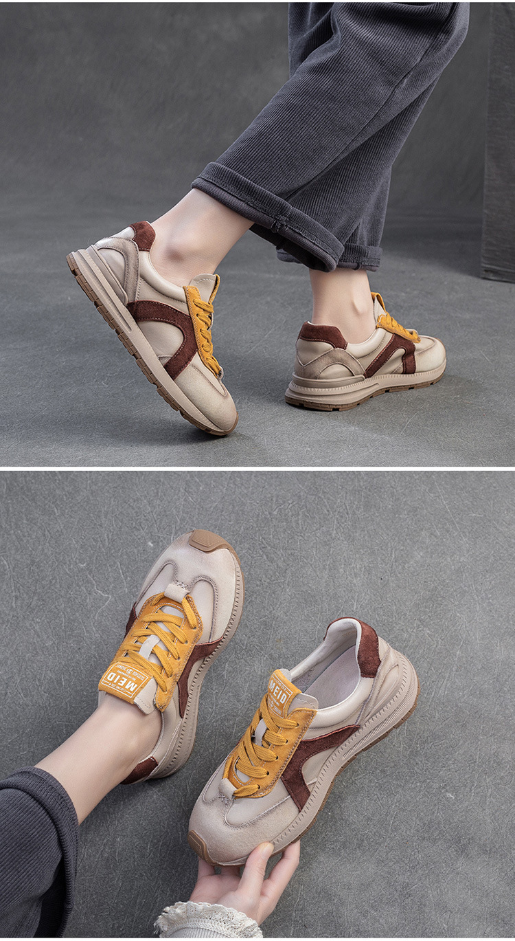 Giày thể thao nữ thiết kế đơn giản, phù hợp cho những dịp thư giãn hằng ngày. Sản phẩm có phần đế được làm dày nhẹ nhàng, tạo cảm giác thoải mái khi mang trong thời gian dài. Màu sắc được kết hợp hài hòa, dễ dàng phối với nhiều loại trang phục khác nhau như quần jeans hay váy ngắn. Chỉ cần vệ sinh bề mặt bằng khăn mềm sau khi dùng. Kiểu dáng trẻ trung, thích hợp cho nhiều hoạt động. | Tên sản phẩm: Giày Thể Thao Tăng Chiều Cao Nữ Đế Cao Hàng Mùa Xuân Thu Đông - Giày Dép Nữ | Mã sản phẩm: B2117 - Giá: 1.280.000đ | Mã nhà sản xuất: SHDU-G04Hình ảnh sản phẩm