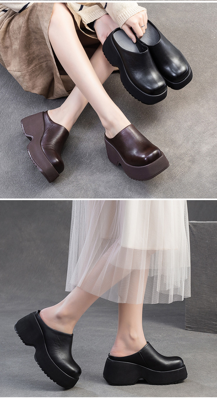 Giày dép thiết kế dành cho nữ, phong cách đơn giản với một màu thuần túy. Đế giày được làm dày một cách vừa phải, giúp tôn dáng người mặc. Kiểu dáng cổ điển, gợi nhớ những mẫu mã được ưa chuộc trước đây. Đây là loại giày dễ mang, tiện lợi, có thể sử dụng để đi trong nhà hoặc mang ra ngoài. Bạn chỉ cần xỏ chân vào là có thể sử dụng ngay, rất thiết thực cho những ngày bận rộn. | Tên sản phẩm: Giày Dép Lê Nữ Tăng Chiều Cao Đế Cao Hàng Mùa Xuân Thu Đông Phục Cổ Cổ Điển - Giày Dép Nữ | Mã sản phẩm: B2129 - Giá: 1.420.000đ | Mã nhà sản xuất: SHDU-G04Hình ảnh sản phẩm