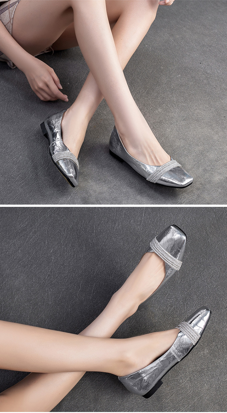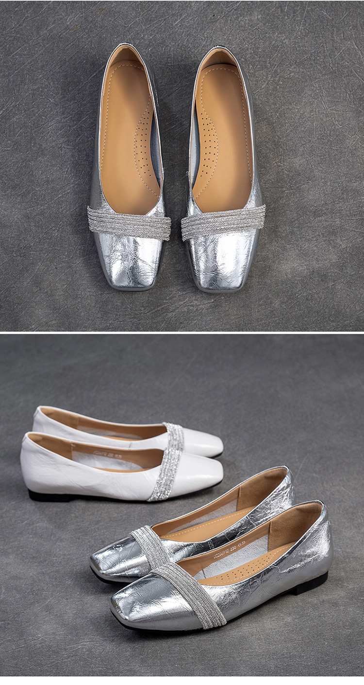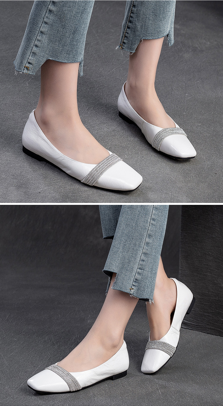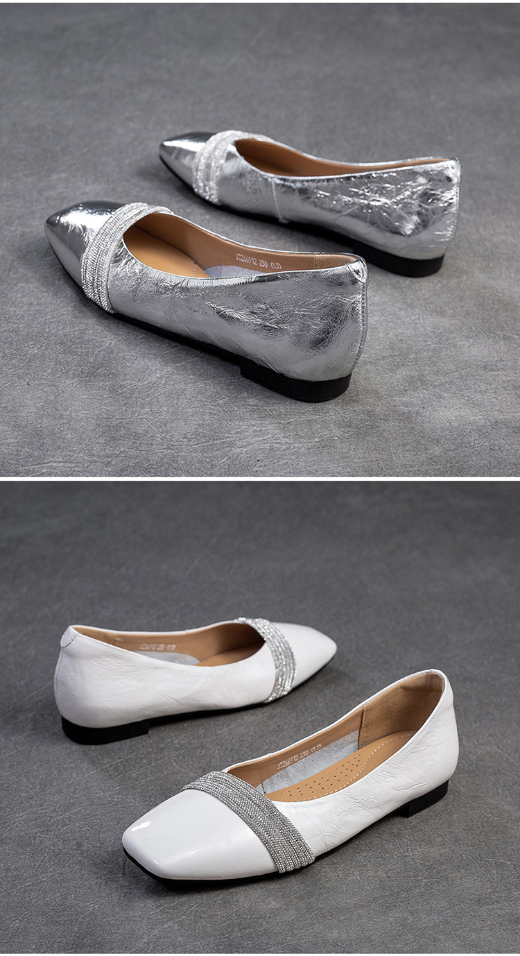 Giày nữ thiết kế mũi nhọn, cổ thấp và đế bằng cho cảm giác mang dễ chịu. Sản phẩm làm từ chất liệu da bò mềm mại, bền đẹp. Phần mũi được điểm xuyết những viên đá lấp lánh tạo điểm nhấn tinh tế. Kiểu dáng đơn giản, dễ phối hợp với nhiều trang phục như quần âu, váy hay quần jeans. Bạn có thể sử dụng hàng ngày để đi làm, đi chơi hay dự những cuộc gặp gỡ thông thường. | Tên sản phẩm: Giày Bệt Nữ Chất Liệu Da Bò Gắn Đá Hàng Mùa Xuân Thu Đông - Giày Dép Nữ | Mã sản phẩm: B2130 - Giá: 1.220.000đ | Mã nhà sản xuất: SHDU-G04Hình ảnh sản phẩm