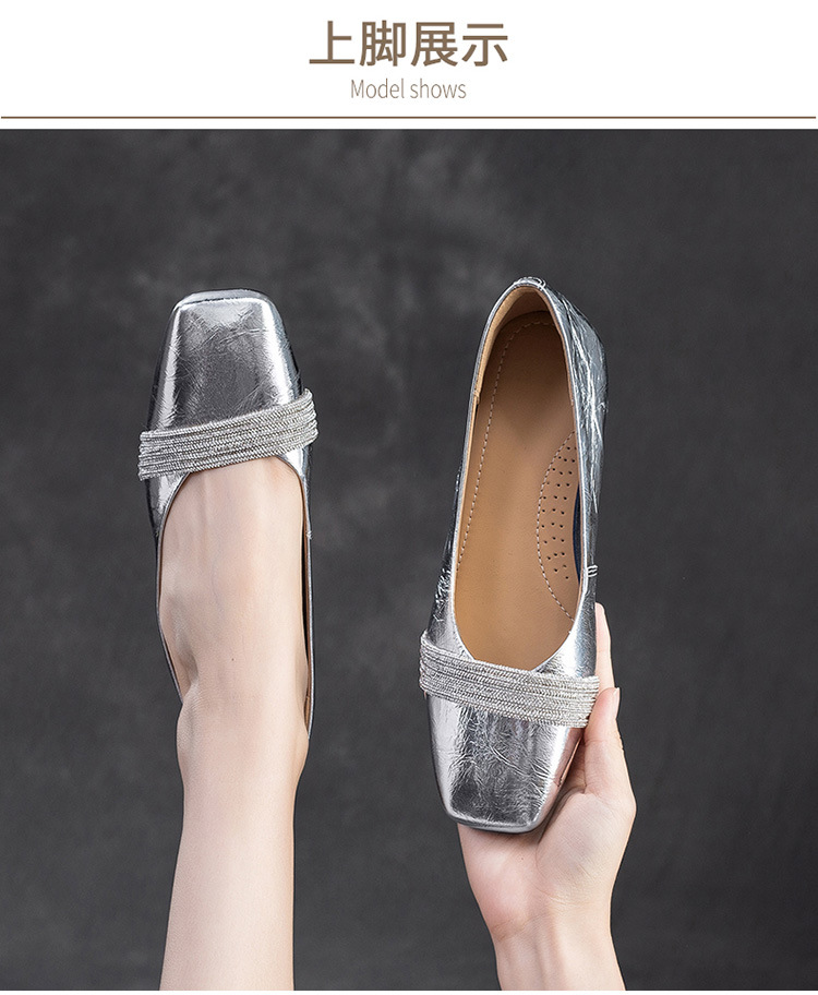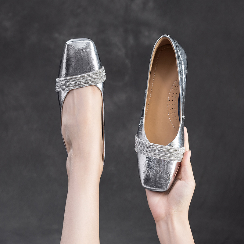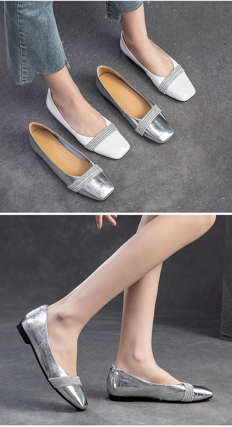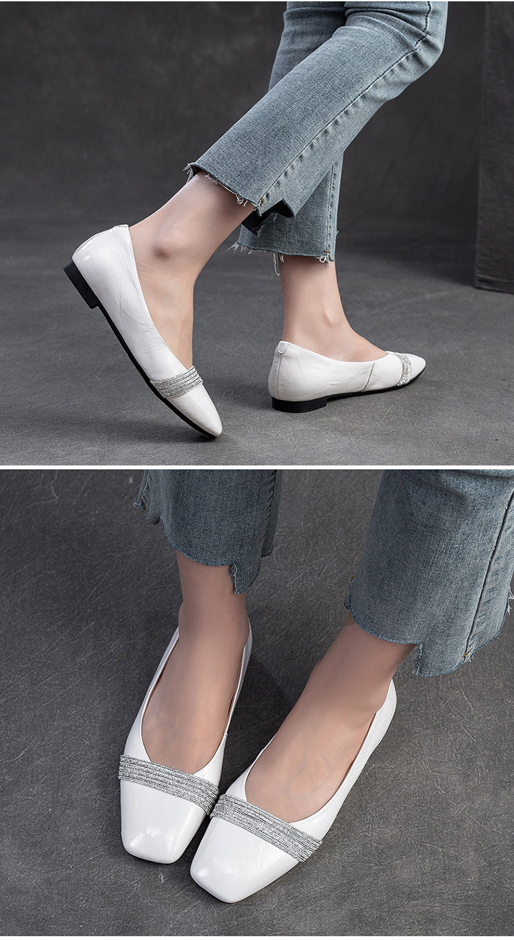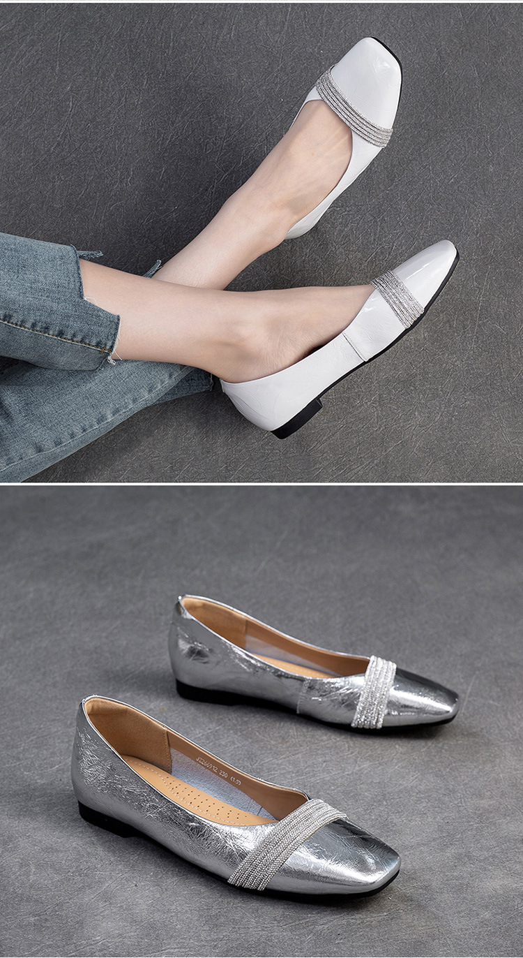 Giày nữ thiết kế mũi nhọn, cổ thấp và đế bằng cho cảm giác mang dễ chịu. Sản phẩm làm từ chất liệu da bò mềm mại, bền đẹp. Phần mũi được điểm xuyết những viên đá lấp lánh tạo điểm nhấn tinh tế. Kiểu dáng đơn giản, dễ phối hợp với nhiều trang phục như quần âu, váy hay quần jeans. Bạn có thể sử dụng hàng ngày để đi làm, đi chơi hay dự những cuộc gặp gỡ thông thường. | Tên sản phẩm: Giày Bệt Nữ Chất Liệu Da Bò Gắn Đá Hàng Mùa Xuân Thu Đông - Giày Dép Nữ | Mã sản phẩm: B2130 - Giá: 1.220.000đ | Mã nhà sản xuất: SHDU-G04Hình ảnh sản phẩm