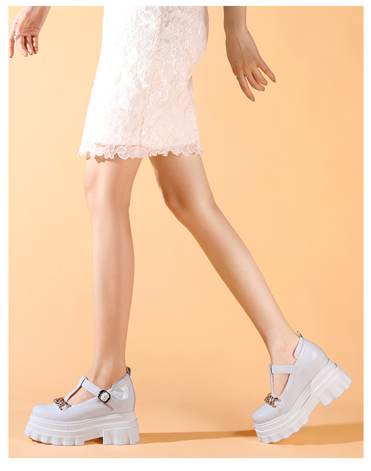 Giày nữ thiết kế thời trang với phần đế hơi dày tạo dáng thanh lịch. Điểm nhấn là các chi tiết đinh tán và khóa cài cá tính, phù hợp cho nhiều dịp. Sản phẩm giúp tăng chiều cao nhẹ một cách thoải mái, dễ dàng kết hợp cùng nhiều loại trang phục khác nhau như quần jeans hay váy. Bạn có thể sử dụng như một đôi giày hằng ngày, mang lại cảm giác dễ chịu khi di chuyển. | Tên sản phẩm: Giày Thể Thao Tăng Chiều Cao Nữ Cao 10cm Tăng Chiều Cao Quai Hậu Hàng Mùa Xuân Thu Đông - Giày Dép Nữ | Mã sản phẩm: B2147 - Giá: 2.390.000đ | Mã nhà sản xuất: QIDNG-G05Hình ảnh sản phẩm