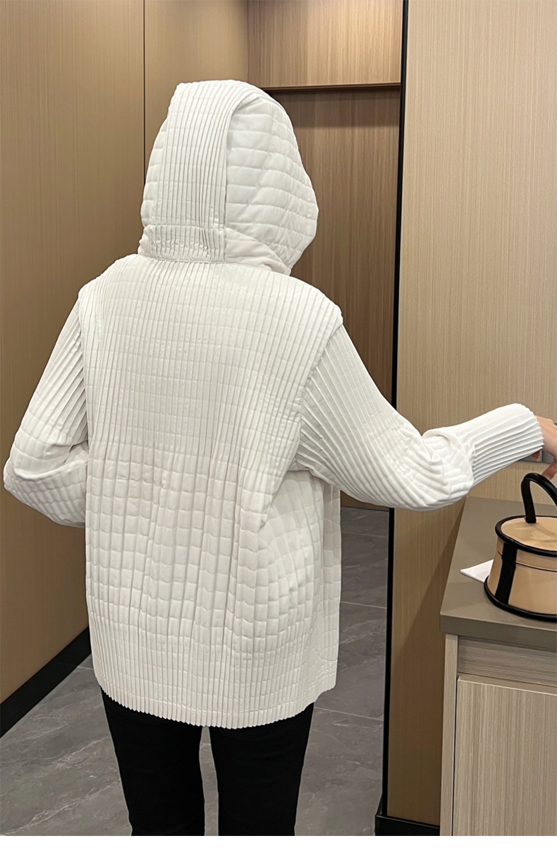 Áo khoác nữ dáng rộng, ngắn, có mũ trùm dành cho mùa thu đông. Chất liệu bông dày dặn giữ ấm tốt, kiểu dáng mang phong cách thiết kế xếp nếp độc đáo. Sản phẩm phù hợp mặc trong những dịp thư giãn hằng ngày. Cách sử dụng đơn giản, mặc kèm với áo thun và quần jeans để tạo vẻ ngoài năng động, thoải mái. | Tên sản phẩm: Áo Khoác Nữ Chất Liệu Vải Bông Áo Khoác Bông Mũ Liền Dày Ấm Hàng Mùa Xuân Thu Đông - Thời Trang Nữ | Mã sản phẩm: B2169 - Giá: 2.010.000đ | Mã nhà sản xuất: DODGA-G05Hình ảnh sản phẩm