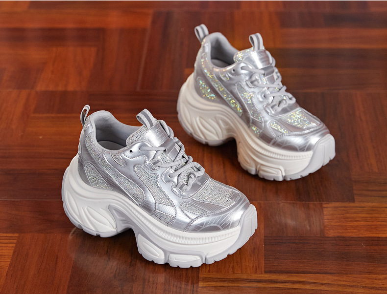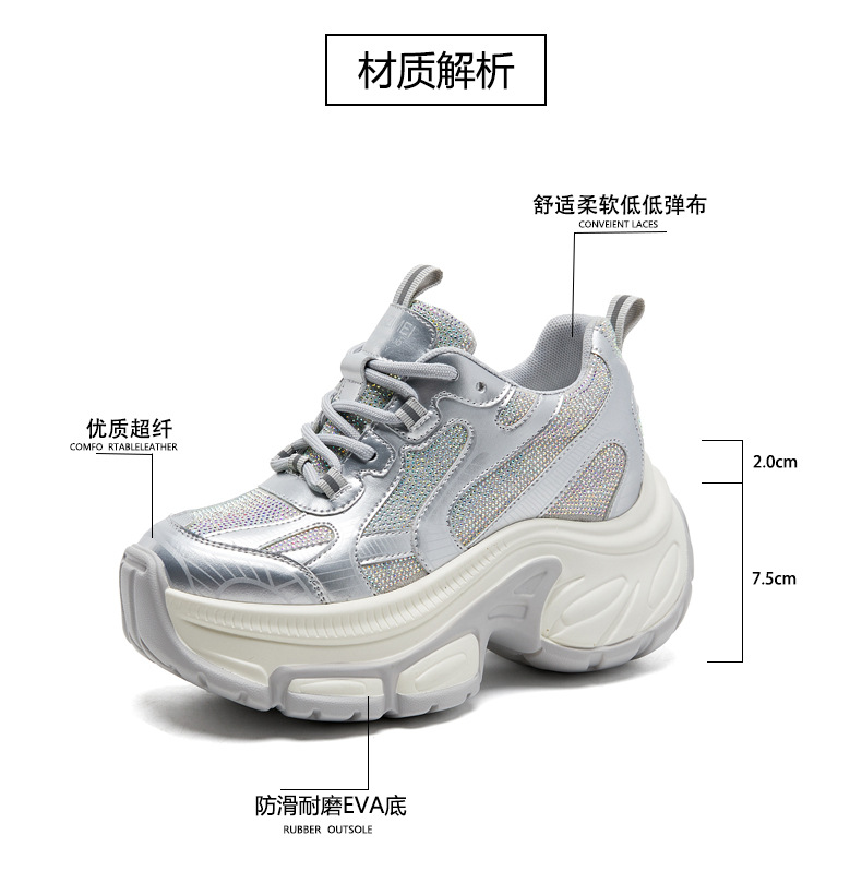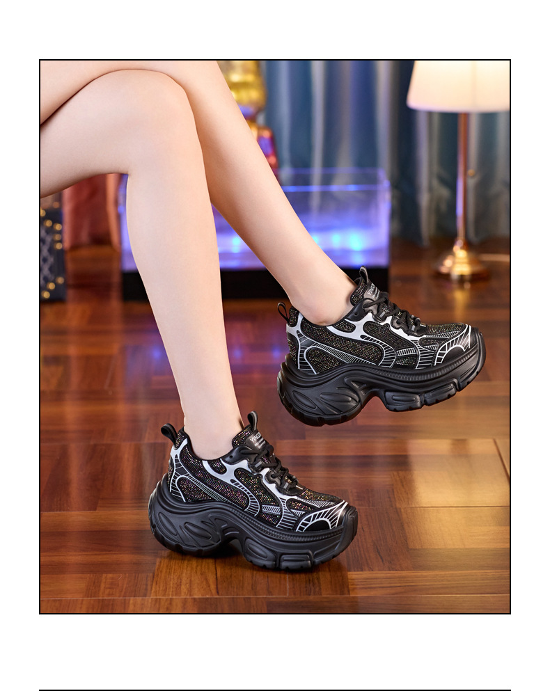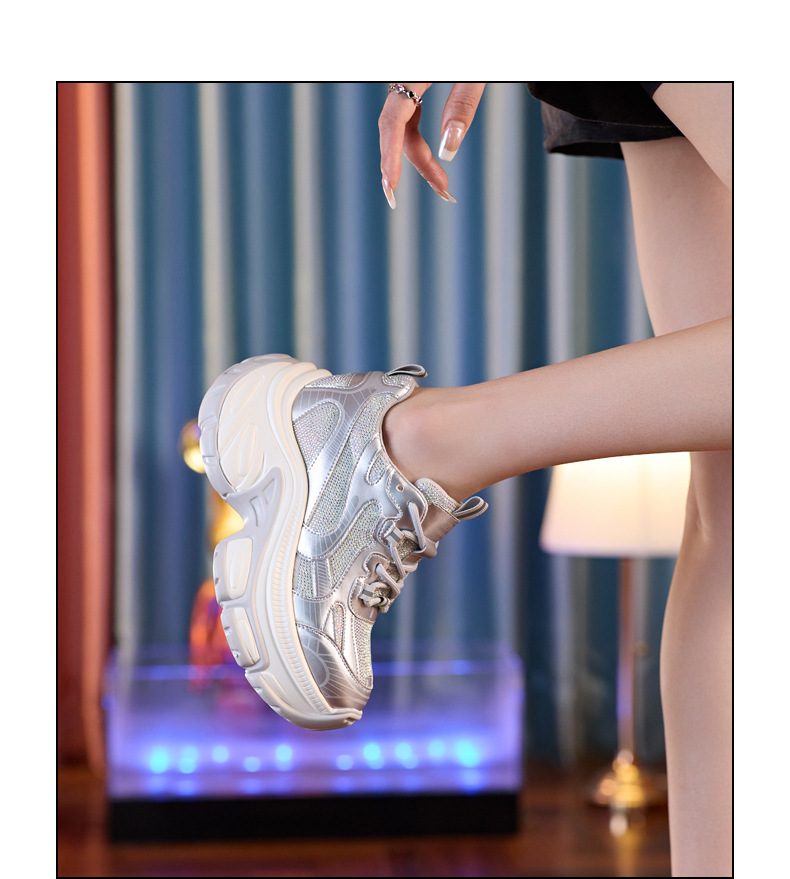 Giày thể thao nữ thiết kế đế hầm hố, tạo dáng cổ điển phong cách thập niên 90. Sản phẩm sở hữu phần đế ngoài dày dặn kết hợp đệm tăng chiều cao bên trong, giúp tôn dáng một cách tinh tế. Chất liệu thoáng khí cùng đệm êm ái mang đến trải nghiệm thoải mái cho cả ngày dài vận động. Dễ dàng phối cùng quần jeans, váy hay trang phục thể thao khi đi học, đi chơi hoặc tập luyện nhẹ nhàng. | Tên sản phẩm: Giày Thể Thao Nữ Tăng Chiều Cao Đế Cao Hàng Mùa Xuân Thu Đông - Giày Dép Nữ | Mã sản phẩm: B2171 - Giá: 1.220.000đ | Mã nhà sản xuất: WEDS-G04Hình ảnh sản phẩm