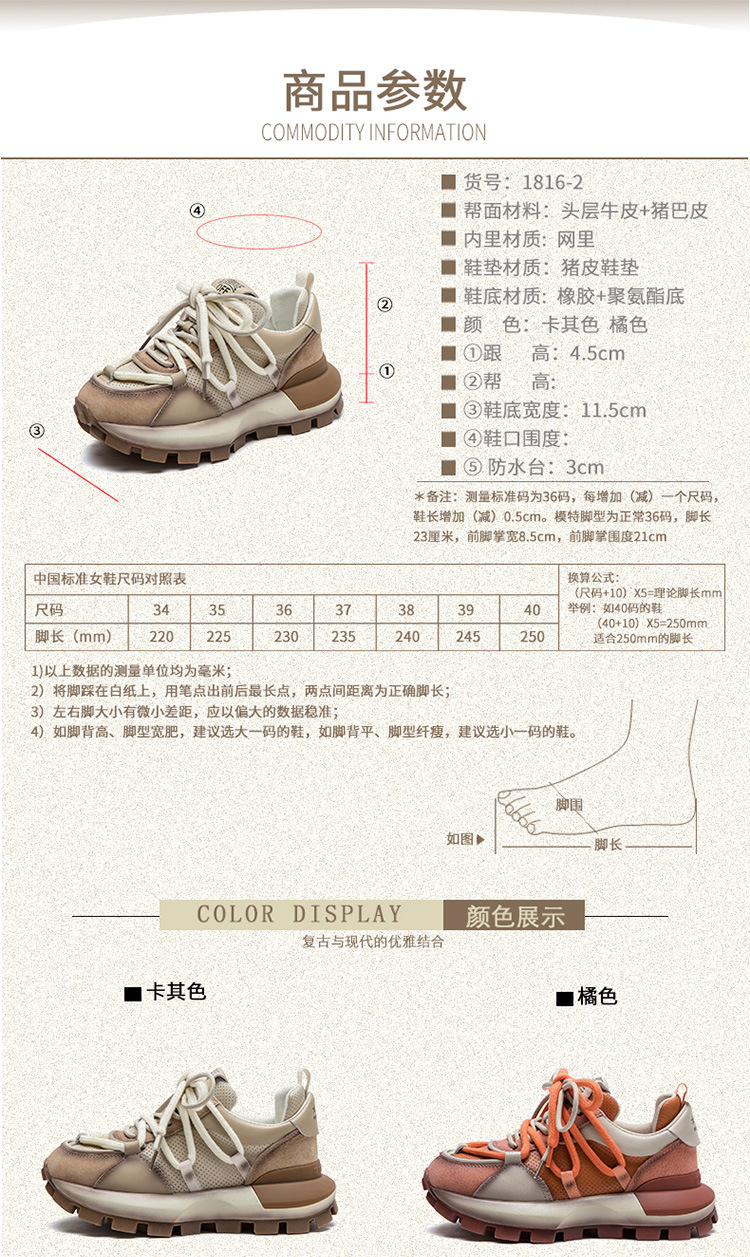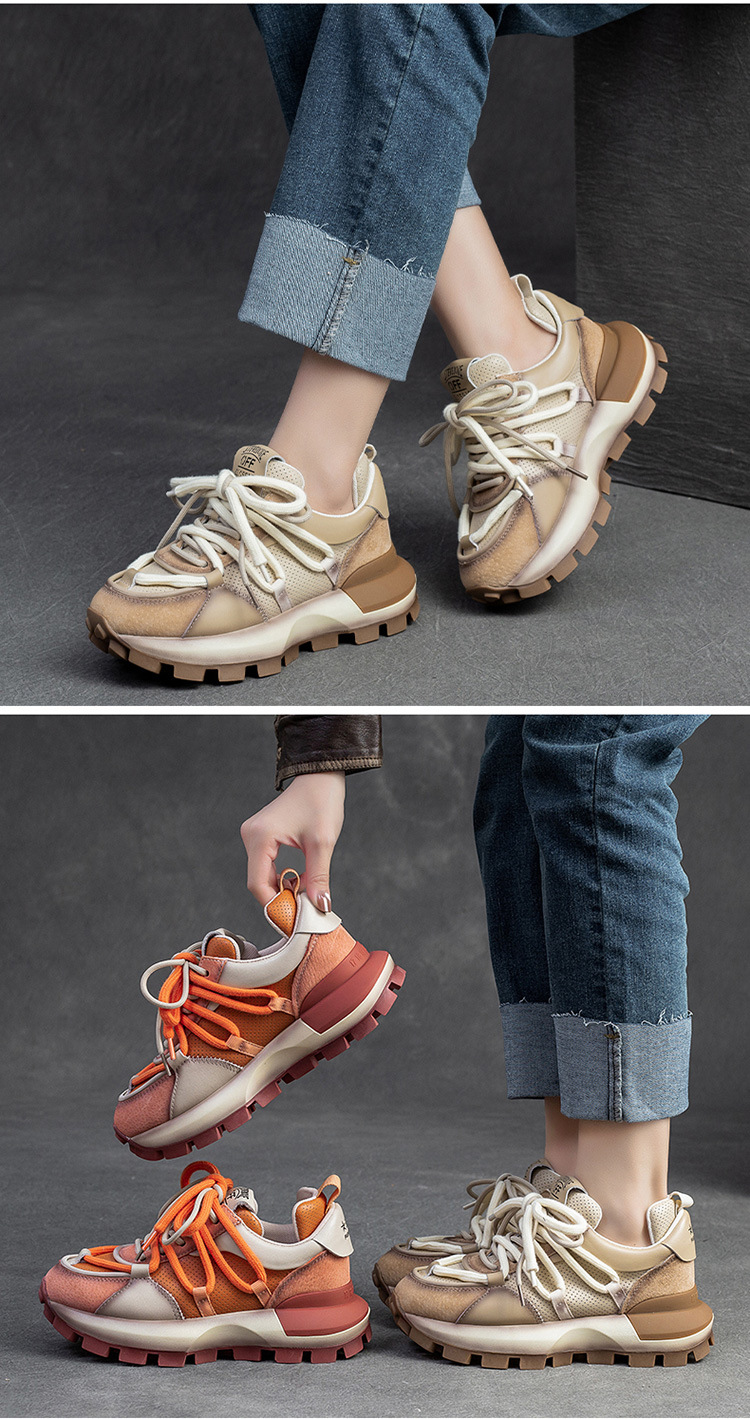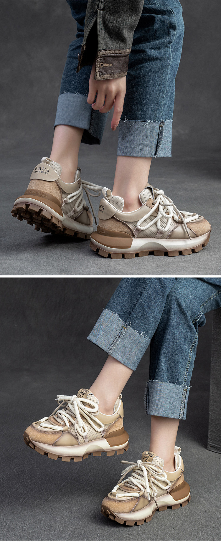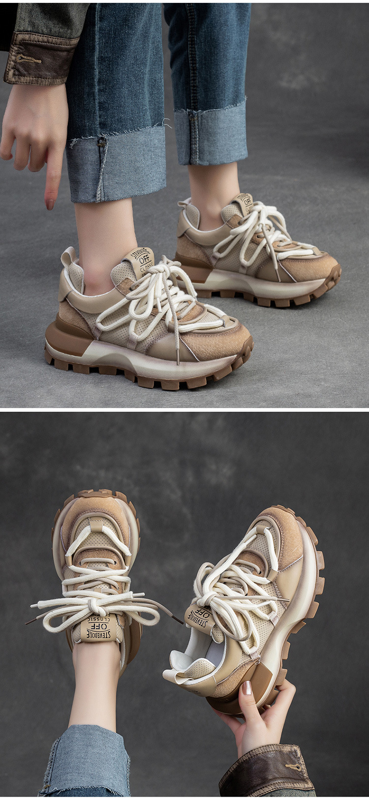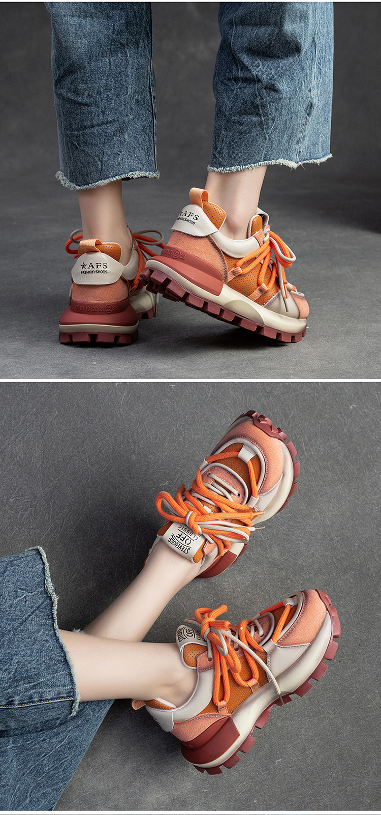 Giày thể thao nữ thiết kế dáng hầm hố với phần đế dày giúp tăng chiều cao một cách tự nhiên. Sản phẩm được làm từ chất liệu da bò thật ở phần mũi, kết hợp các mảng màu đan xen tạo điểm nhấn nổi bật. Đây là mẫu giày phù hợp cho các hoạt động hằng ngày, mang lại cảm giác dễ chịu khi sử dụng. Bạn có thể phối cùng quần jeans, váy hay nhiều loại trang phục khác để tạo phong cách năng động. | Tên sản phẩm: Giày Thể Thao Tăng Chiều Cao Nữ Chất Liệu Da Bò Tăng Chiều Cao Hàng Mùa Xuân Thu Đông - Giày Dép Nữ | Mã sản phẩm: B2177 - Giá: 1.620.000đ | Mã nhà sản xuất: SHDU-G05Hình ảnh sản phẩm
