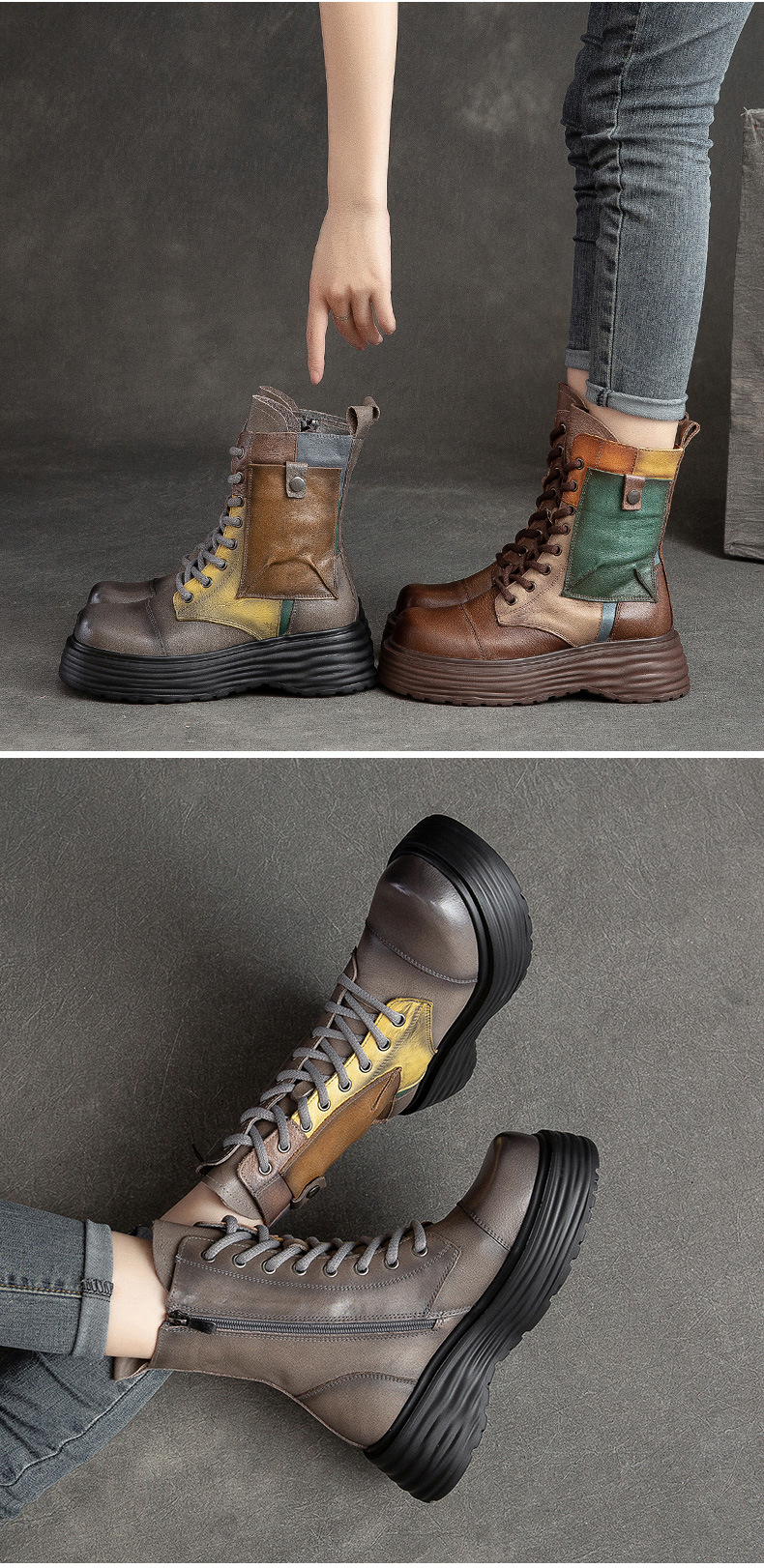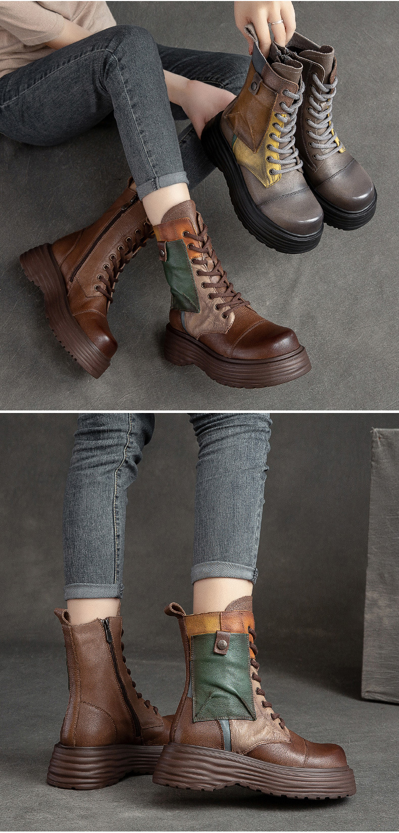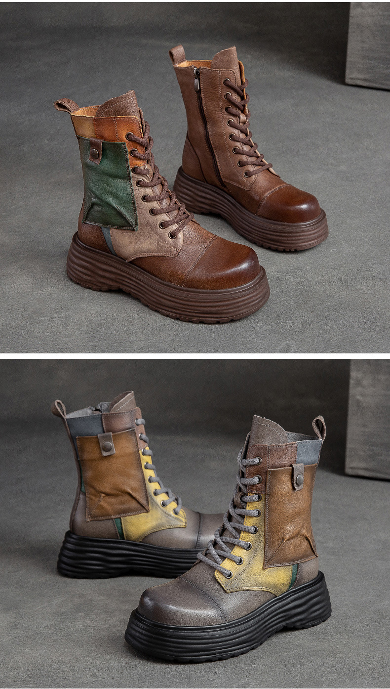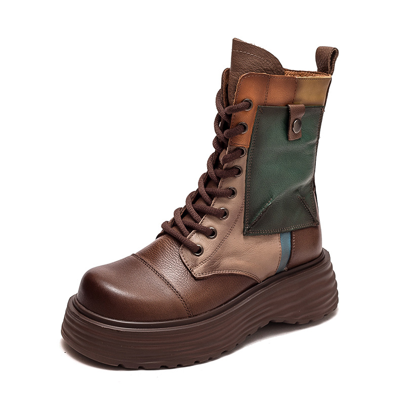 Đôi bốt nữ này có phong cách hoài cổ, phù hợp cho mùa thu đông. Sản phẩm có đế dày tạo cảm giác thoải mái khi mang. kiểu dáng linh hoạt giữa bốt và giày La Mã, phần mũi tròn, kết hợp hai tông màu và hiệu ứng rám nắng tự nhiên. Bên hông có khóa kéo giúp mang vào và tháo ra dễ dàng. Bạn có thể phối hợp với nhiều loại trang phục khác nhau để tạo nên vẻ ngoại ấn tượng. | Tên sản phẩm: Giày Thể Thao Tăng Chiều Cao Nữ Mũi Tròn Đế Cao Hàng Mùa Xuân Thu Đông Phục Cổ Cổ Điển - Giày Dép Nữ | Mã sản phẩm: B2183 - Giá: 1.900.000đ | Mã nhà sản xuất: SHDU-G05Hình ảnh sản phẩm
