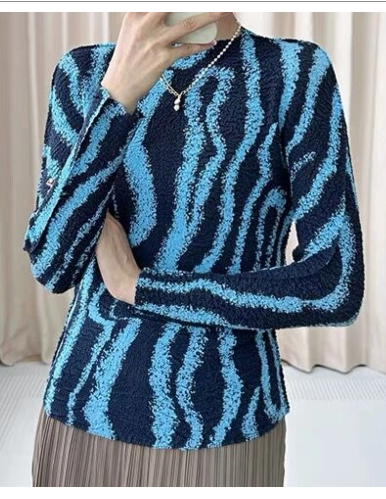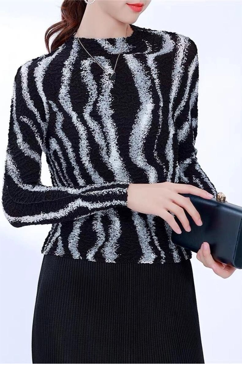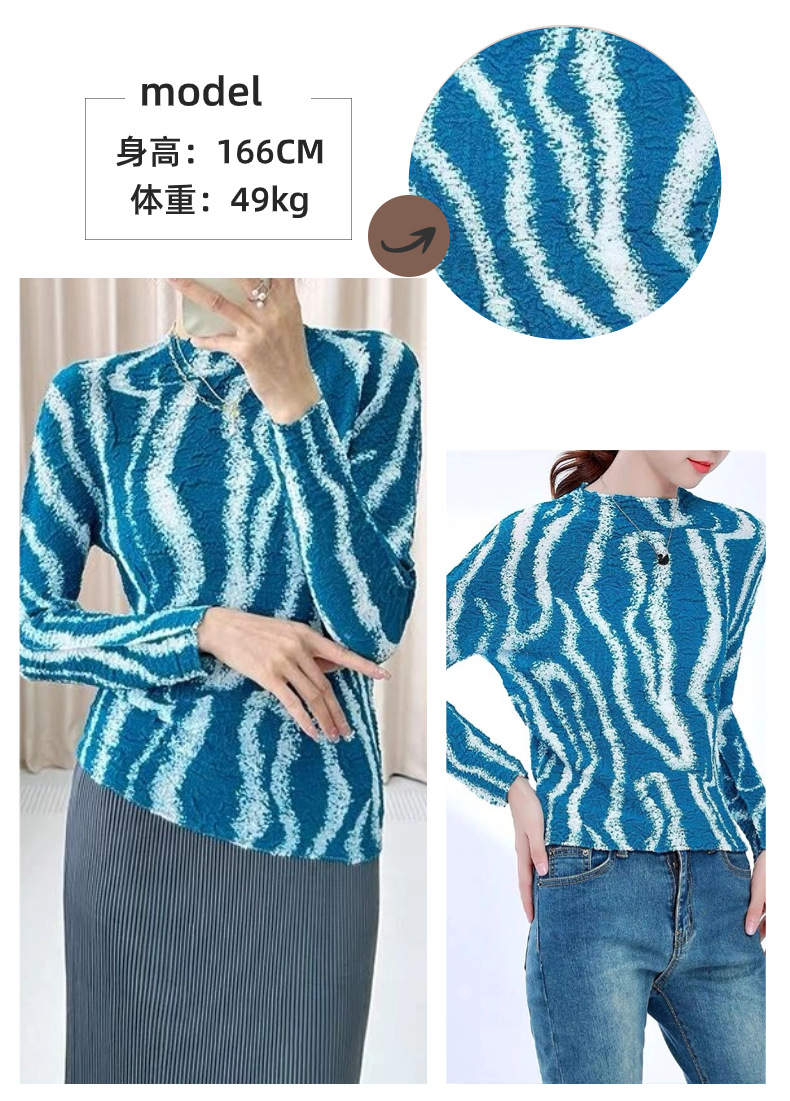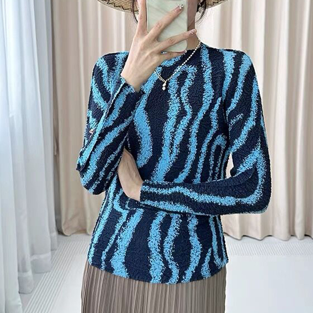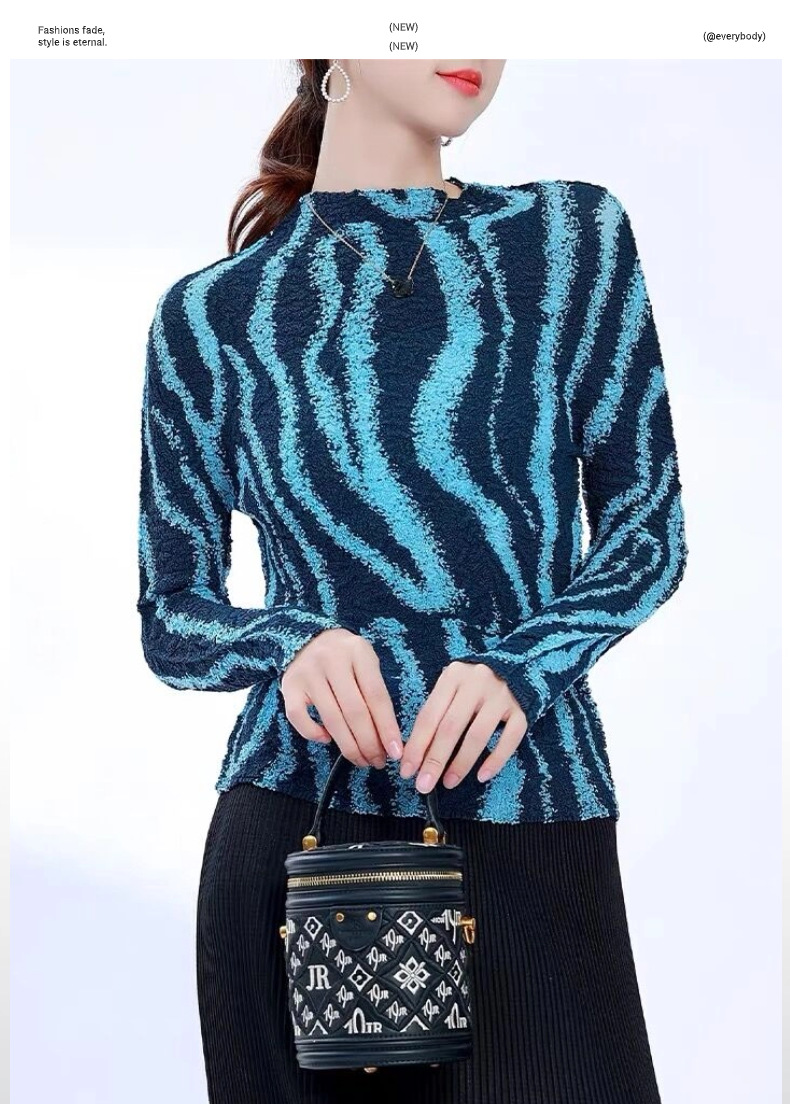 Áo thun dáng dài tay dành cho nữ, kiểu dáng Pháp thanh lịch. Sản phẩm có họa tiết sọc và chất vải xếp ly đặc trưng, tạo nên vẻ ngoài ấn tượng. Thiết kết ôm vừa phải giúp tôn dáng người mặc. Đây là mẫu áo mới cho mùa thu, dễ dàng phối hợp cùng quần tây hoặc chân váy để tạo nên những bộ trang phục hoàn chỉnh. Có thể mặc đi làm, đi chơi hoặc dự các sự kiện thường ngày. | Tên sản phẩm: Áo Thun Nữ Dáng Ôm Hàng Mùa Xuân Thu Đông - Thời Trang Nữ | Mã sản phẩm: B2210 - Giá: 1.350.000đ | Mã nhà sản xuất: DODGA-G04Hình ảnh sản phẩm