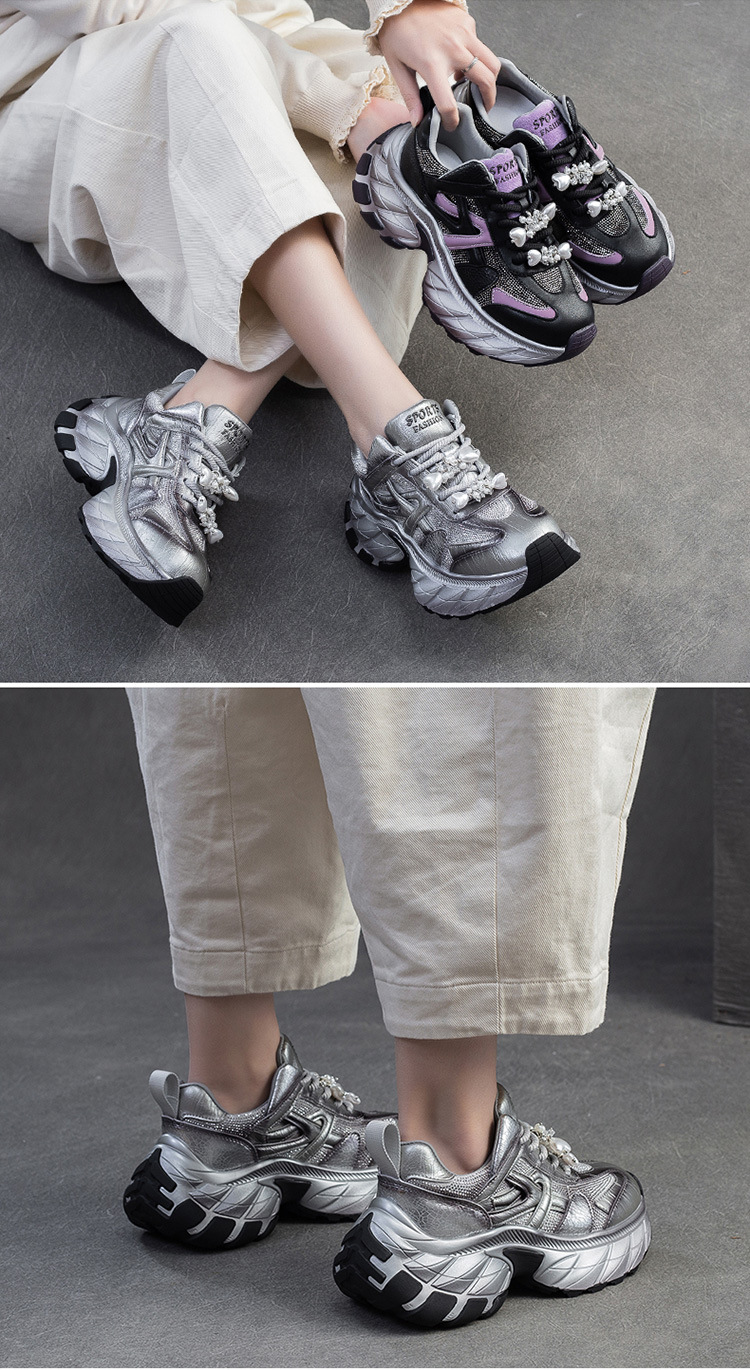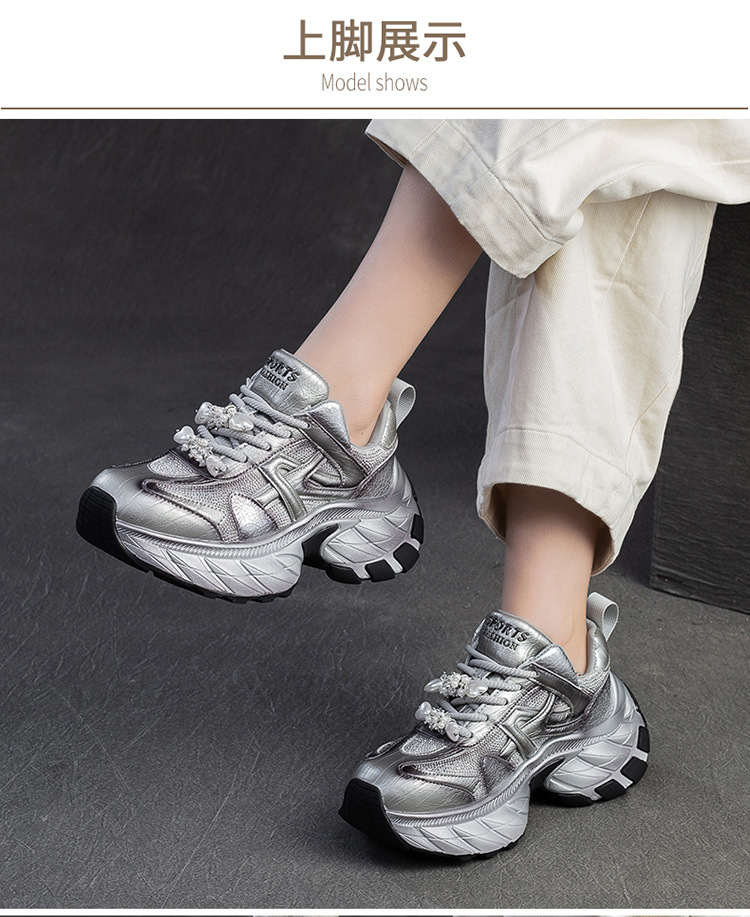 Giày thể thao nữ thiết kế nhiều màu kết hợp, phù hợp cho mùa xuân hè. Sản phẩm có phần đế được tạo kiểu giúp tăng chiều cao một cách nhẹ nhàng, phù hợp cho nhiều dáng người. Điểm nhấn là những chi tiết đá lấp lánh được trang trí tinh tế. Kiểu dáng cổ điển, dễ dàng phối hợp với nhiều trang phục khác nhau như quần jeans hay váy ngắn. Sử dụng thoải mái cho các hoạt động đi lại hằng ngày. | Tên sản phẩm: Giày Thể Thao Tăng Chiều Cao Nữ Tăng Chiều Cao Hàng Mùa Hè - Giày Dép Nữ | Mã sản phẩm: B2216 - Giá: 1.710.000đ | Mã nhà sản xuất: SHDU-G05Hình ảnh sản phẩm