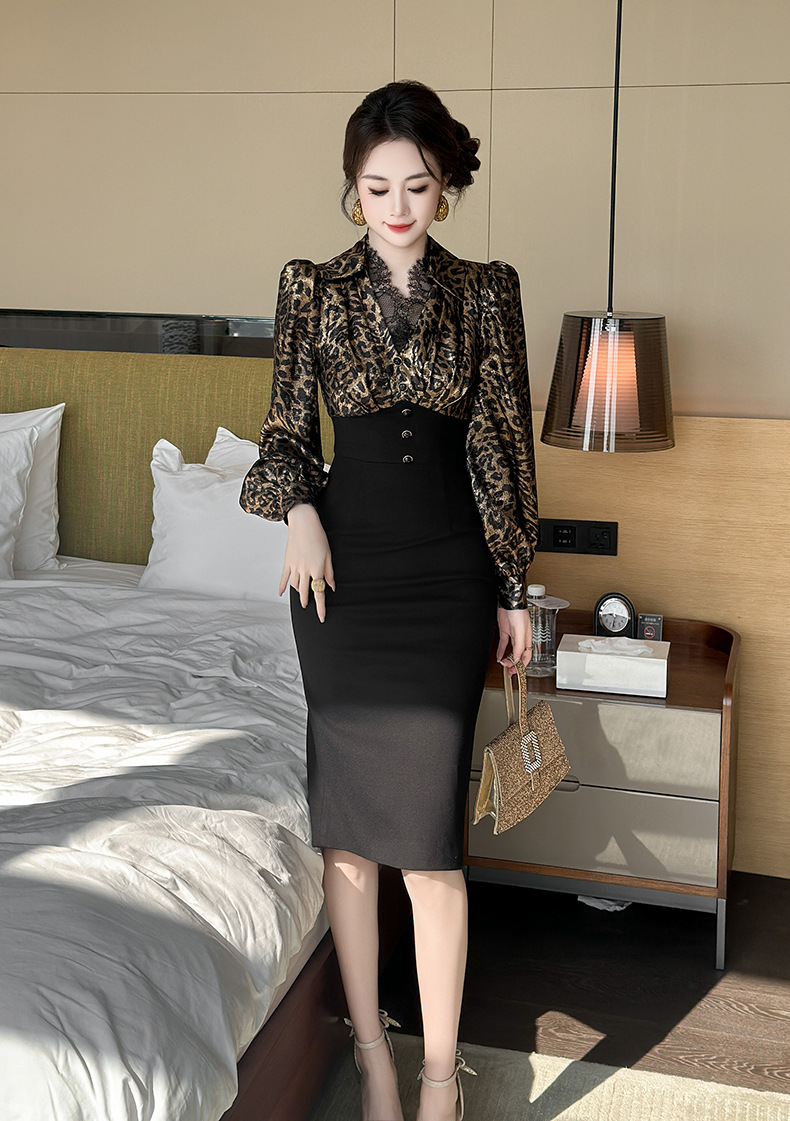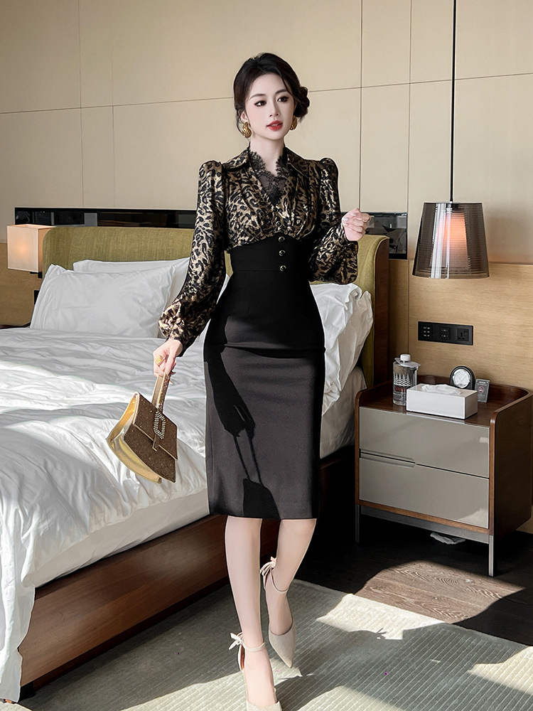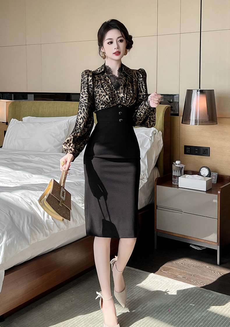 Đầm thiết kế hai lớp tạo kiểu dáng ôm sát eo và vòng hông, điểm nhấn là họa tiết da thú kết hợp cùng phần vải trơn. Sản phẩm phù hợp cho tiết trời thu đông, mang đến phong cách nhẹ nhàng và lịch sự. Có thể phối cùng giày cao gót và túi xách để hoàn thiện bộ trang phục. Mặc trực tiếp, kết hợp với áo khoác mỏng khi trời lạnh và giặt theo hướng dẫn trên nhãn mác. | Tên sản phẩm: Váy Đầm Liền Thân Nữ Cả Bộ 2 Món Hàng Mùa Xuân Thu Đông - Thời Trang Nữ | Mã sản phẩm: B2227 - Giá: 1.360.000đ | Mã nhà sản xuất: CHDG-G04Hình ảnh sản phẩm