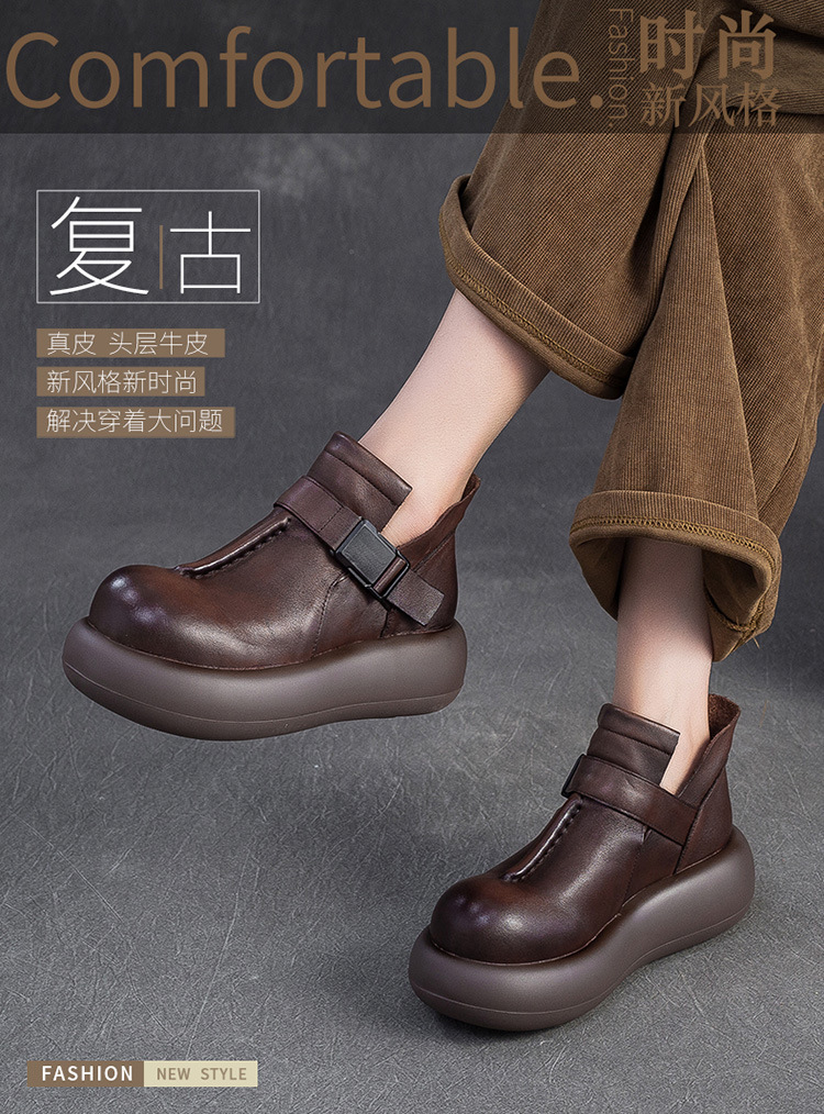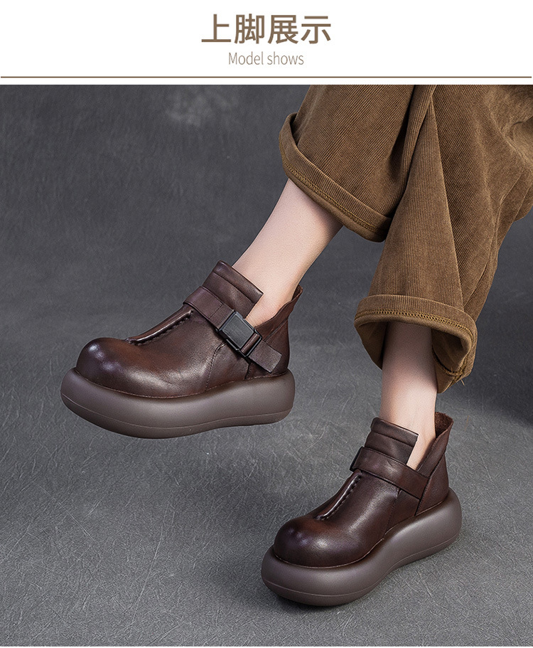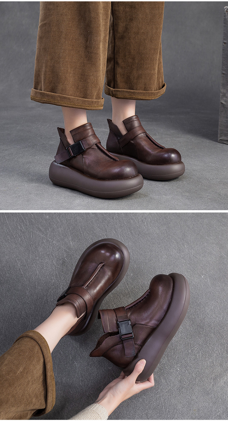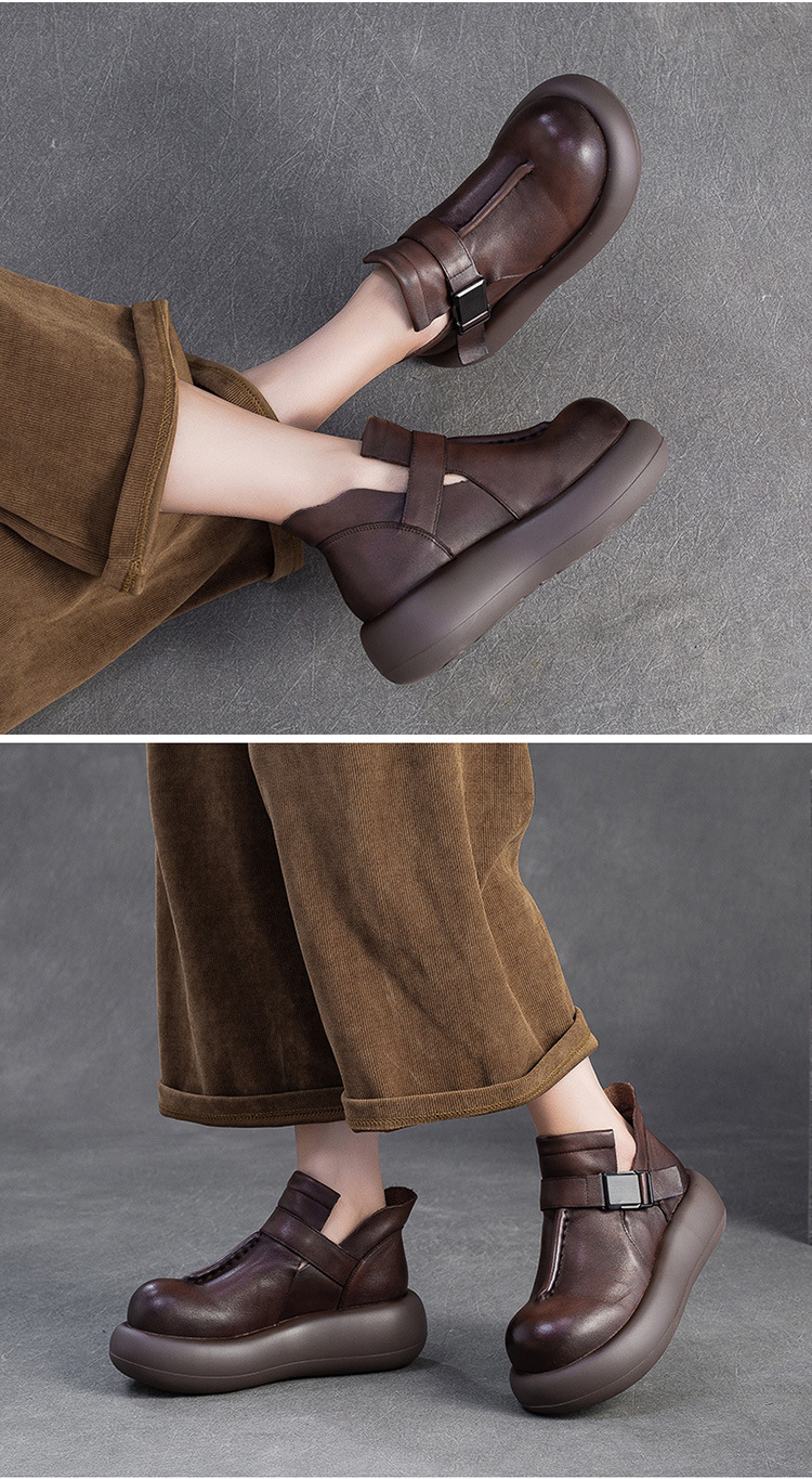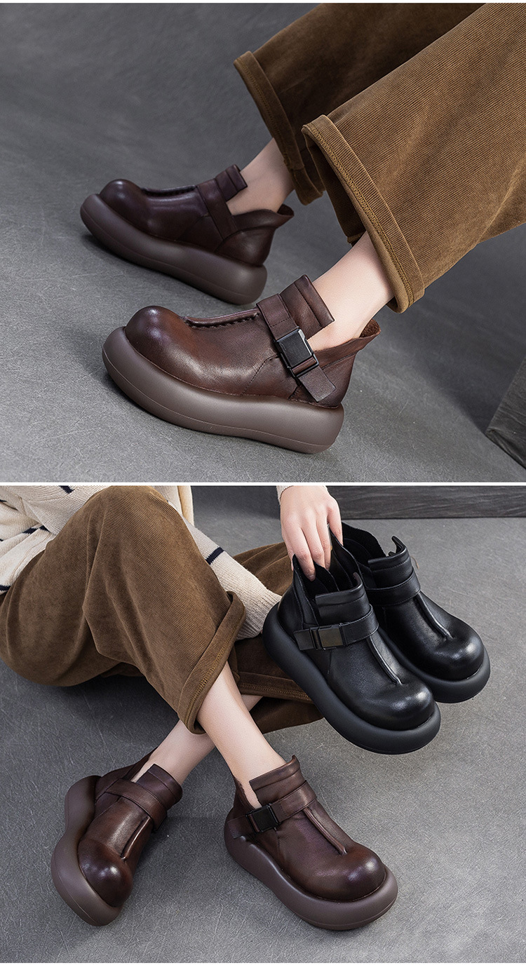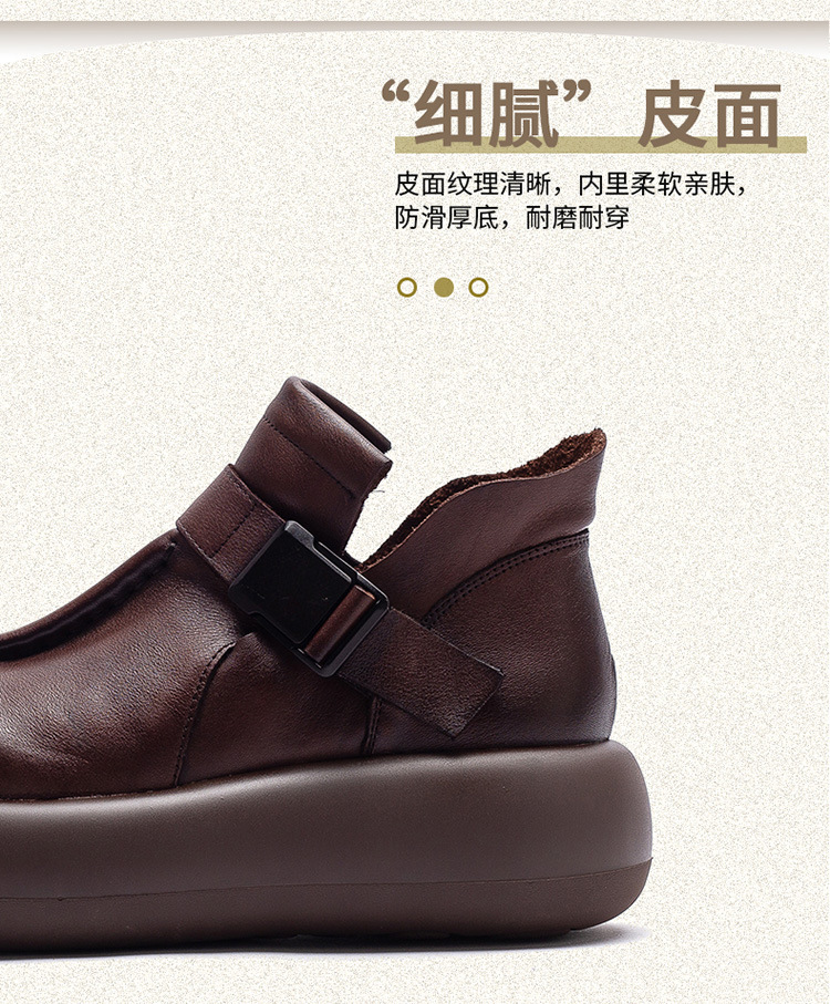 Giày bốt cổ thấp kiểu dáng thư giãn, phong cách cổ điển dành cho nữ. Sản phẩm làm từ chất da bò mềm mại, bền đẹp. Đế giày được thiết kế tinh tế giúp tăng chiều cao nhẹ nhàng, phù hợp cho nhiều dịp sử dụng. Kiểu dáng mang hơi hướng Anh quốc, dễ dàng kết hợp với nhiều loại trang phục khác nhau như quần jeans hay váy. Bạn có thể dùng hàng ngày, lau sạch bụi bám trên bề mặt da để giữ giày luôn sạch đẹp. | Tên sản phẩm: Giày Boot Cổ Thấp Nữ Chất Liệu Da Bò Tăng Chiều Cao Hàng Mùa Xuân Thu Đông Phục Cổ Cổ Điển - Giày Dép Nữ | Mã sản phẩm: B2236 - Giá: 1.620.000đ | Mã nhà sản xuất: SHDU-G05Hình ảnh sản phẩm