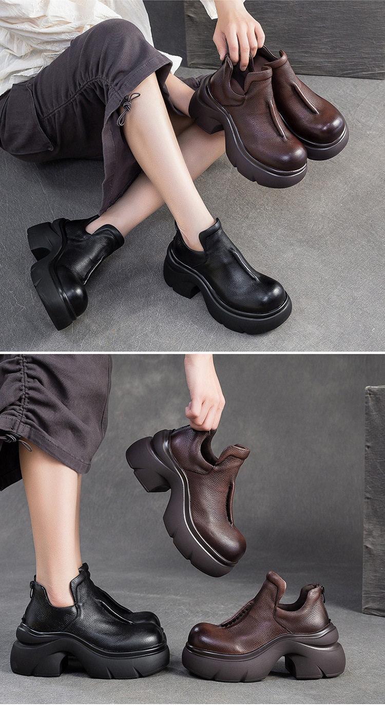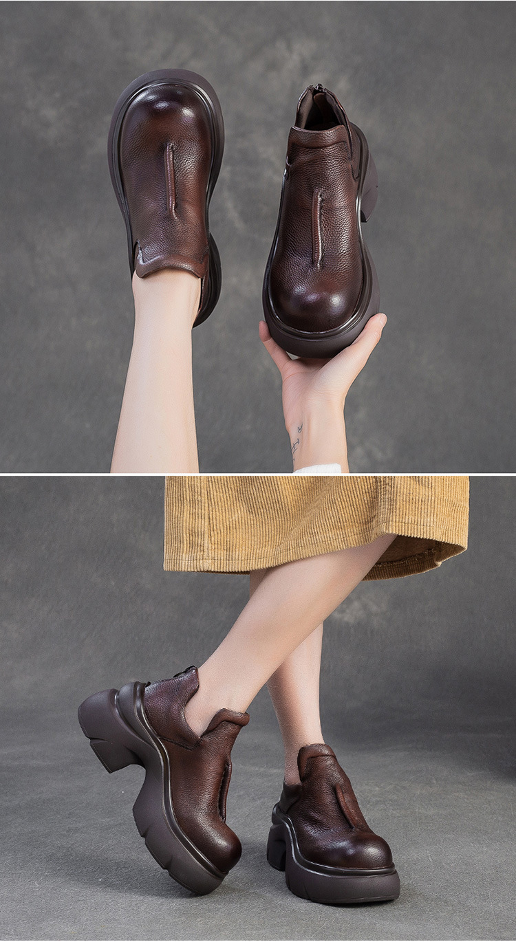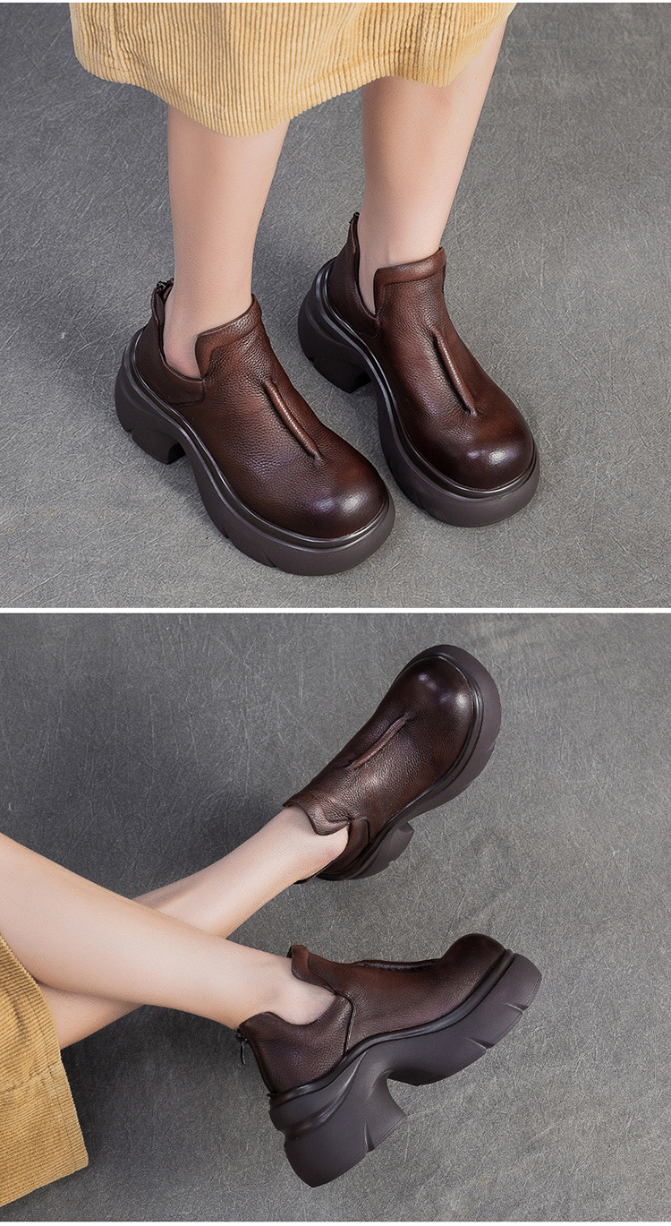 Đôi bốt ngắn này có thiết kế theo phong cách cổ điển, phù hợp cho mùa thu đông. Sản phẩm được làm từ chất liệu da thật bền đẹp, điểm nhấn là khóa kéo phía sau giúp mang vào dễ dàng. Kiểu dáng ôm chân vừa vặn, tạo cảm giác dễ chịu khi mang cả ngày. Bạn có thể kết hợp linh hoạt với nhiều loại trang phục khác nhau như quần jeans hay váy để tạo nên những phong cách đa dạng. | Tên sản phẩm: Giày Boot Cổ Thấp Nữ Chất Liệu Da Bò Hàng Mùa Xuân Thu Đông Phong Cách Âu Mỹ - Giày Dép Nữ | Mã sản phẩm: B2243 - Giá: 1.620.000đ | Mã nhà sản xuất: SHDU-G05Hình ảnh sản phẩm