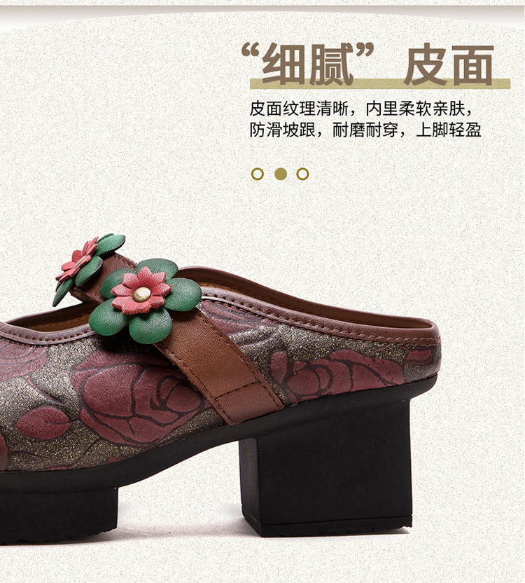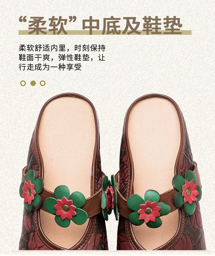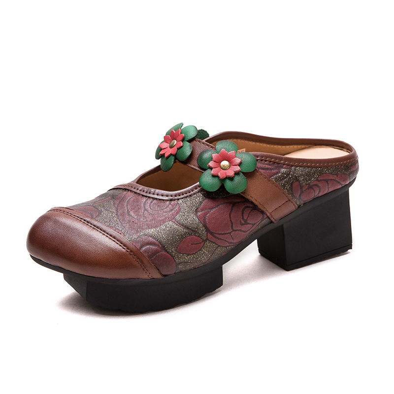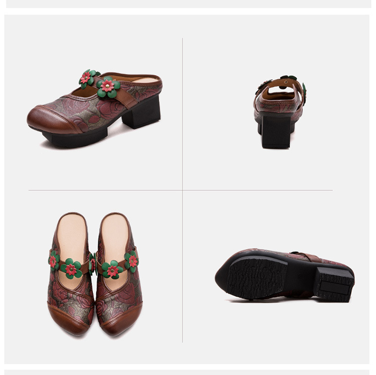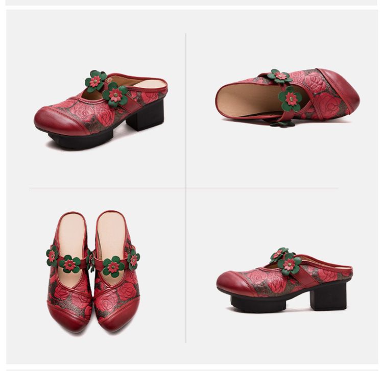 Dép đi trong nhà và ra ngoài đều phù hợp, mang phong cách dân tộc với các họa tiết in nổi bật. Đế dép được làm từ chất liệu da bò mềm mại, tạo cảm giác dễ chịu khi mang. Phần gót thấp vừa phải giúp nâng đỡ bàn chân, đi lại thoải mái cả ngày. Kiểu dáng kín mũi bảo vệ ngón chân, phối cùng trang phục thường ngày rất hợp. Dùng được cho nhiều dịp khác nhau, từ sinh hoạt trong nhà đến dạo phố cùng bạn bè. | Tên sản phẩm: Giày Dép Lê Nữ Chất Liệu Da Bò Gót Vuông Họa Tiết Hoa Hàng Mùa Hè - Giày Dép Nữ | Mã sản phẩm: B2248 - Giá: 1.420.000đ | Mã nhà sản xuất: SHDU-G04Hình ảnh sản phẩm
