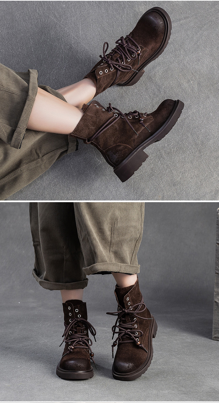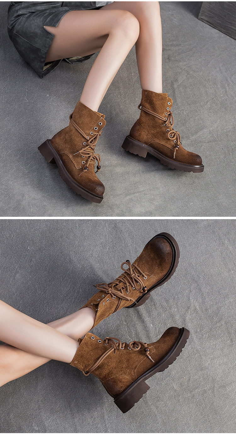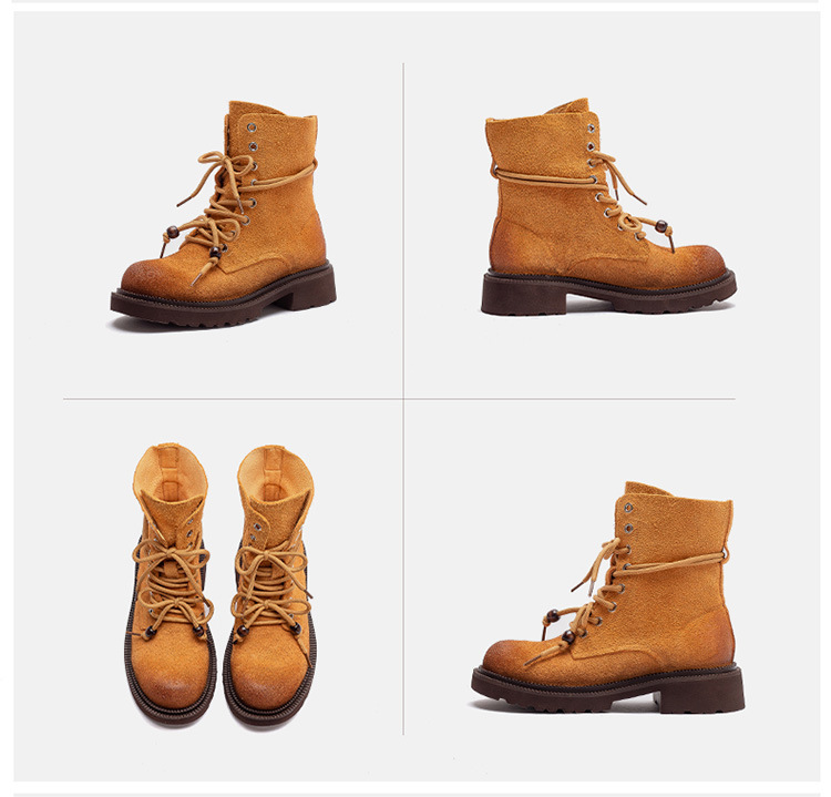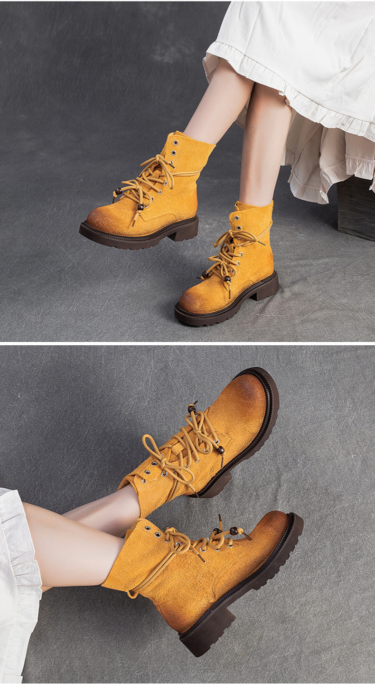 Đôi bốt này có kiểu dáng tròn trịa đặc trưng, mang phong cách cổ điển nhẹ nhàng. Sản phẩm phù hợp cho những ngày thu đông, kết hợp dễ dàng với nhiều loại trang phục khác nhau. Bốt được thiết kế với dây buộc giúp bạn điều chỉnh ôm vừa chân. Chất liệu bền bỉ, đế chắc chắn cho bạn thoải mái vận động cả ngày. Bạn có thể mang cùng quần jeans, váy hay quần tất để tạo nên phong cách riêng. | Tên sản phẩm: Giày Boot Martin Nữ Mũi Tròn Hàng Mùa Xuân Thu Đông Phục Cổ Cổ Điển - Giày Dép Nữ | Mã sản phẩm: B2274 - Giá: 1.620.000đ | Mã nhà sản xuất: SHDU-G05Hình ảnh sản phẩm