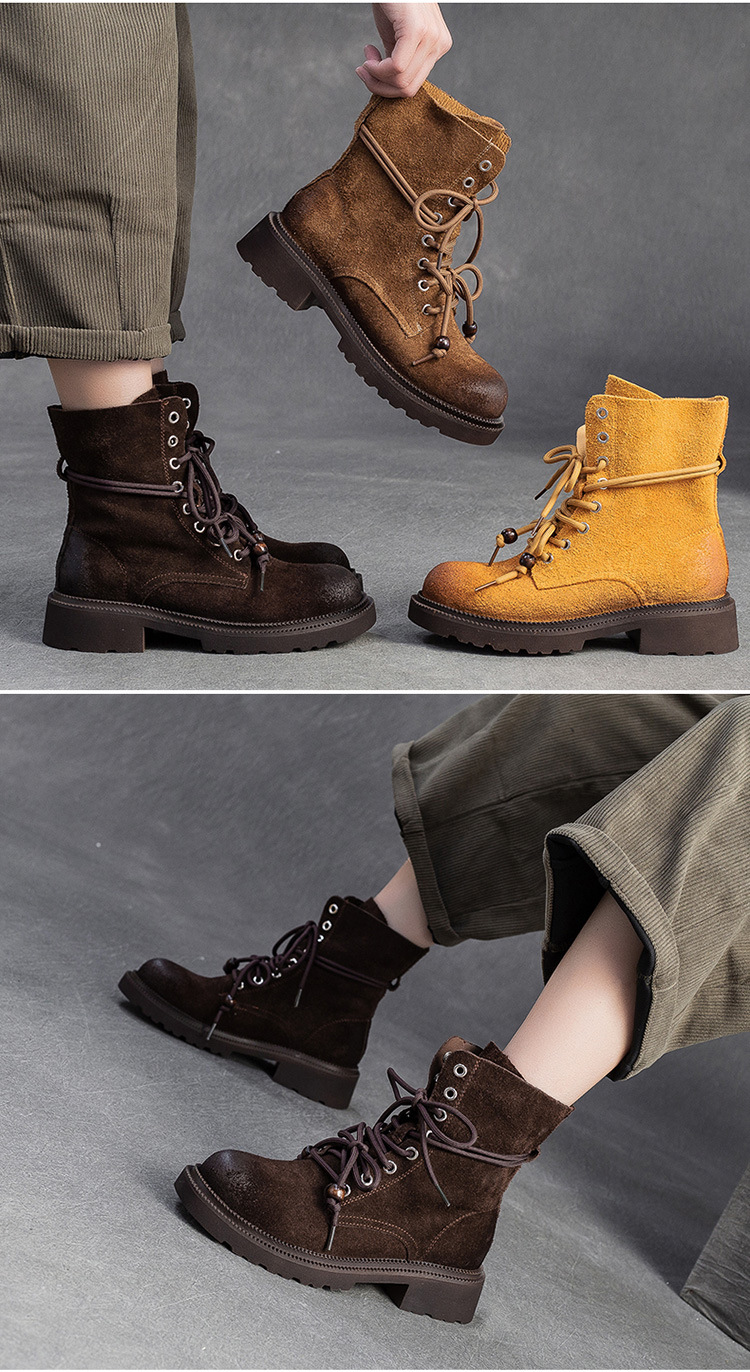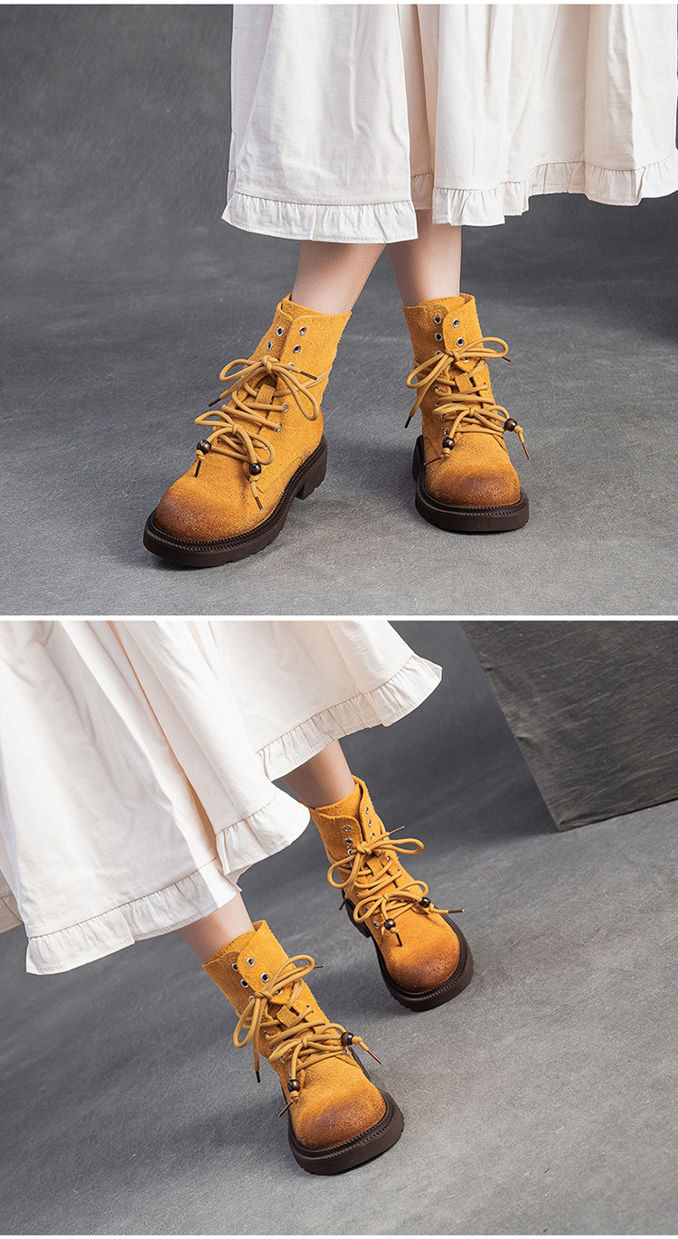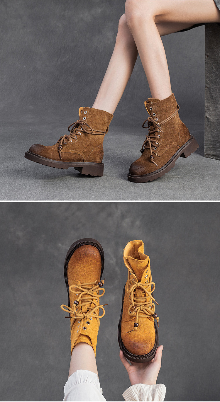 Đôi bốt này có kiểu dáng tròn trịa đặc trưng, mang phong cách cổ điển nhẹ nhàng. Sản phẩm phù hợp cho những ngày thu đông, kết hợp dễ dàng với nhiều loại trang phục khác nhau. Bốt được thiết kế với dây buộc giúp bạn điều chỉnh ôm vừa chân. Chất liệu bền bỉ, đế chắc chắn cho bạn thoải mái vận động cả ngày. Bạn có thể mang cùng quần jeans, váy hay quần tất để tạo nên phong cách riêng. | Tên sản phẩm: Giày Boot Martin Nữ Mũi Tròn Hàng Mùa Xuân Thu Đông Phục Cổ Cổ Điển - Giày Dép Nữ | Mã sản phẩm: B2274 - Giá: 1.620.000đ | Mã nhà sản xuất: SHDU-G05Hình ảnh sản phẩm