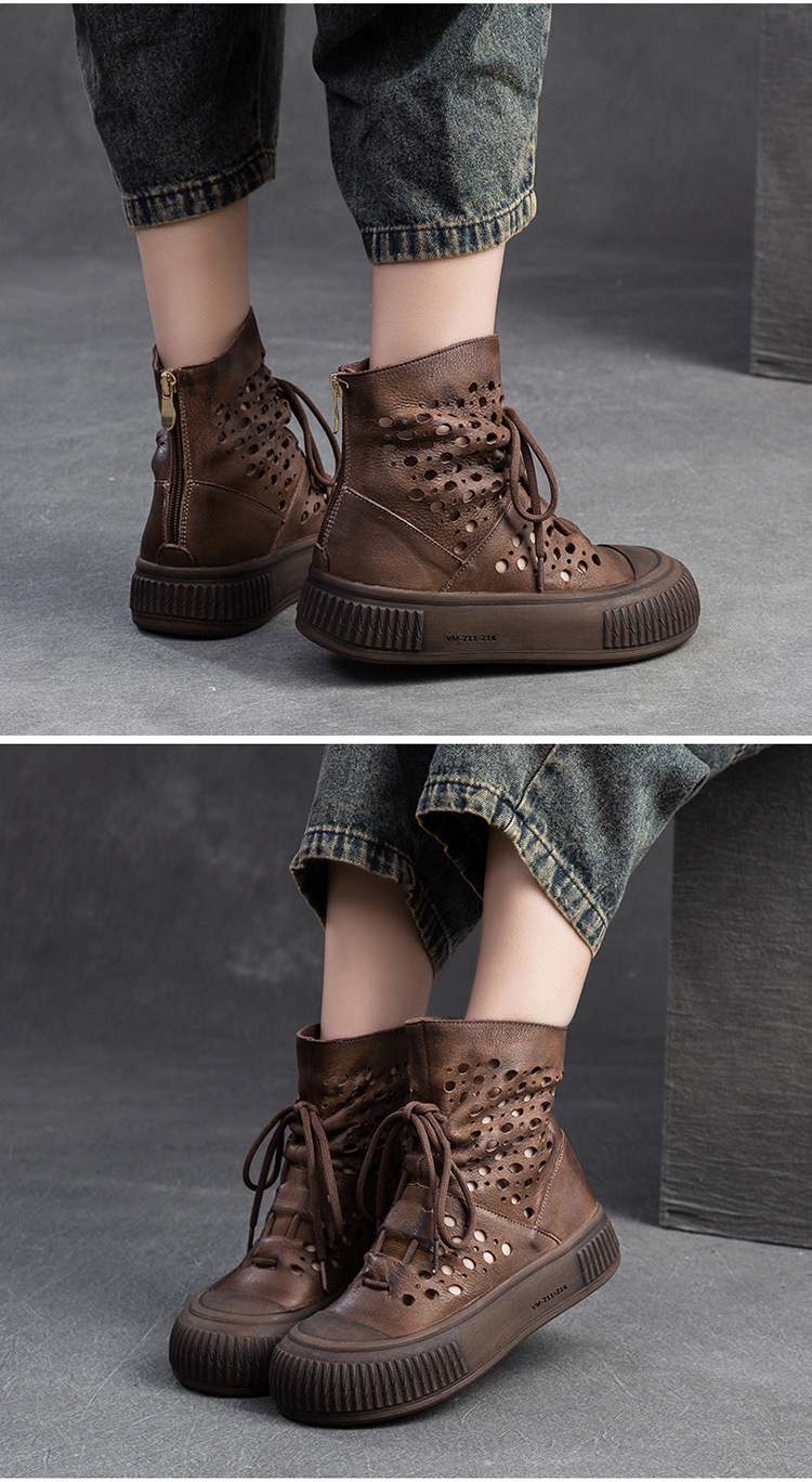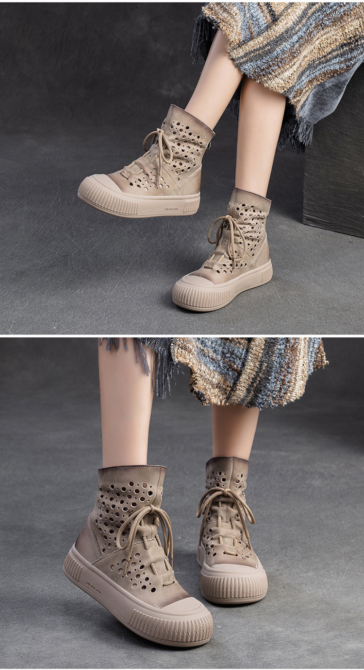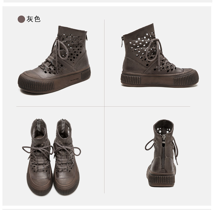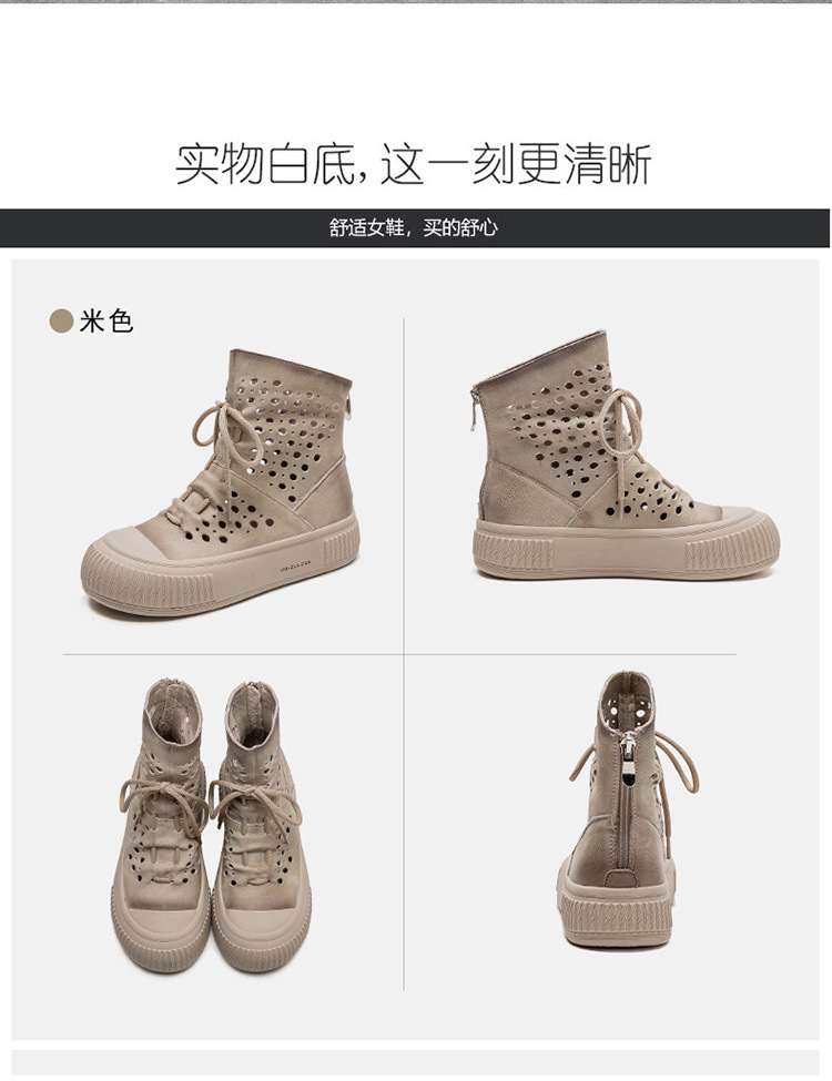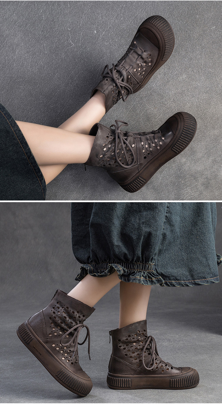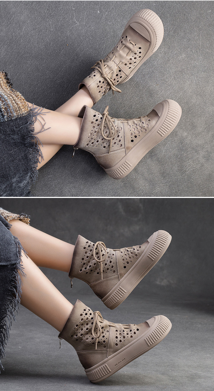 Giày bốt mùa hè cho nữ, thiết kế cổ thấp với phần đế làm từ chất liệu da thật dày dặn. Trên thân giày có các lỗ thông hơi dạng lưới, giúp đôi chân luôn khô ráo và mát mẻ. Kiểu dáng mang phong cách thoải mái, dễ dàng phối hợp với nhiều loại trang phục khác nhau như quần jeans hay váy ngắn. Sử dụng giày cho các hoạt động đi lại thường ngày hoặc dạo phố. | Tên sản phẩm: Boot Cổ Thấp Nữ Chất Liệu Da Bò Thoáng Khí Đế Cao Hàng Mùa Hè - Giày Dép Nữ | Mã sản phẩm: B2278 - Giá: 1.520.000đ | Mã nhà sản xuất: SHDU-G04Hình ảnh sản phẩm