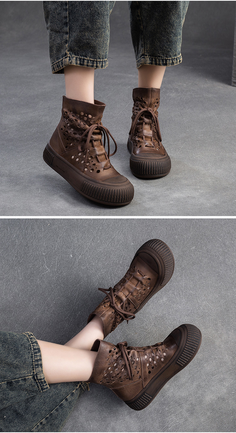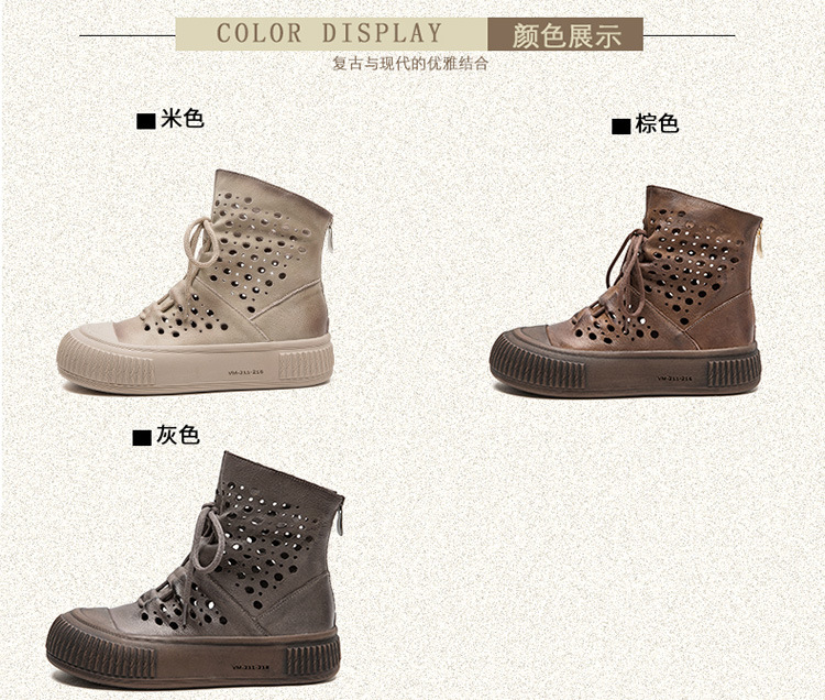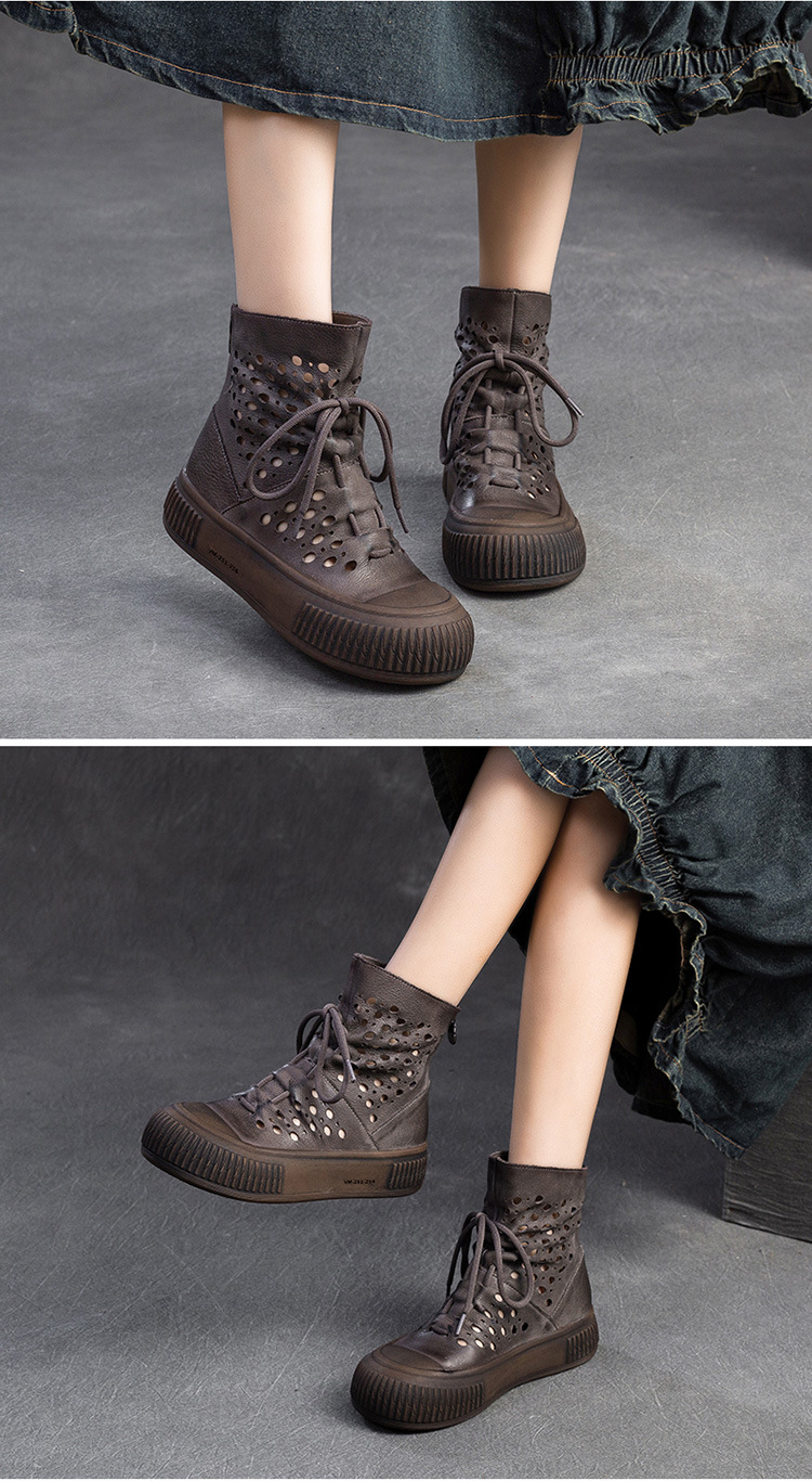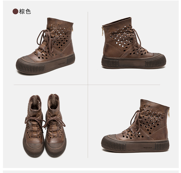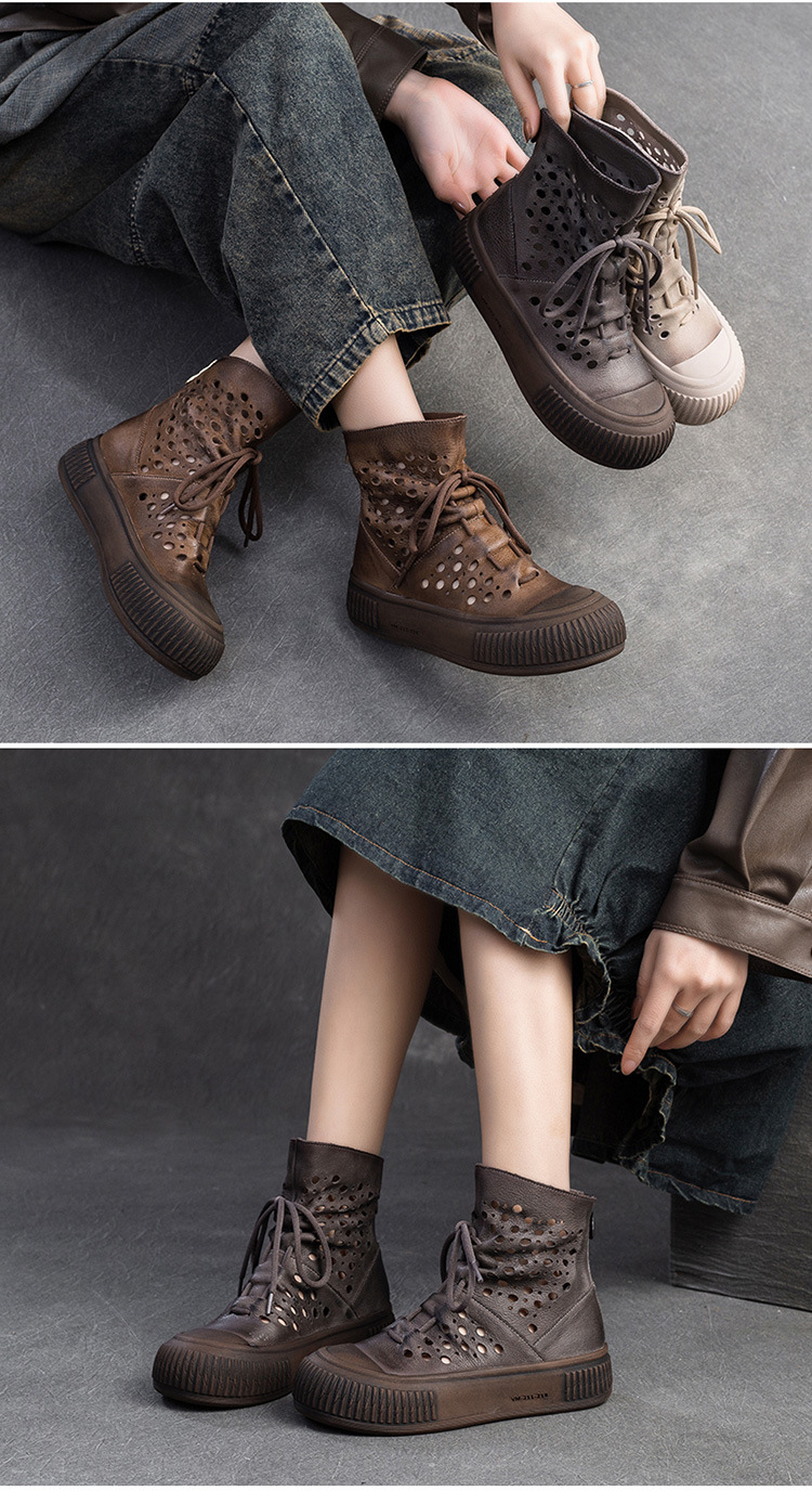 Giày bốt mùa hè cho nữ, thiết kế cổ thấp với phần đế làm từ chất liệu da thật dày dặn. Trên thân giày có các lỗ thông hơi dạng lưới, giúp đôi chân luôn khô ráo và mát mẻ. Kiểu dáng mang phong cách thoải mái, dễ dàng phối hợp với nhiều loại trang phục khác nhau như quần jeans hay váy ngắn. Sử dụng giày cho các hoạt động đi lại thường ngày hoặc dạo phố. | Tên sản phẩm: Boot Cổ Thấp Nữ Chất Liệu Da Bò Thoáng Khí Đế Cao Hàng Mùa Hè - Giày Dép Nữ | Mã sản phẩm: B2278 - Giá: 1.520.000đ | Mã nhà sản xuất: SHDU-G04Hình ảnh sản phẩm