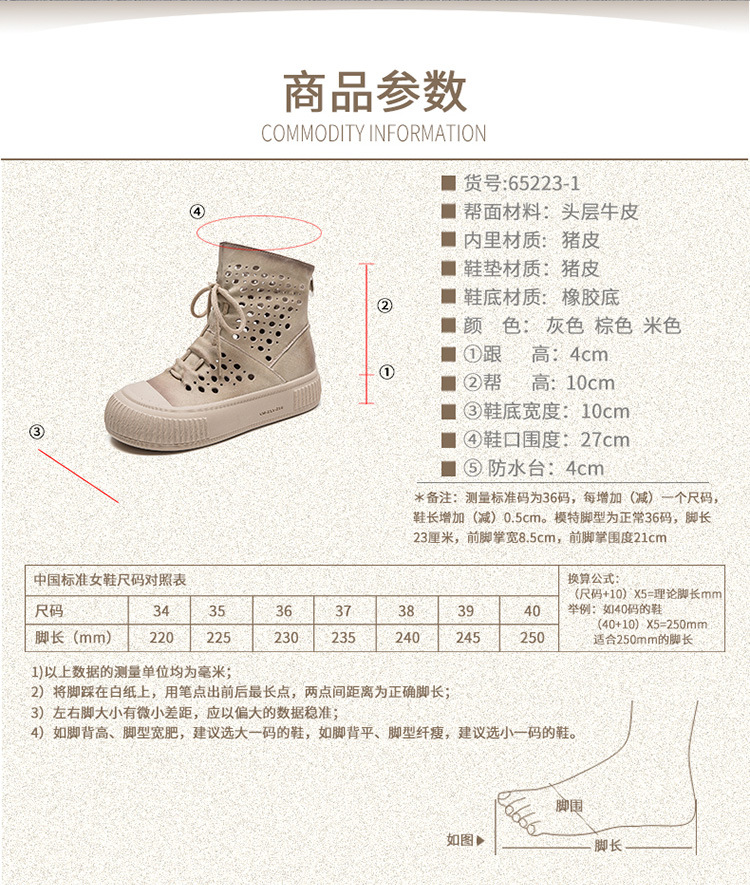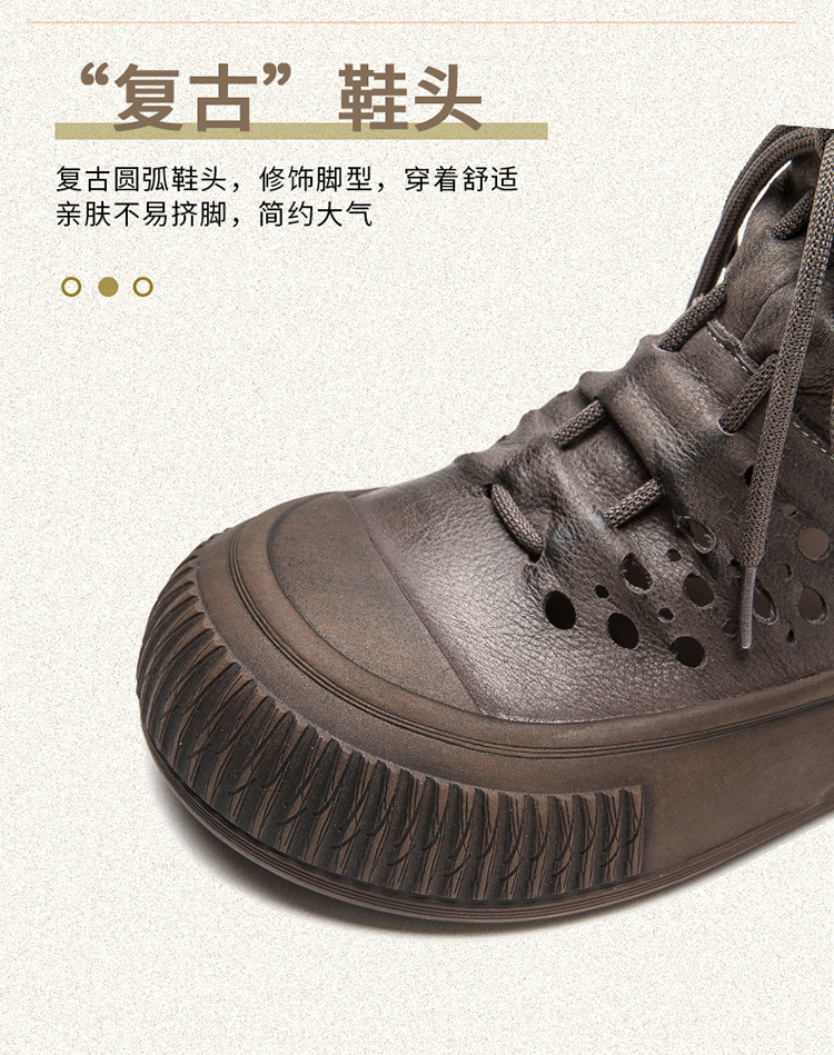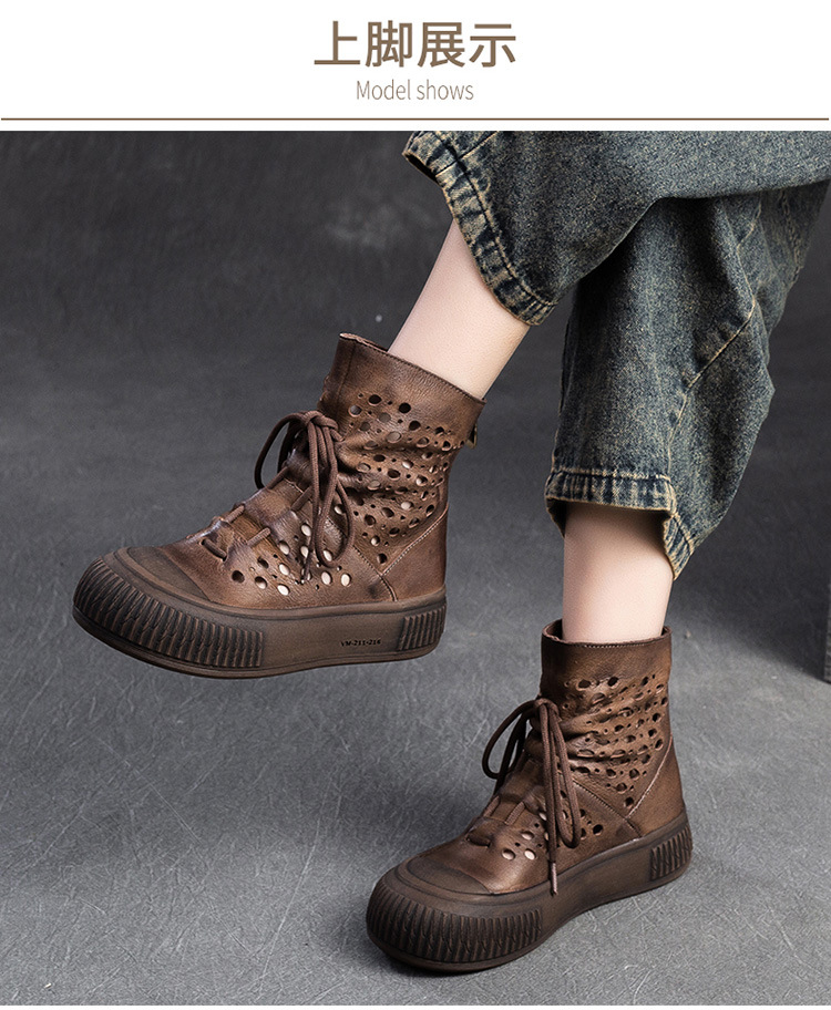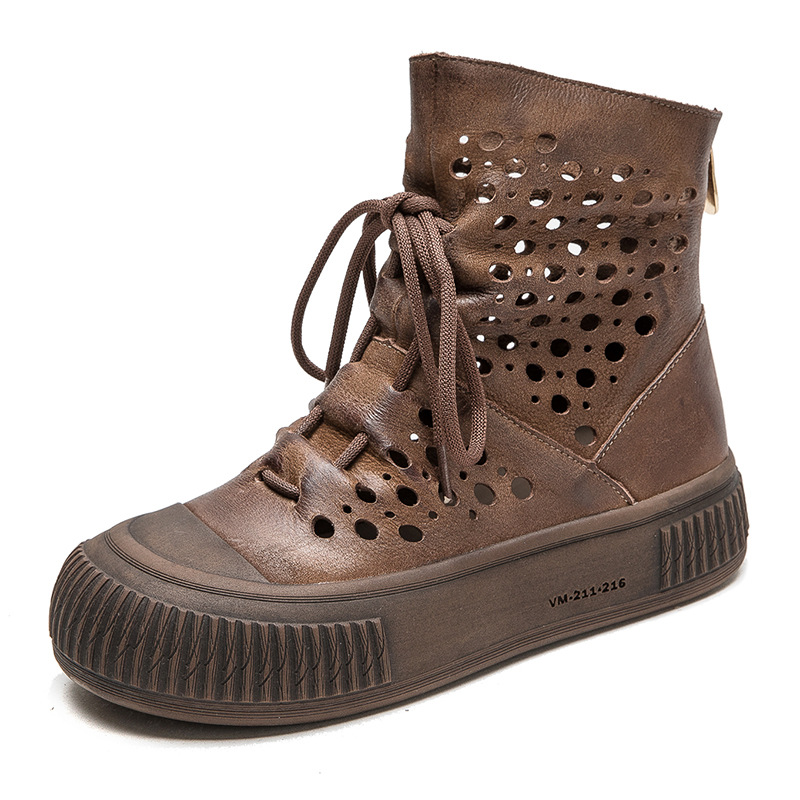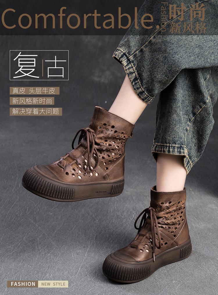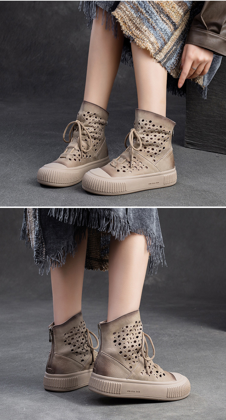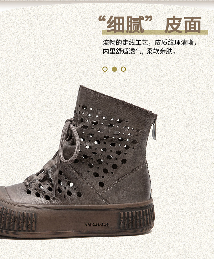 Giày bốt mùa hè cho nữ, thiết kế cổ thấp với phần đế làm từ chất liệu da thật dày dặn. Trên thân giày có các lỗ thông hơi dạng lưới, giúp đôi chân luôn khô ráo và mát mẻ. Kiểu dáng mang phong cách thoải mái, dễ dàng phối hợp với nhiều loại trang phục khác nhau như quần jeans hay váy ngắn. Sử dụng giày cho các hoạt động đi lại thường ngày hoặc dạo phố. | Tên sản phẩm: Boot Cổ Thấp Nữ Chất Liệu Da Bò Thoáng Khí Đế Cao Hàng Mùa Hè - Giày Dép Nữ | Mã sản phẩm: B2278 - Giá: 1.520.000đ | Mã nhà sản xuất: SHDU-G04Hình ảnh sản phẩm