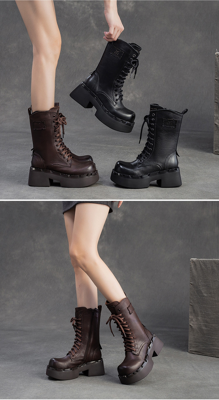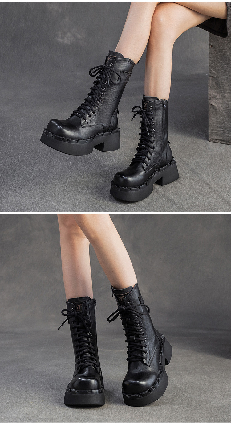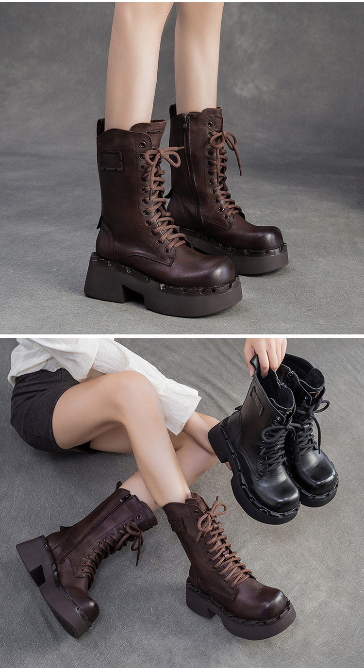 Giày bốt cổ điển dành cho nữ, được làm từ chất liệu da thật tự nhiên ở mặt ngoài. Kiểu dáng mang phong cách hoài cổ với phần đế được thiết kế tăng chiều cao nhẹ, tôn dáng người mặc. Sản phẩm kết hợp dễ dàng với nhiều trang phục khác nhau như quần jeans, váy hay quần tây. Đôi giày mang lại cảm giác dễ chịu cho đôi chân cả ngày dài. Bạn có thể sử dụng hàng ngày, phù hợp cho nhiều dịp khác nhau. | Tên sản phẩm: Giày Boot Martin Nữ Chất Liệu Da Bò Tăng Chiều Cao Hàng Mùa Xuân Thu Đông Phục Cổ Cổ Điển - Giày Dép Nữ | Mã sản phẩm: B2301 - Giá: 1.900.000đ | Mã nhà sản xuất: SHDU-G05Hình ảnh sản phẩm