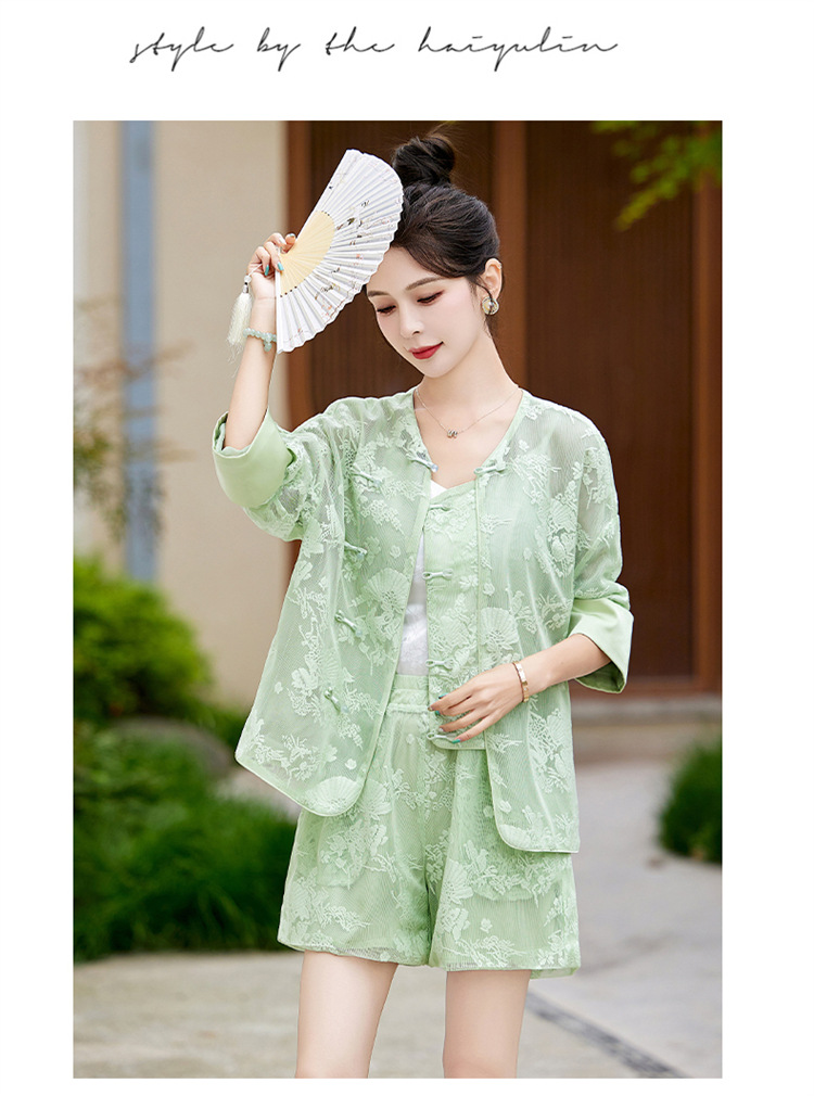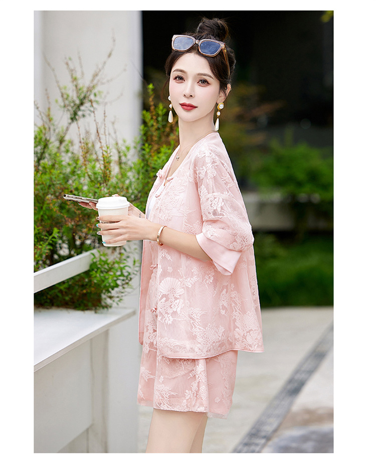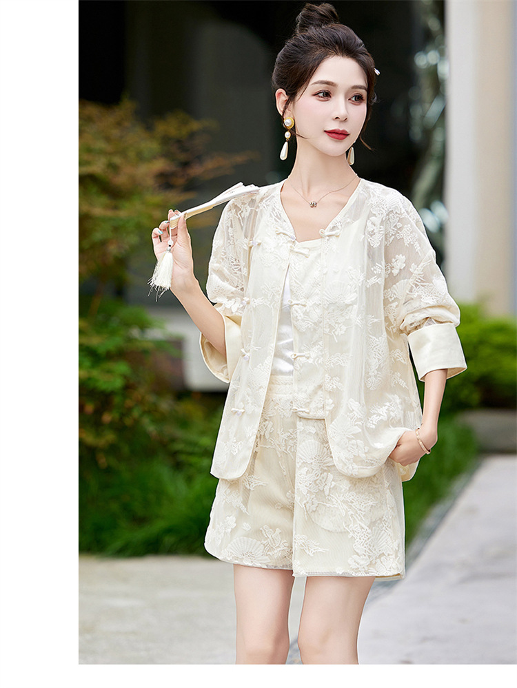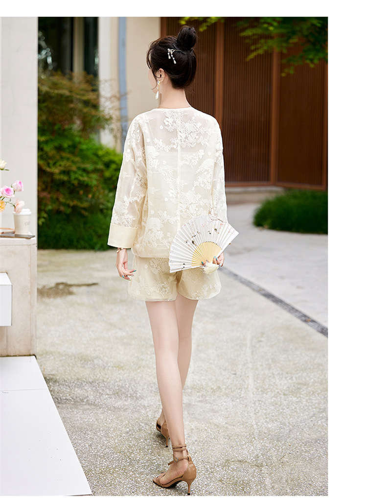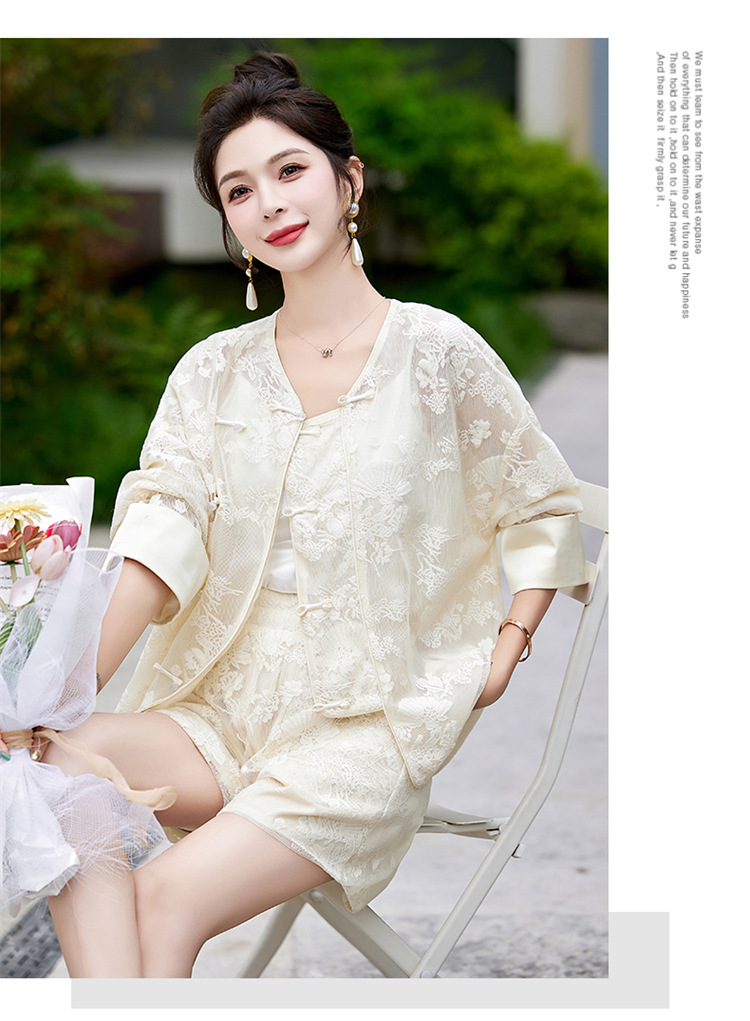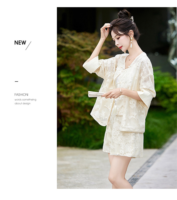 Bộ trang phục ngắn gồm hai mảnh dành cho mùa hè, lấy cảm hứng từ nét đẹp truyền thống. Thiết kế tinh tế với các họa tiết thêu và ren tỉ mỉ, tôn lên vẻ nữ tính, nhẹ nhàng. Kiểu dáng phù hợp cho nhiều dịp, giúp người mặc trông trẻ trung và thoải mái. Có thể phối mặc bộ này cùng giày dép đơn giản để tạo nên một vẻ ngoài hài hòa, gọn gàng cho những ngày nắng nóng. | Tên sản phẩm: Đồ Bộ Nữ Chất Liệu Ren Cả Bộ 2 Món Thêu Họa Tiết Hoa Trông Trẻ Hơn Tuổi Hàng Mùa Hè - Thời Trang Nữ | Mã sản phẩm: B2311 - Giá: 2.020.000đ | Mã nhà sản xuất: WODIG-G05Hình ảnh sản phẩm