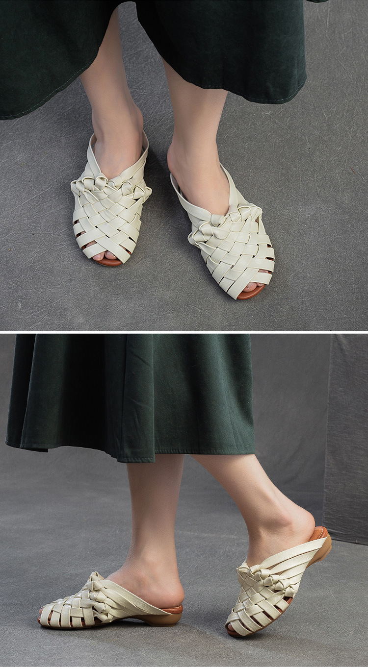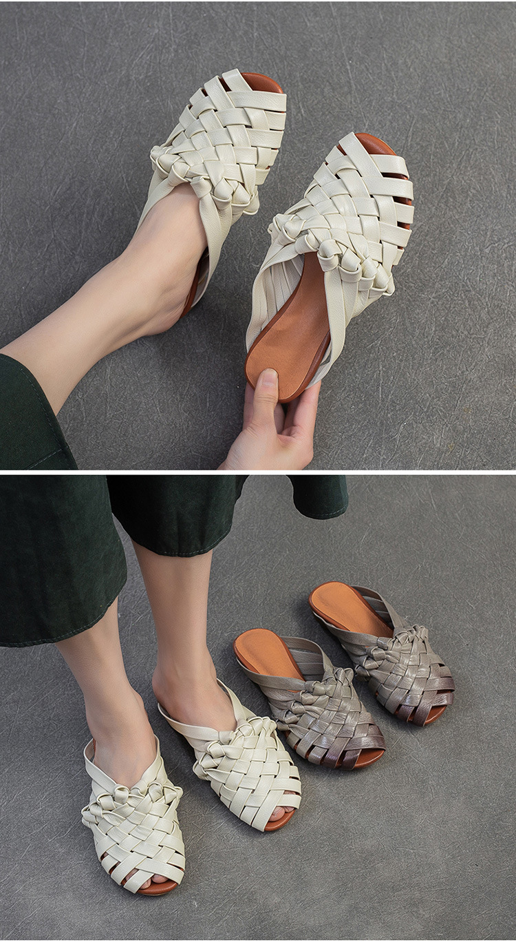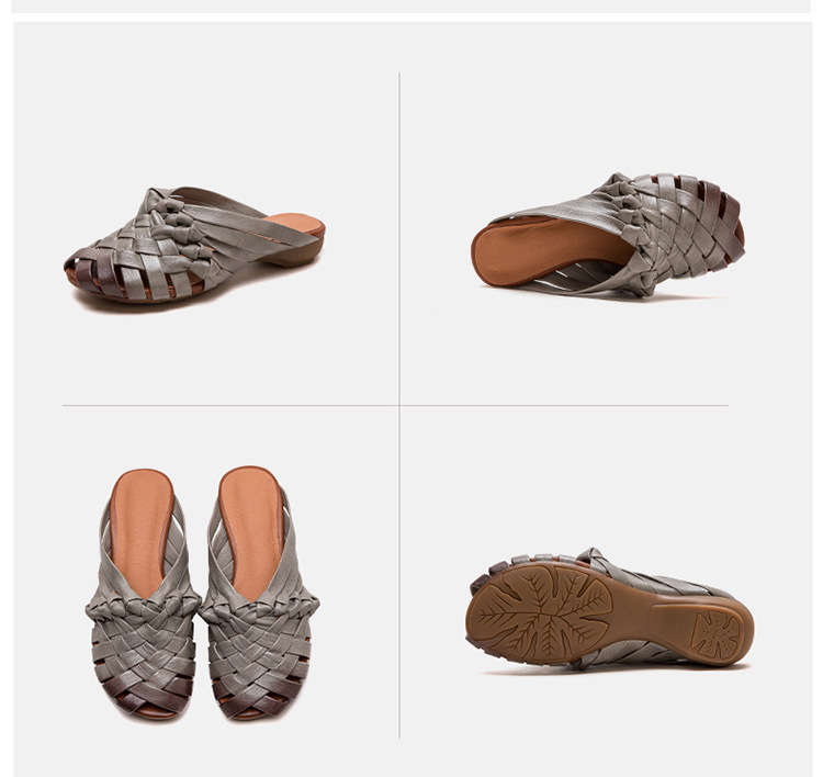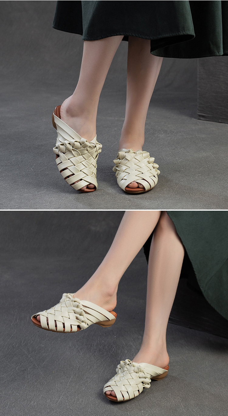 Đôi dép tạo nên vẻ đẹp mộc mạc, dịu dàng với phong cách cổ điển. Được làm từ chất liệu da thật, phần thân dép là những đường đan thủ công tinh xảo. Kiểu dáng hở mũi cá tính, kết hợp cùng dây đan mảnh ôm lấy bàn chân một cách nhẹ nhàng. Bạn có thể dùng làm dép đi trong nhà hoặc phối cùng váy, quần để tạo điểm nhấn cho những dịp dạo phố. | Tên sản phẩm: Giày Dép Lê Nữ Chất Liệu Da Bò Miệng Cá Hàng Mùa Hè Phục Cổ Cổ Điển - Giày Dép Nữ | Mã sản phẩm: B2312 - Giá: 1.620.000đ | Mã nhà sản xuất: SHDU-G05Hình ảnh sản phẩm
