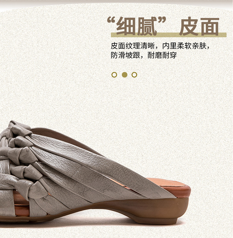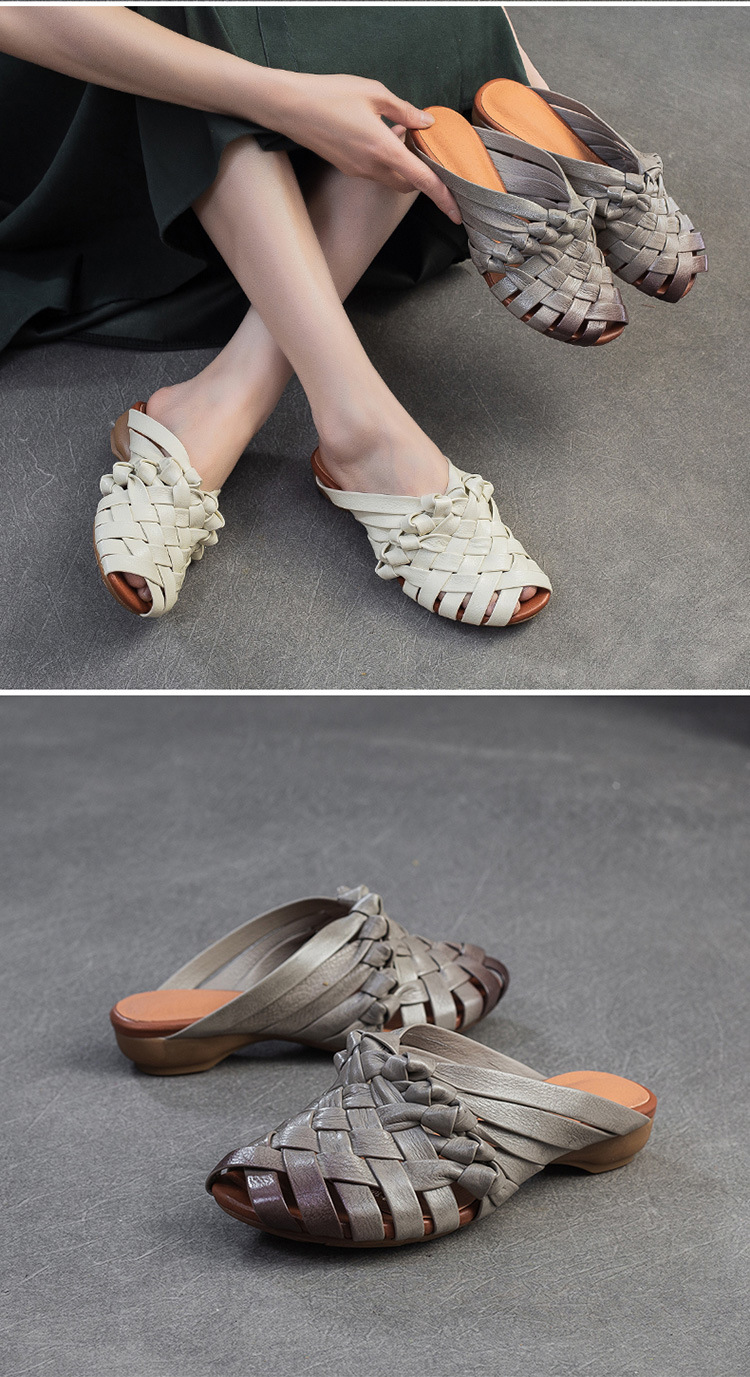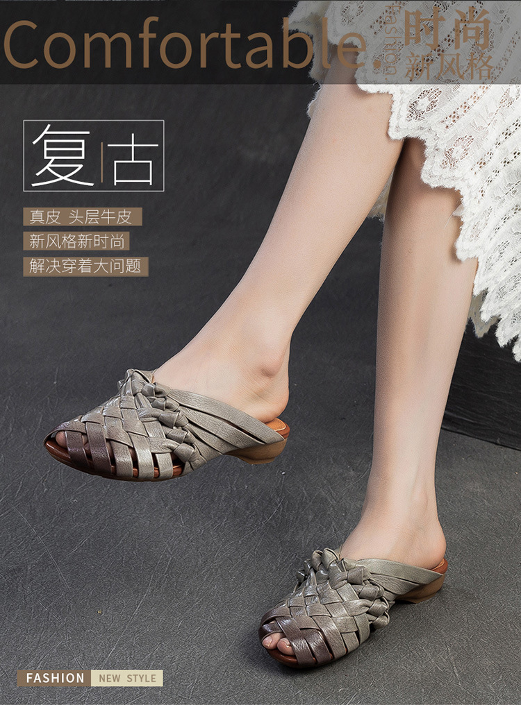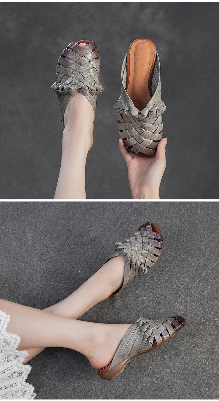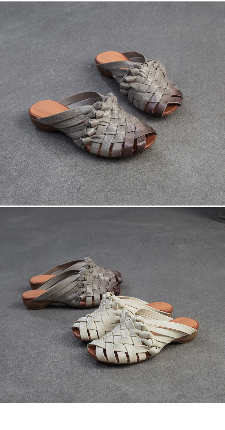 Đôi dép tạo nên vẻ đẹp mộc mạc, dịu dàng với phong cách cổ điển. Được làm từ chất liệu da thật, phần thân dép là những đường đan thủ công tinh xảo. Kiểu dáng hở mũi cá tính, kết hợp cùng dây đan mảnh ôm lấy bàn chân một cách nhẹ nhàng. Bạn có thể dùng làm dép đi trong nhà hoặc phối cùng váy, quần để tạo điểm nhấn cho những dịp dạo phố. | Tên sản phẩm: Giày Dép Lê Nữ Chất Liệu Da Bò Miệng Cá Hàng Mùa Hè Phục Cổ Cổ Điển - Giày Dép Nữ | Mã sản phẩm: B2312 - Giá: 1.620.000đ | Mã nhà sản xuất: SHDU-G05Hình ảnh sản phẩm