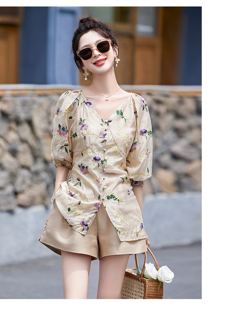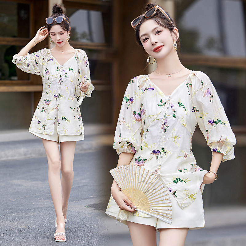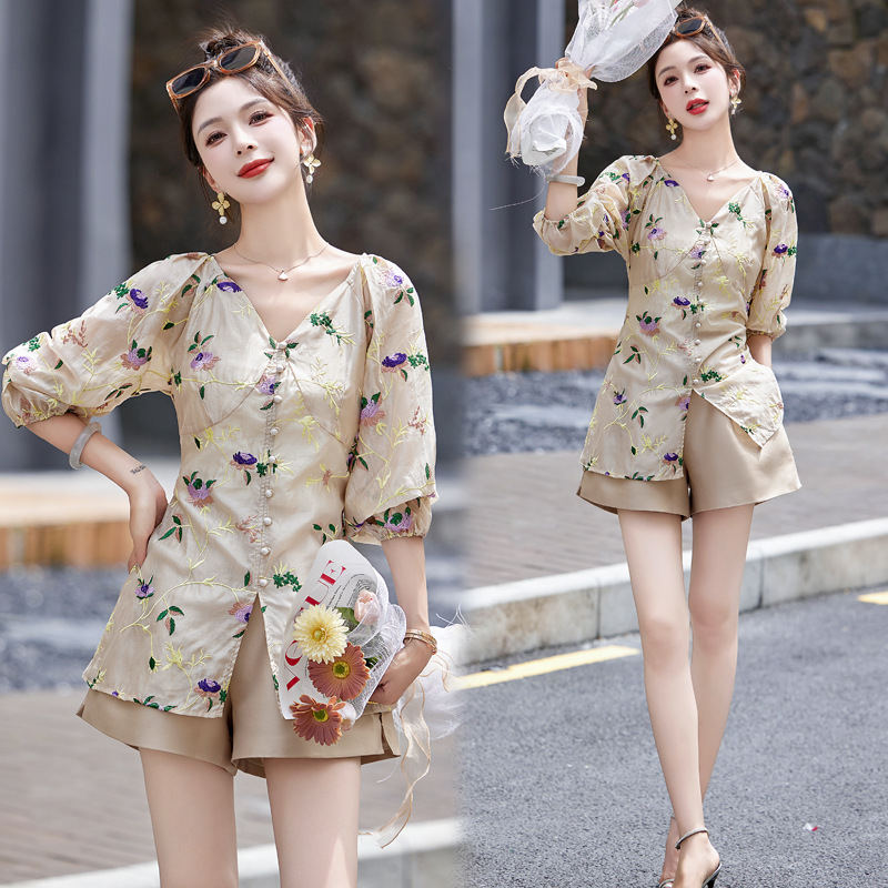 Bộ trang phục ngắn hai mảnh này mang nét đẹp hiện đại pha lẫn cổ điển. Thiết kế gồm áo và quần shorts, phù hợp cho những ngày hè mát mẻ. Trên trang phục có điểm xuyết những đường thêu tinh tế, tạo nên vẻ thanh lịch và nhẹ nhàng. Kiểu dáng giúp người mặc trông trẻ trung và năng động hơn. Bạn có thể phối bộ này đi dạo phố, gặp gỡ bạn bè hoặc trong những dịp thoải mái. Chất vải mềm mại, mang lại cảm giác dễ chịu khi mặc cả ngày dài. | Tên sản phẩm: Đồ Bộ Nữ Cả Bộ 2 Món Thêu Họa Tiết Hoa Trông Trẻ Hơn Tuổi Hàng Mùa Hè Phục Cổ Cổ Điển - Thời Trang Nữ | Mã sản phẩm: B2314 - Giá: 2.160.000đ | Mã nhà sản xuất: WODIG-G05Hình ảnh sản phẩm