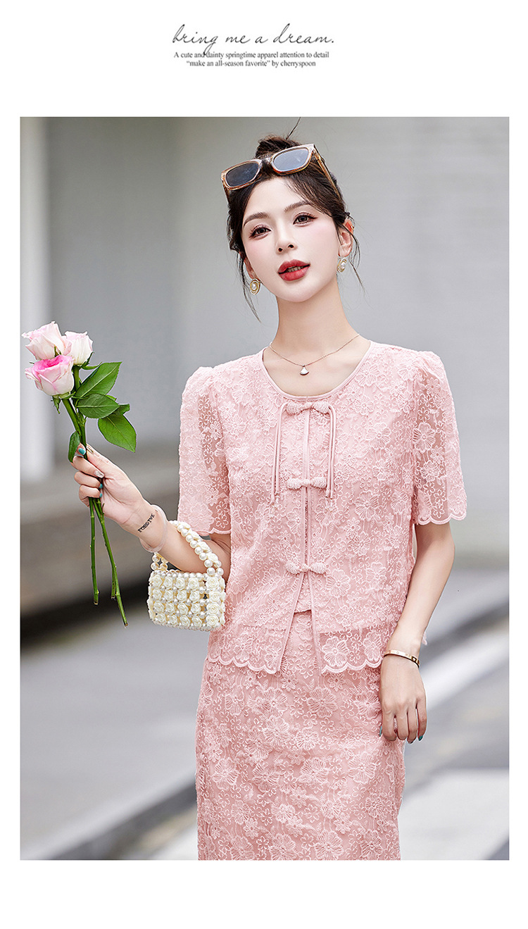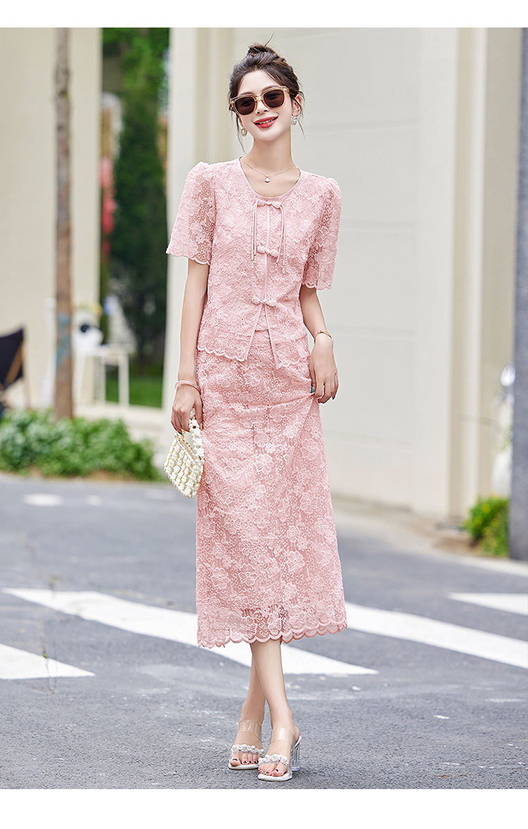 Bộ trang phục này kết hợp tinh tế nét đẹp hiện đại với phong cách dân tộc. Áo ngắn tay và chân váy được điểm xuyến bằng chi tiết ren màu hồng dịu dàng, tạo nên vẻ ngoại hình thanh thoát. Chất vải mềm mại mang lại sự dễ chịu cho những ngày hè. Cách phối đồ đơn giản: mặc nguyên bộ để tạo phong cách chỉnh chu, hoặc tách riêng từng món để phối với các trang phục khác. Kiểu dáng phù hợp cho nhiều dịp sinh hoạt thường ngày. | Tên sản phẩm: Đồ Bộ Nữ Chất Liệu Ren Ngắn Tay Hàng Mùa Hè - Thời Trang Nữ | Mã sản phẩm: B2316 - Giá: 2.070.000đ | Mã nhà sản xuất: WODIG-G05Hình ảnh sản phẩm