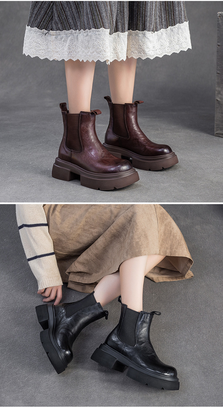 Bốt cổ thấp kiểu cách này có mặt ngoài làm từ lớp da thật đầu tiên, mang đến cảm giác mềm mại và bền lâu. Điểm nhấn đặc biệt là phần thân bốt với những đường vân tự nhiên như được tạo hình bằng tay, cùng kiểu dáng không đối xứng độc đáo. Mẫu mã phù hợp cho việc đi lại hằng ngày, dễ dàng kết hợp với nhiều trang phục. Chỉ cần xỏ vào, kéo khóa phía sau là đã sẵn sàng sử dụng. | Tên sản phẩm: Giày Boot Martin Nữ Chất Liệu Da Bò Hàng Mùa Xuân Thu Đông Phục Cổ Cổ Điển - Giày Dép Nữ | Mã sản phẩm: B2318 - Giá: 1.710.000đ | Mã nhà sản xuất: SHDU-G05Hình ảnh sản phẩm