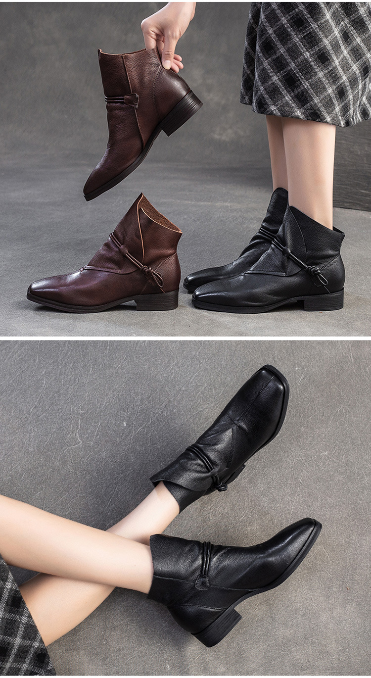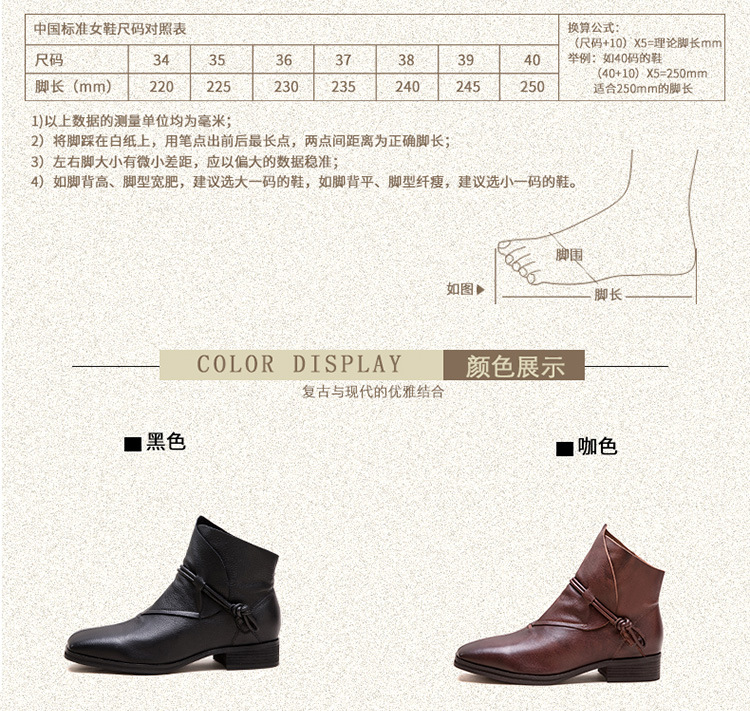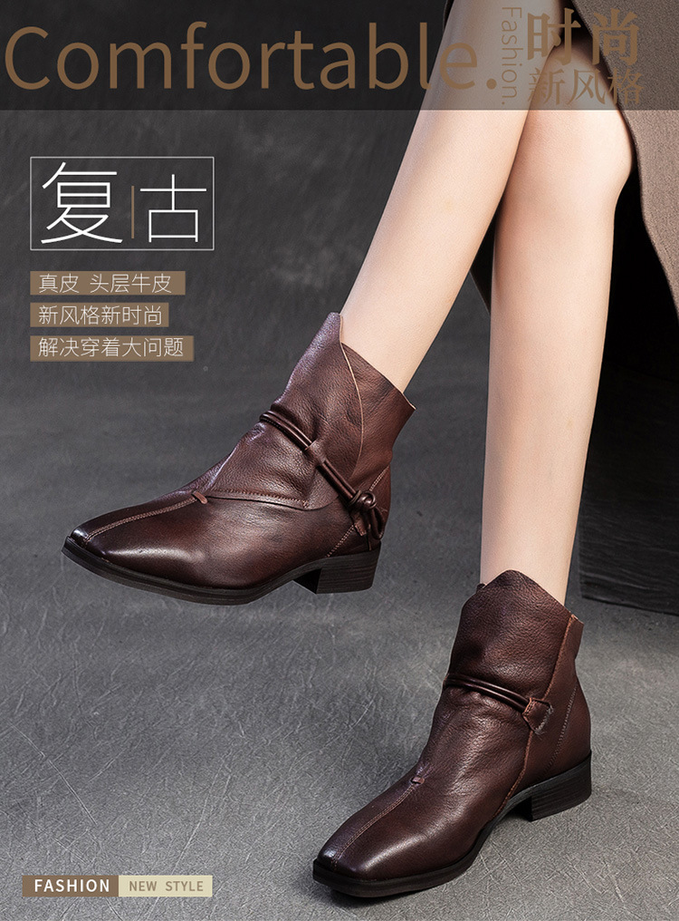 Giày bốt cổ thấp kiểu dáng Anh Quốc với thiết kế mũi tròn và gót thấp chắc chắn. Sản phẩm được làm từ chất liệu da bò mềm mại, tạo cảm giác thoải mái khi mang cả ngày. Phong cách cổ điển dễ dàng kết hợp với nhiều loại trang phục khác nhau như quần jeans, váy hay quần tây. Bạn chỉ cần lau sạch bề mặt bằng khăn mềm để giữ giày luôn sạch đẹp. Đây là mẫu giày phù hợp cho những ngày thu đông. | Tên sản phẩm: Giày Cao Gót Nữ Chất Liệu Da Bò Gót Vuông Hàng Mùa Xuân Thu Đông Phục Cổ Cổ Điển - Giày Dép Nữ | Mã sản phẩm: B2323 - Giá: 1.900.000đ | Mã nhà sản xuất: SHDU-G05Hình ảnh sản phẩm
