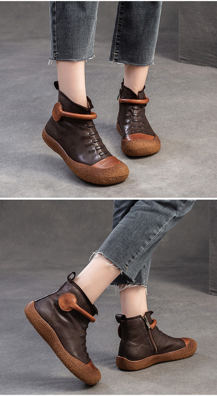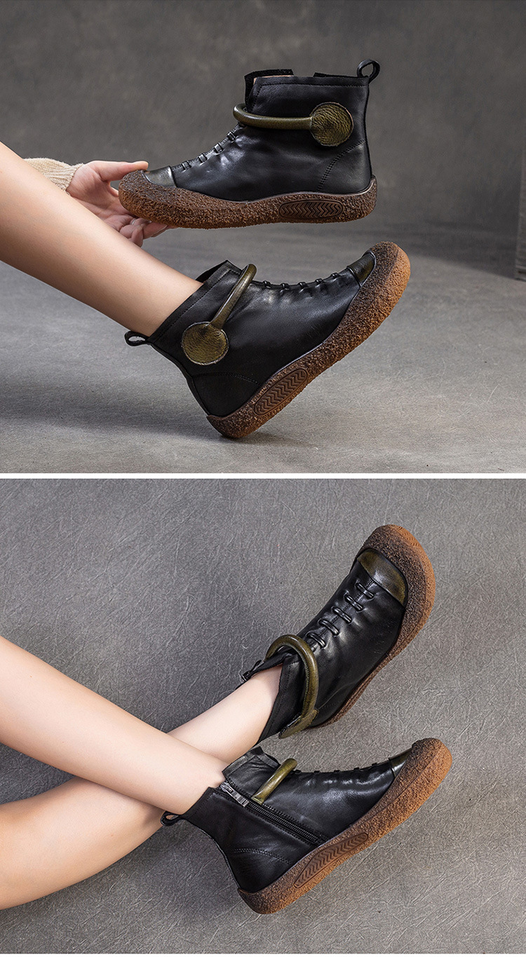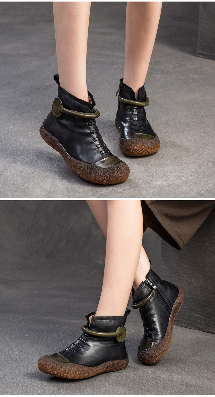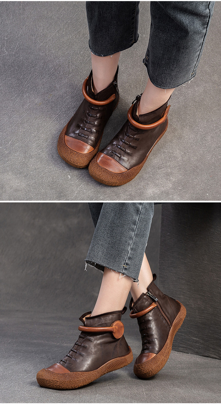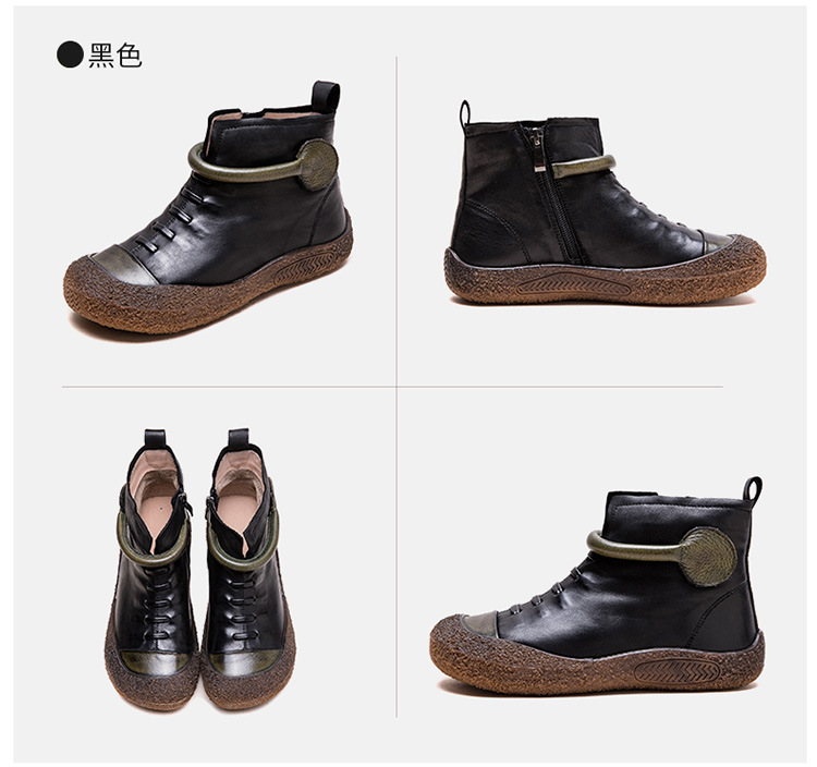 Đôi bốt cổ thấp này có kiểu dáng cổ điển nhẹ nhàng, phù hợp cho mùa lạnh. Sản phẩm được làm từ chất da mềm mại, tạo cảm giác dễ chịu khi mang. Kiểu dáng bốt ôm gọn bàn chân, phần mũi hơi tròn, đế bằng giúp bạn đi lại thoải mái cả ngày. Bạn có thể phối cùng nhiều loại trang phục như quần jeans hay váy để tạo nên vẻ ngoài cá tính. | Tên sản phẩm: Giày Boot Martin Nữ Chất Liệu Da Bò Hàng Mùa Xuân Thu Đông Phục Cổ Cổ Điển - Giày Dép Nữ | Mã sản phẩm: B2327 - Giá: 1.710.000đ | Mã nhà sản xuất: SHDU-G05Hình ảnh sản phẩm