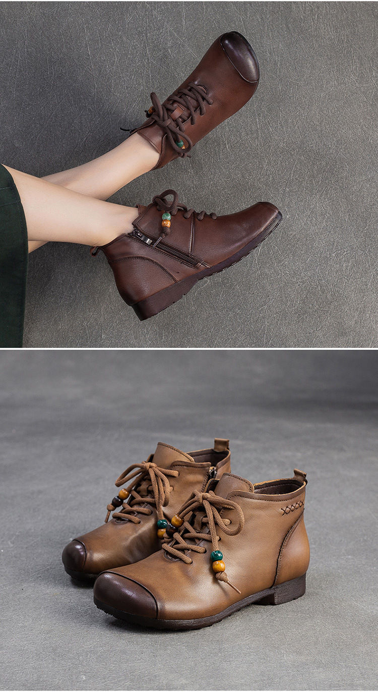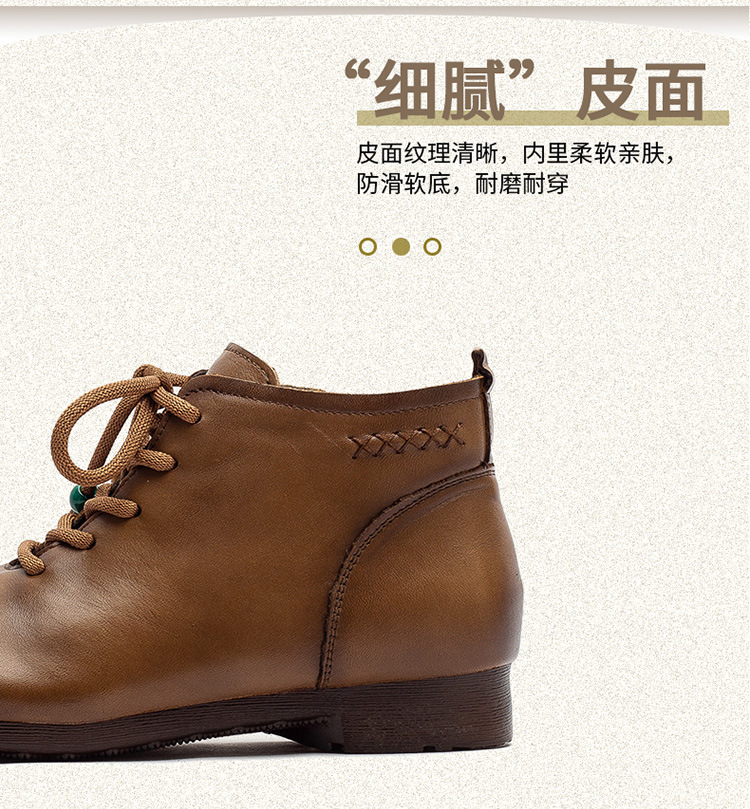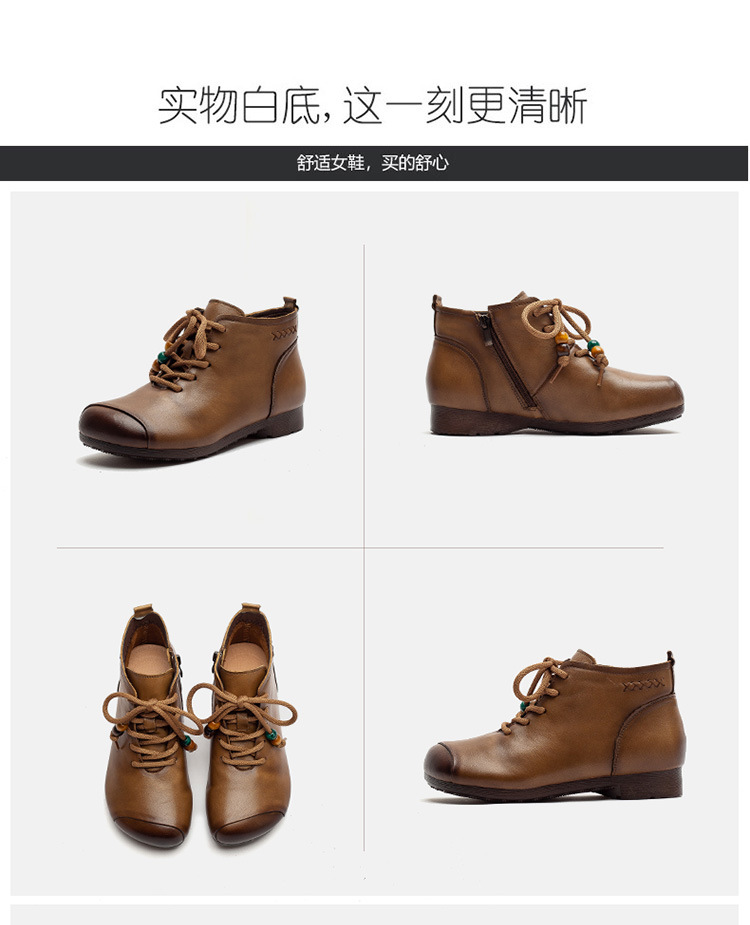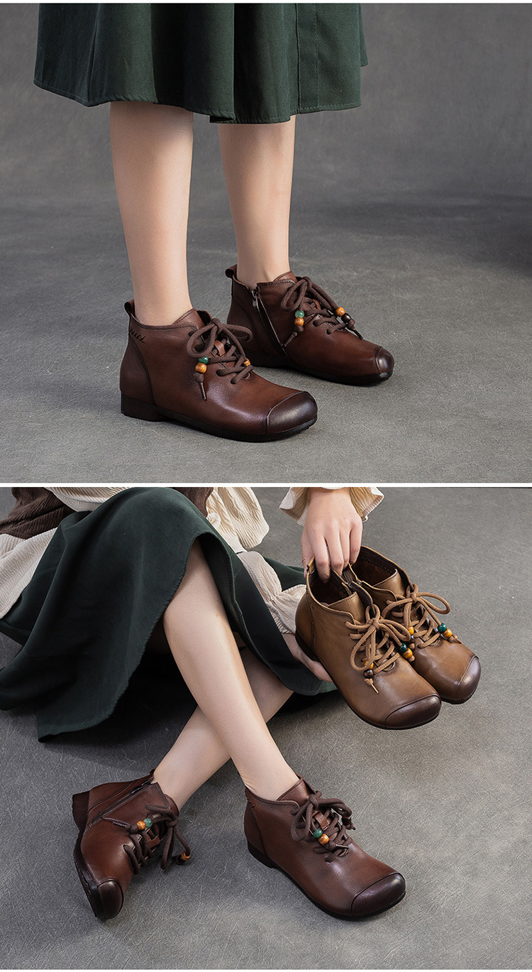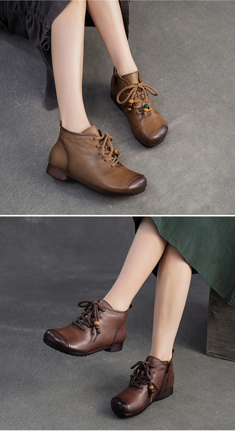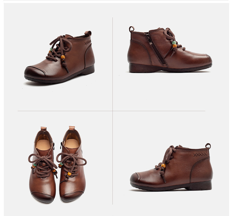 Giày bốt cổ thấp dành cho phụ nữ, kiểu dáng cổ điển nhẹ nhàng với mũi tròn ôm chân. Sản phẩm được làm từ chất liệu da thật, mang lại cảm giác mềm mại và dễ chịu khi mang trong thời gian dài. Thiết kế này dễ dàng kết hợp với nhiều loại trang phục khác nhau như quần jeans, váy hay quần tây. Bạn chỉ cần xỏ chân vào và kéo khóa nhẹ nhàng là đã có ngay một diện mật gọn gàng, ấm áp cho những ngày tiết trời se lạnh. | Tên sản phẩm: Giày Boot Cổ Thấp Nữ Chất Liệu Da Bò Mũi Tròn Hàng Mùa Xuân Thu Đông Trung Niên Phục Cổ Cổ Điển - Giày Dép Nữ | Mã sản phẩm: B2330 - Giá: 1.380.000đ | Mã nhà sản xuất: SHDU-G04Hình ảnh sản phẩm