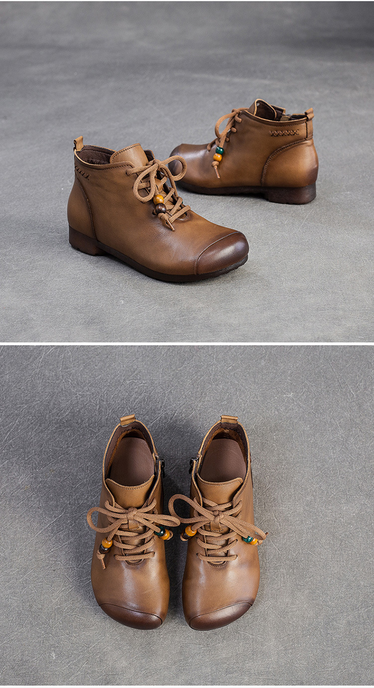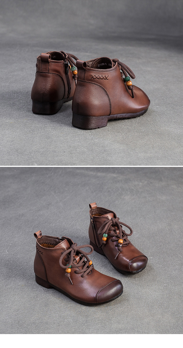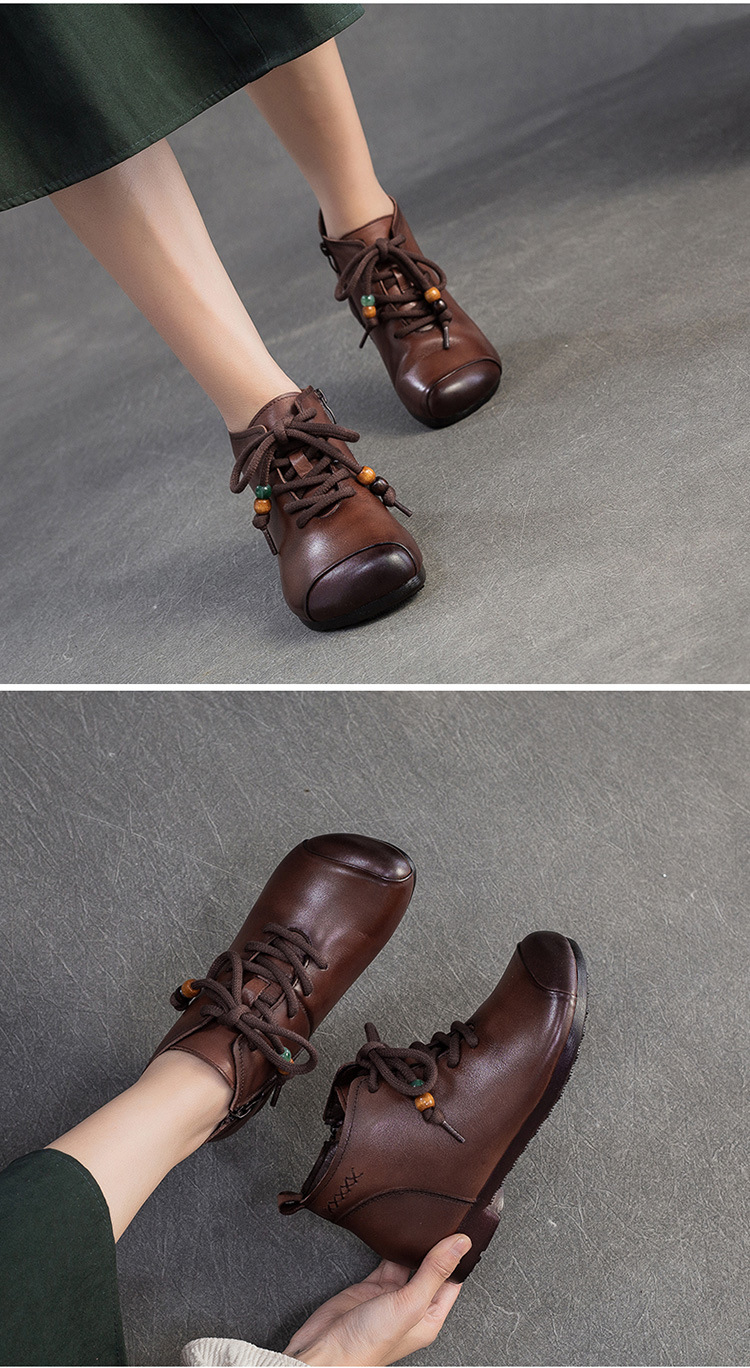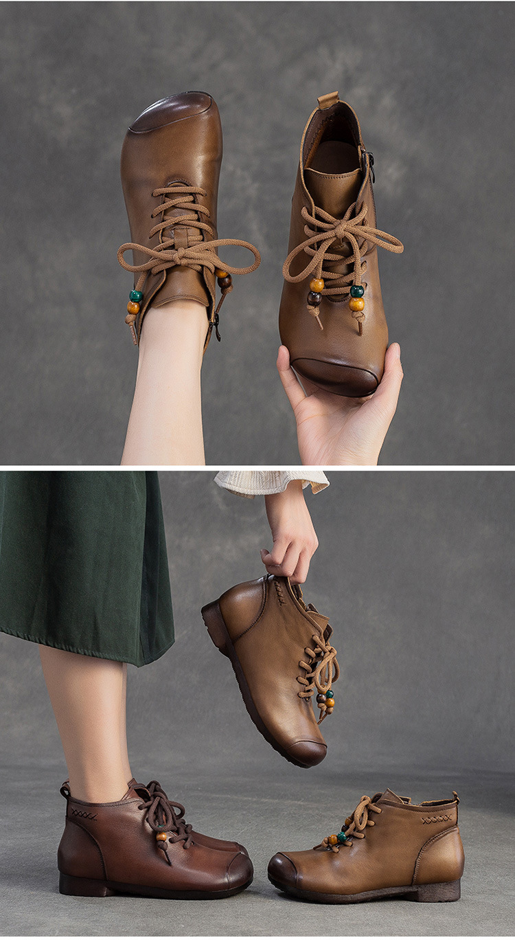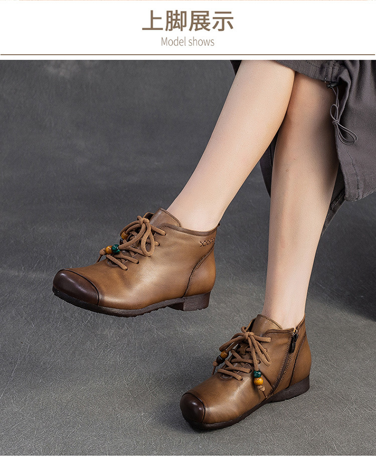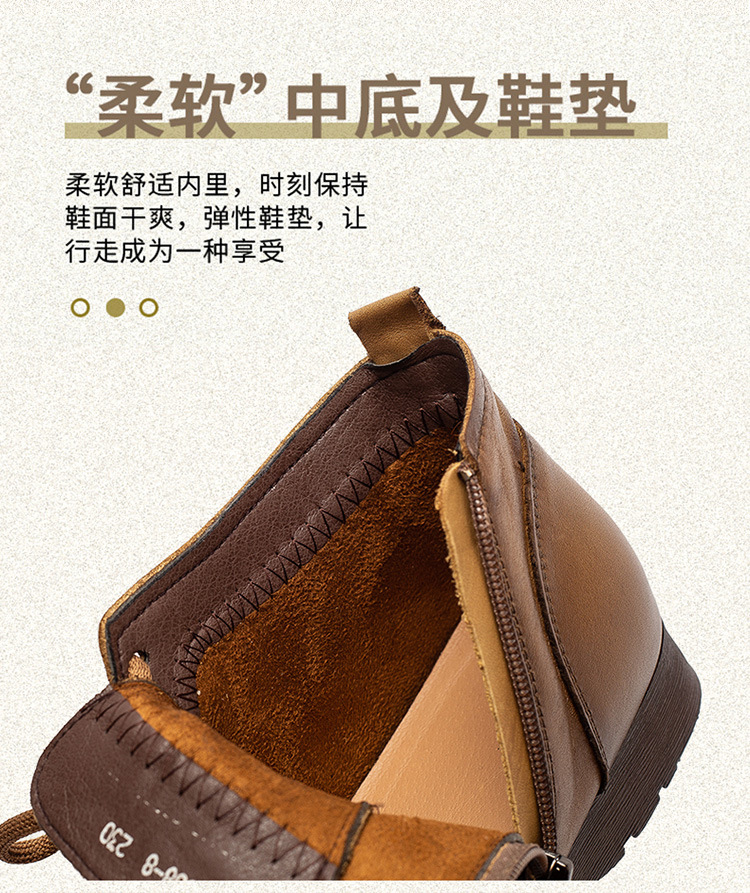 Giày bốt cổ thấp dành cho phụ nữ, kiểu dáng cổ điển nhẹ nhàng với mũi tròn ôm chân. Sản phẩm được làm từ chất liệu da thật, mang lại cảm giác mềm mại và dễ chịu khi mang trong thời gian dài. Thiết kế này dễ dàng kết hợp với nhiều loại trang phục khác nhau như quần jeans, váy hay quần tây. Bạn chỉ cần xỏ chân vào và kéo khóa nhẹ nhàng là đã có ngay một diện mật gọn gàng, ấm áp cho những ngày tiết trời se lạnh. | Tên sản phẩm: Giày Boot Cổ Thấp Nữ Chất Liệu Da Bò Mũi Tròn Hàng Mùa Xuân Thu Đông Trung Niên Phục Cổ Cổ Điển - Giày Dép Nữ | Mã sản phẩm: B2330 - Giá: 1.380.000đ | Mã nhà sản xuất: SHDU-G04Hình ảnh sản phẩm