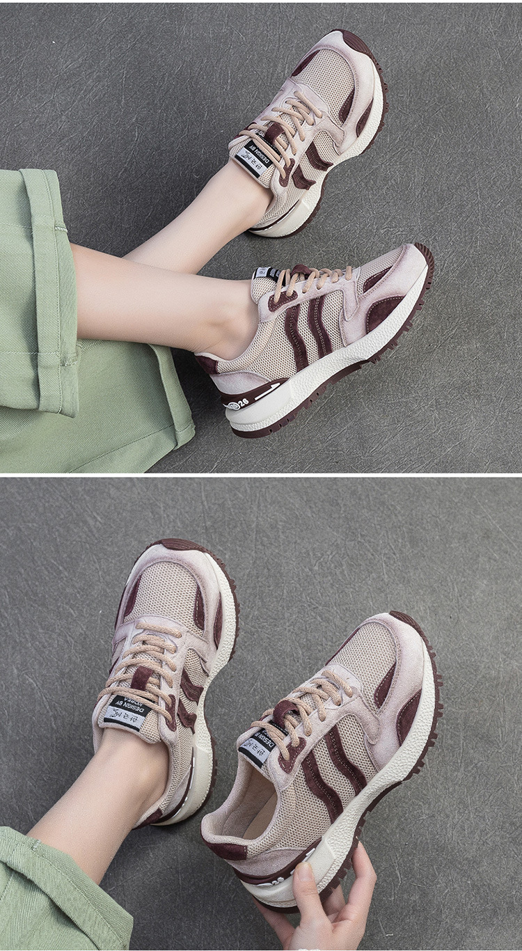 Giày thể thao nữ thiết kế cổ điển pha trộn, sở hữu phong cách thời trang phương Tây. Sản phẩm kết hợp nhiều tông màu đặc sắc trên chất liệu vải lưới thoáng khí, đem lại cảm giác dễ chịu khi mang. Đế giày được làm dày vừa phải, tạo dáng đầy đặn. Kiểu dáng này dễ dàng phối hợp với nhiều loại trang phục như quần jeans hay váy ngắn. Sử dụng hàng ngày cho các hoạt động đi lại, dạo phố hay gặp gỡ bạn bè. | Tên sản phẩm: Giày Thể Thao Tăng Chiều Cao Nữ Thoáng Khí Đế Cao Hàng Mùa Hè Phong Cách Âu Mỹ - Giày Dép Nữ | Mã sản phẩm: B2334 - Giá: 1.380.000đ | Mã nhà sản xuất: SHDU-G04Hình ảnh sản phẩm