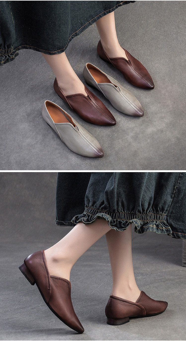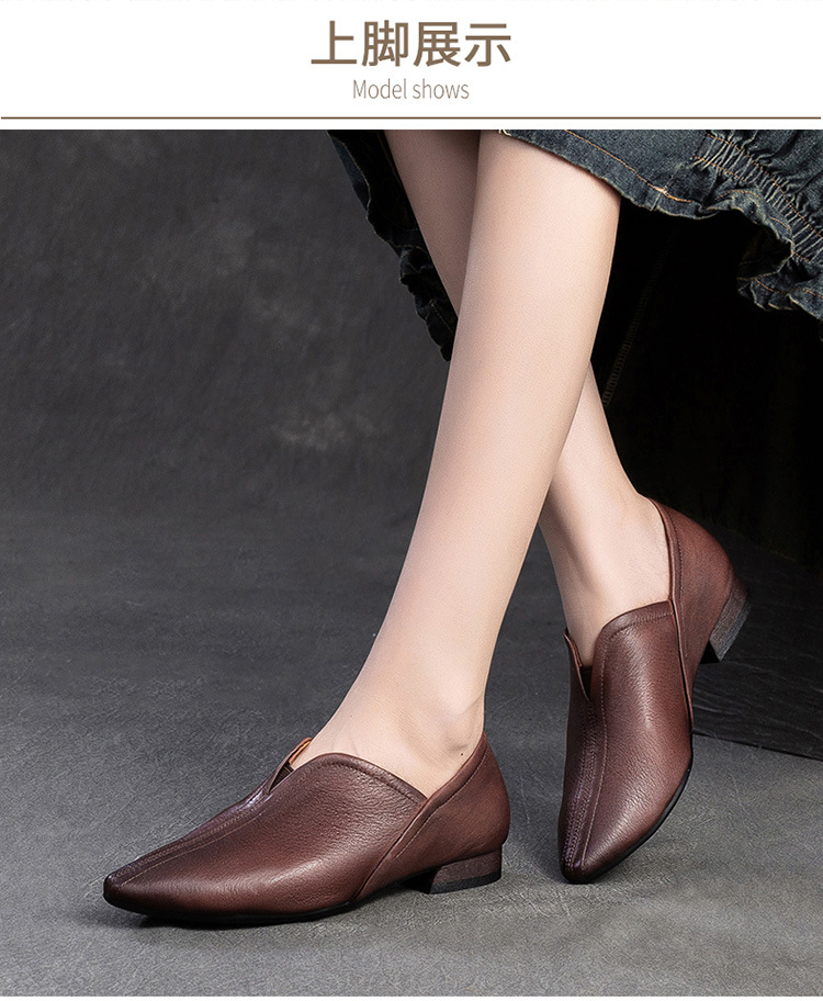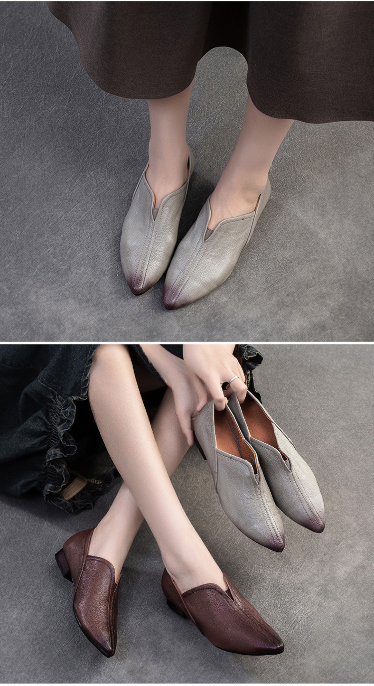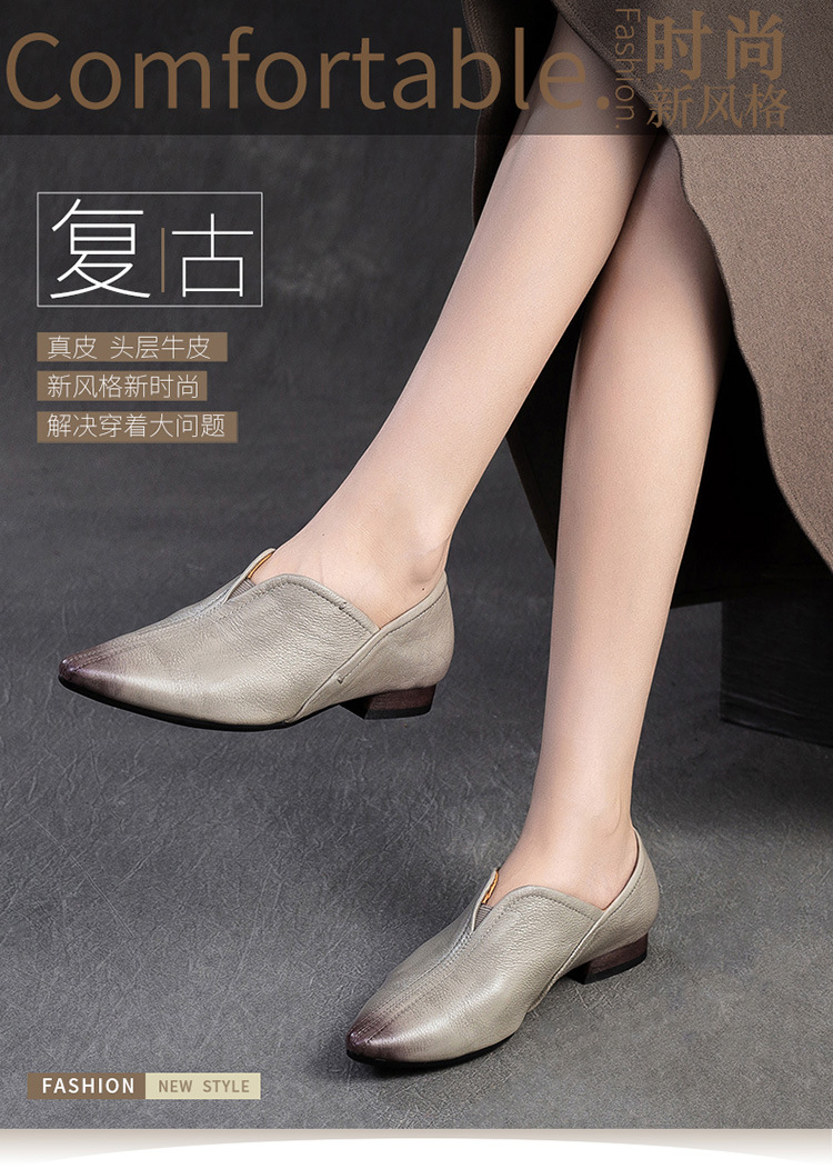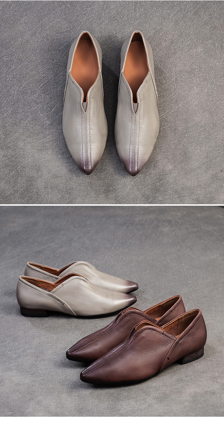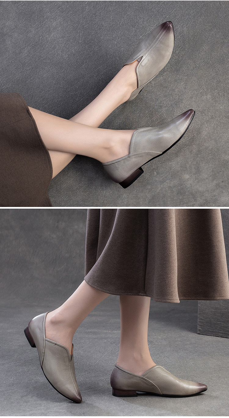 Giày da bò mũi nhọn phong cách mới cho nữ, được làm từ chất liệu da thật tự nhiên. Kiểu dáng mũi nhọn thanh lịch, phối hợp kỹ thuật tạo màu độc đáo trên bề mặt, mỗi đôi đều có vẻ đẹp riêng biệt. Đế bằng phẳng ôm sát chân, mang lại cảm giác dễ chịu khi di chuyển cả ngày. Dễ dàng phối cùng nhiều trang phục khác nhau, phù hợp cho cả lúc làm việc hay những dịp gặp gỡ thông thường. Sử dụng khăn mềm lau sạch bụi sau khi dùng và bảo quản nơi thoáng mát. | Tên sản phẩm: Giày Bệt Nữ Chất Liệu Da Bò Mũi Nhọn Hàng Mùa Xuân Thu Đông - Giày Dép Nữ | Mã sản phẩm: B2346 - Giá: 1.520.000đ | Mã nhà sản xuất: SHDU-G04Hình ảnh sản phẩm