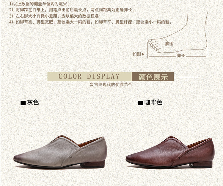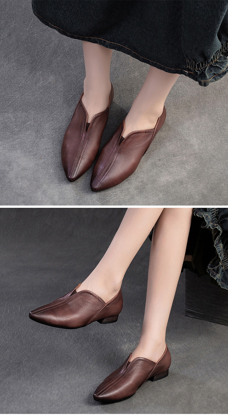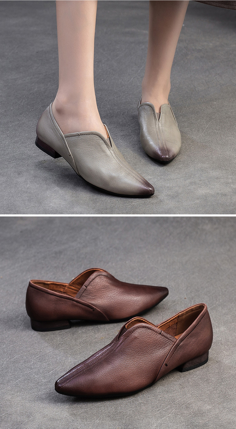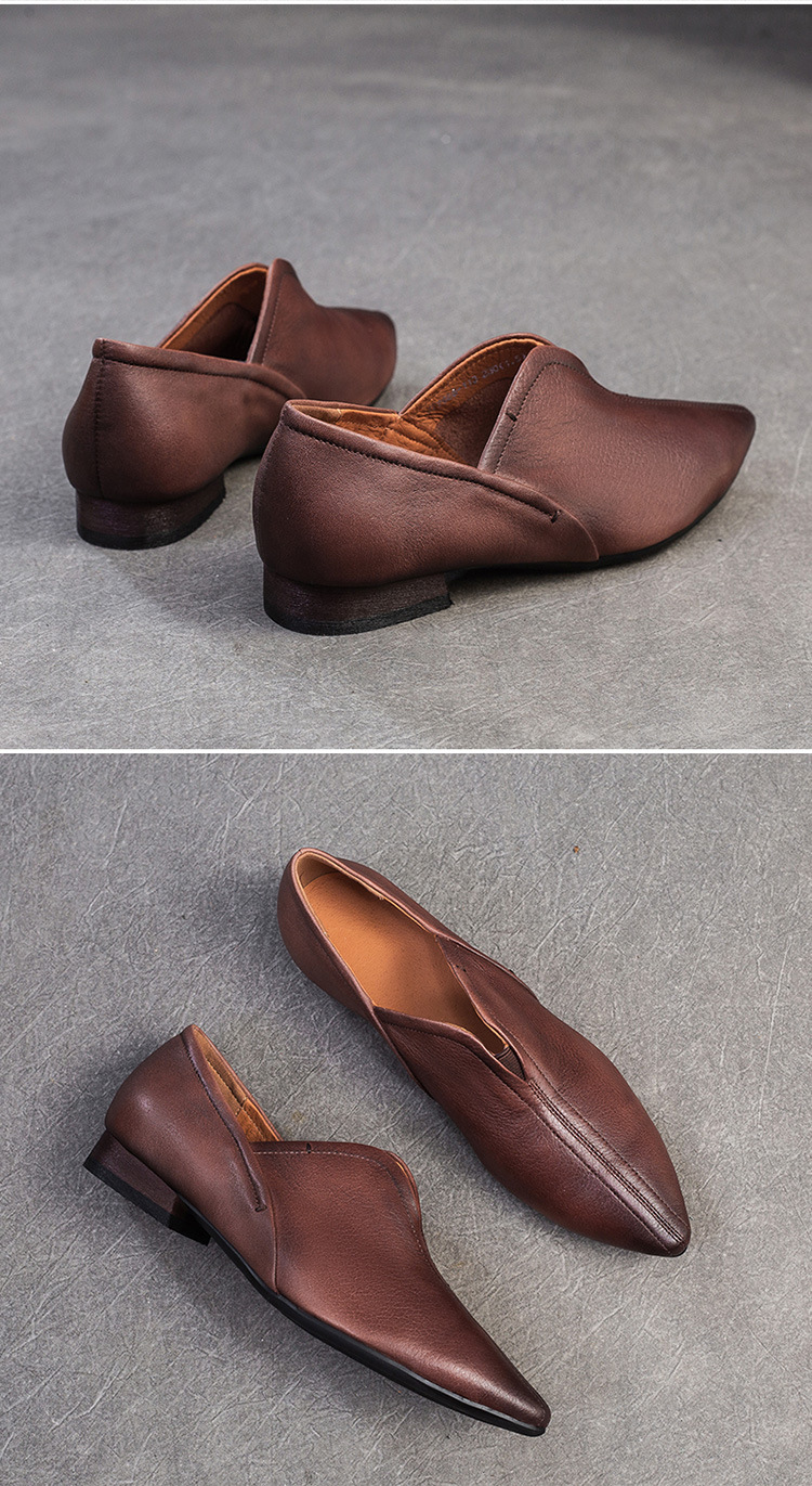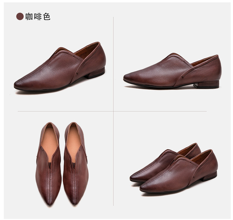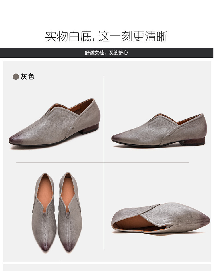 Giày da bò mũi nhọn phong cách mới cho nữ, được làm từ chất liệu da thật tự nhiên. Kiểu dáng mũi nhọn thanh lịch, phối hợp kỹ thuật tạo màu độc đáo trên bề mặt, mỗi đôi đều có vẻ đẹp riêng biệt. Đế bằng phẳng ôm sát chân, mang lại cảm giác dễ chịu khi di chuyển cả ngày. Dễ dàng phối cùng nhiều trang phục khác nhau, phù hợp cho cả lúc làm việc hay những dịp gặp gỡ thông thường. Sử dụng khăn mềm lau sạch bụi sau khi dùng và bảo quản nơi thoáng mát. | Tên sản phẩm: Giày Bệt Nữ Chất Liệu Da Bò Mũi Nhọn Hàng Mùa Xuân Thu Đông - Giày Dép Nữ | Mã sản phẩm: B2346 - Giá: 1.520.000đ | Mã nhà sản xuất: SHDU-G04Hình ảnh sản phẩm