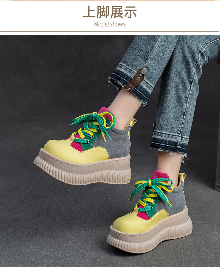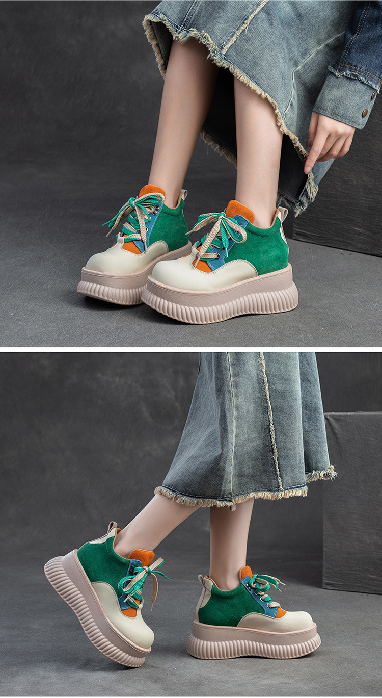 Giày nữ thiết kế thời thượng với dải màu cầu vồng tinh tế. Sản phẩm có phần đế dày nhẹ nhàng, giúp tăng chiều cao một cách tự nhiên. Kiểu dáng tròn, mũi ôm chân thoải mái, kết hợp dây buộc phía trước tạo điểm nhấn. Chất liệu co giãn nhẹ phù hợp cho các hoạt động thường ngày. Dễ dàng phối cùng quần jeans hay váy để tạo phong cách trẻ trung, năng động. | Tên sản phẩm: Giày Thể Thao Tăng Chiều Cao Nữ Mũi Tròn Tăng Chiều Cao Đế Cao Hàng Mùa Xuân Thu Đông - Giày Dép Nữ | Mã sản phẩm: B2350 - Giá: 1.620.000đ | Mã nhà sản xuất: SHDU-G05Hình ảnh sản phẩm