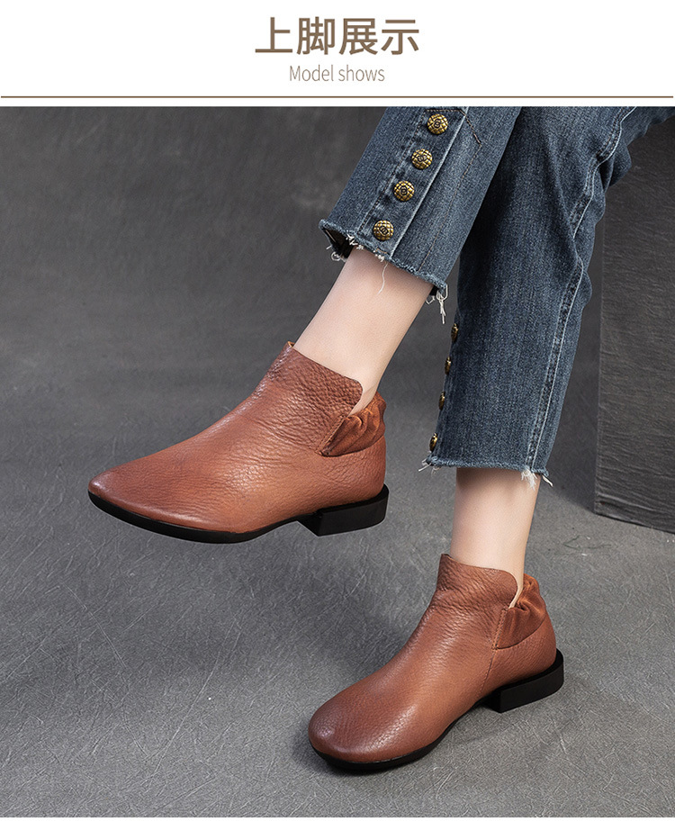 Giày bốt cổ thấp dành cho nữ, kiểu dáng đơn giản, phù hợp cho mùa thu đông. Sản phẩm được làm từ chất liệu da bò mềm mại, mang lại cảm giác dễ chịu khi mang. Thiết kế ôm chân vừa vặn, phong cách cổ điển nhẹ nhàng, dễ dàng kết hợp với nhiều trang phục khác nhau. Bạn có thể sử dụng làm giày đi làm hàng ngày hoặc dạo phố cùng bạn bè. | Tên sản phẩm: Giày Boot Cổ Thấp Nữ Chất Liệu Da Bò Hàng Mùa Xuân Thu Đông Phục Cổ Cổ Điển - Giày Dép Nữ | Mã sản phẩm: B2353 - Giá: 2.190.000đ | Mã nhà sản xuất: SHDU-G05Hình ảnh sản phẩm